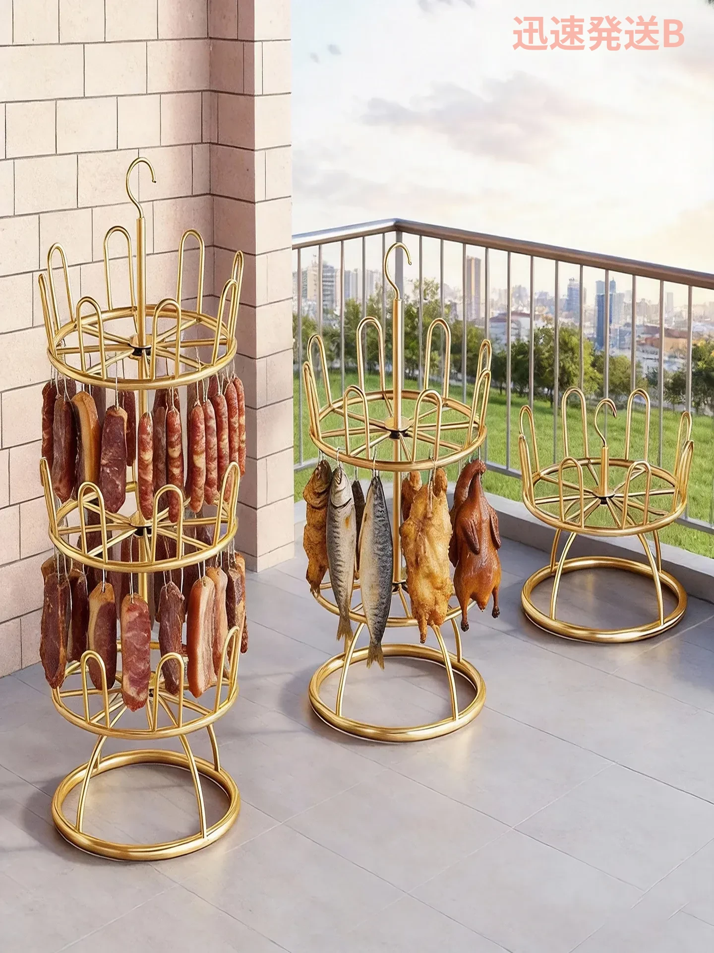 肉を干すための専用スタンド!家庭用バルコニーに最適な多機能立て型回転式干し肉・ソーセージスタンド。保存・乾燥が簡単で、腌制品の風味を引き立てる必須アイテム!