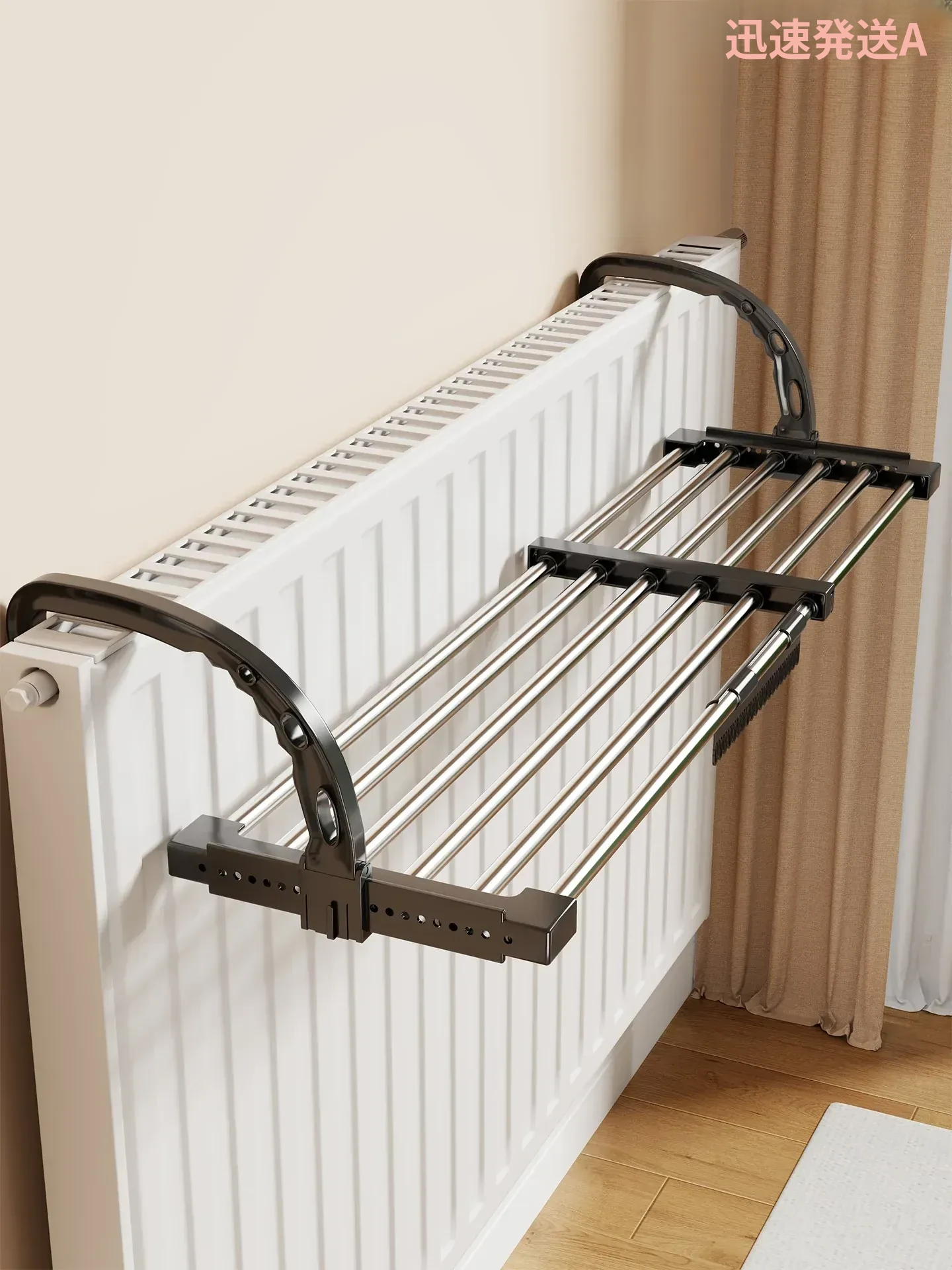 バルコニー用多機能衣類干しラック|調整可能な収納神器|暖房器具の上に取り付けられ、穴を開けずに簡単に使用可能!お家で手軽に衣類を乾かそう!