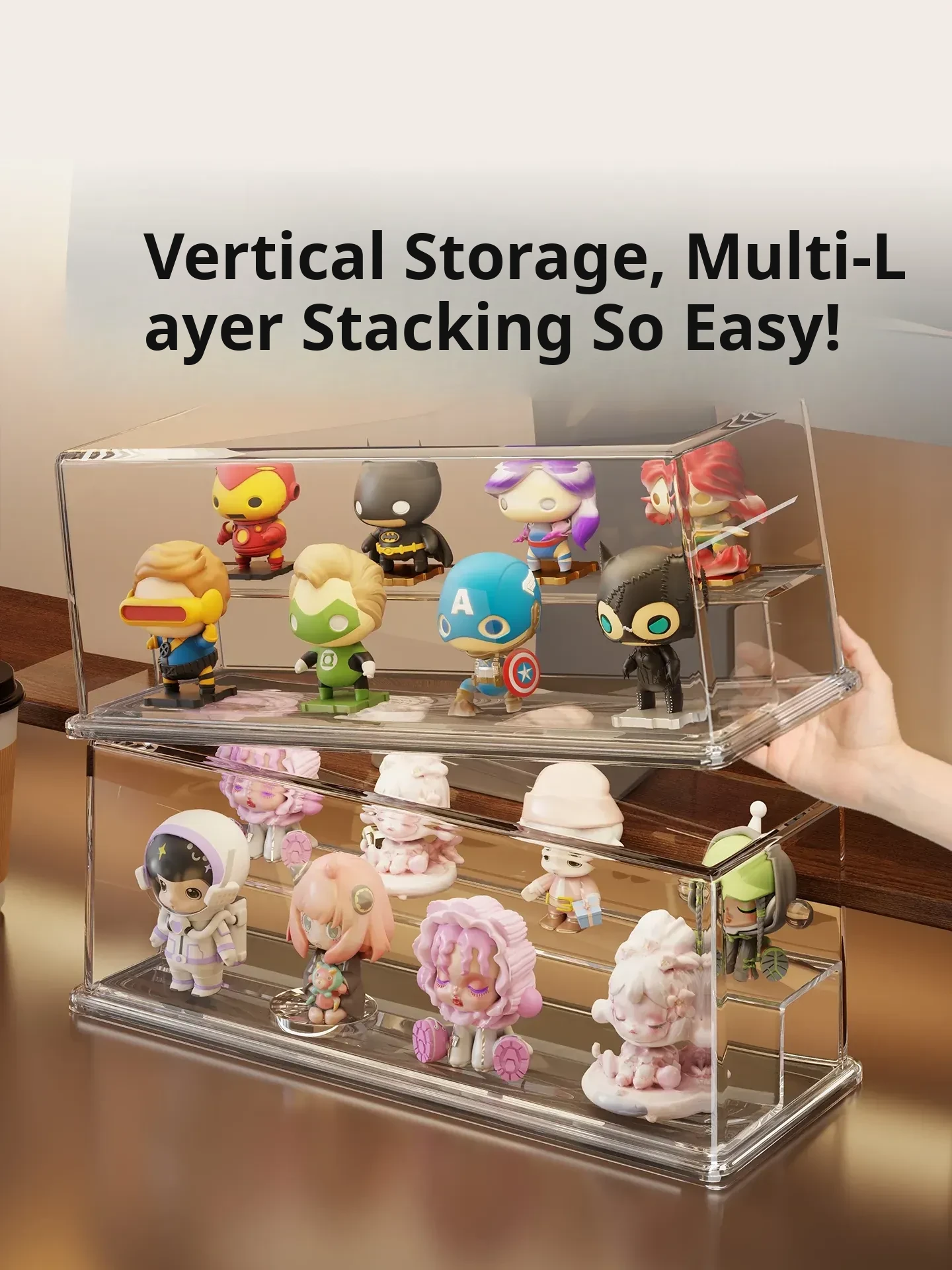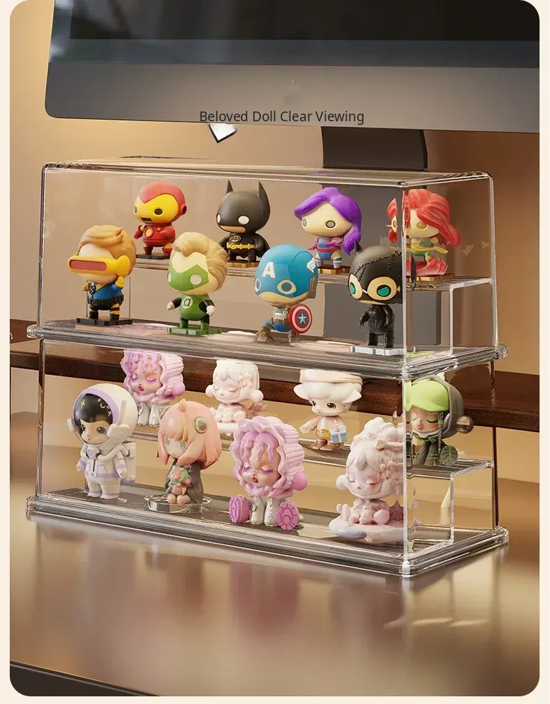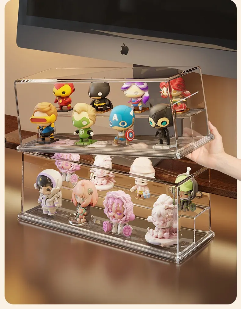 Acrylic Blind Box Display Stand - Cute Desktop Organizer for Action Figures, No Installation Required, Dustproof and Stylish Storage Solution for Collectibles