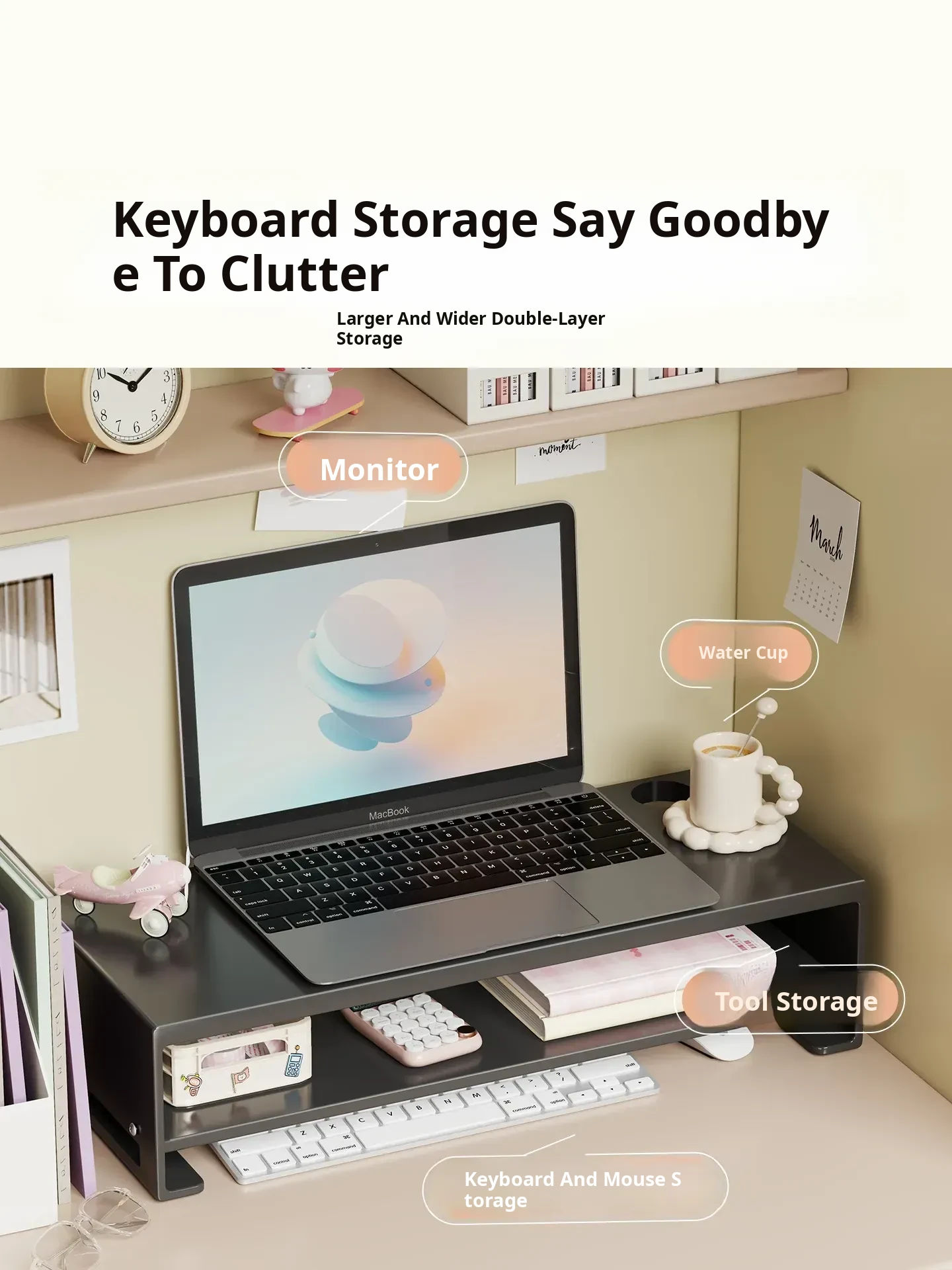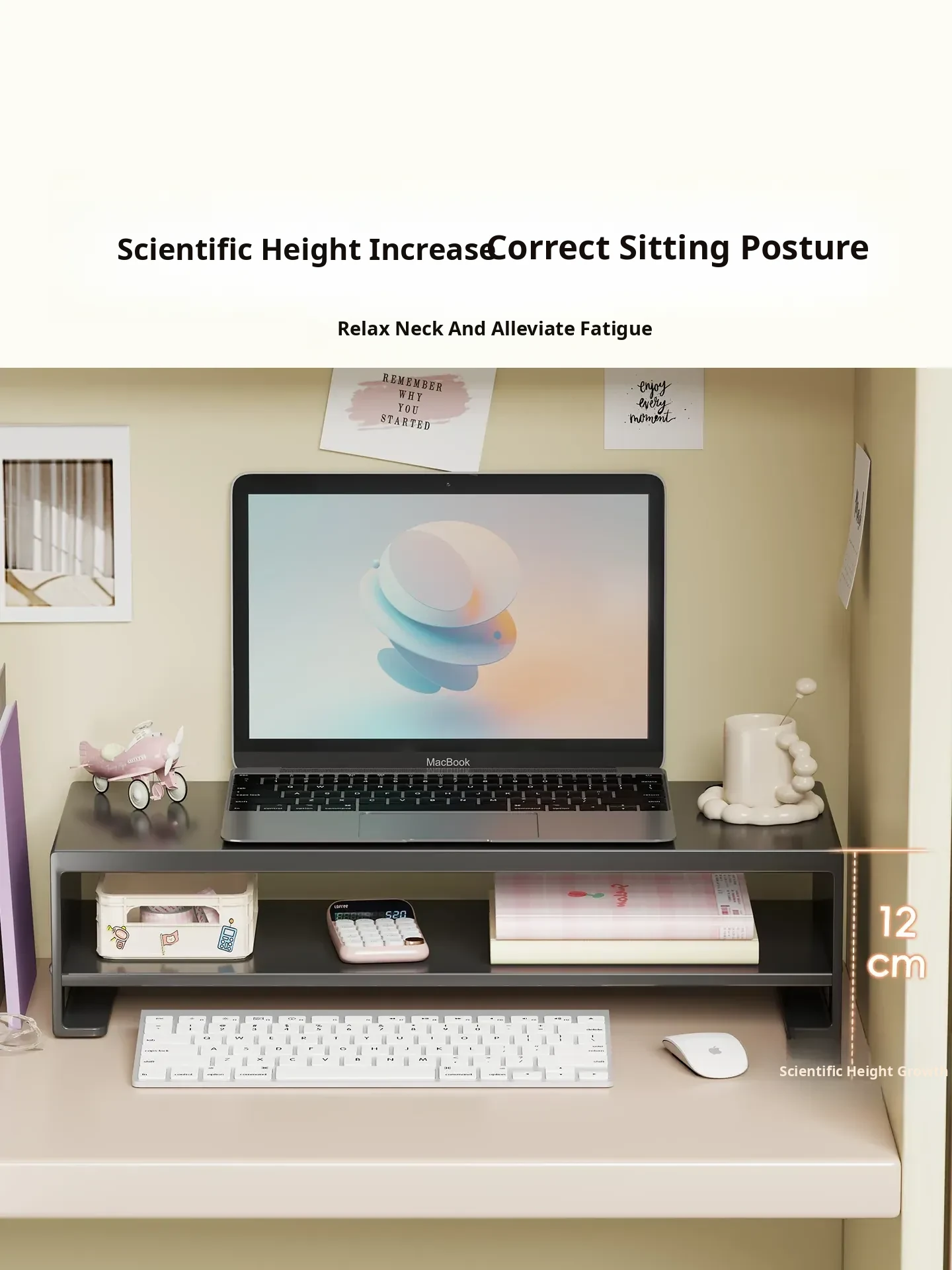 Adjustable Monitor Stand - Ergonomic Laptop Riser with Storage for Office Desk, Enhance Your Workspace and Organize Essentials, Perfect for Improved Comfort and Productivity