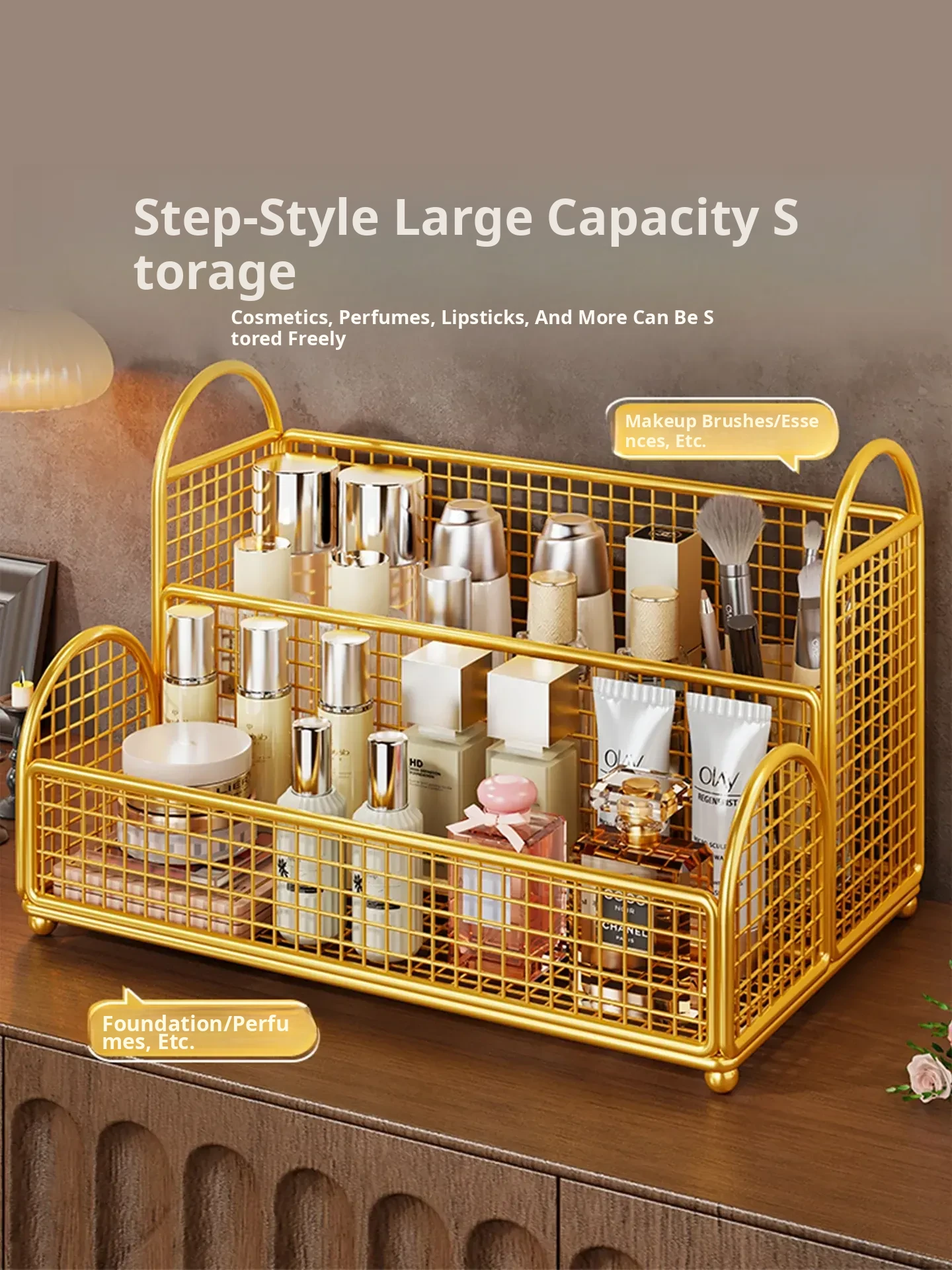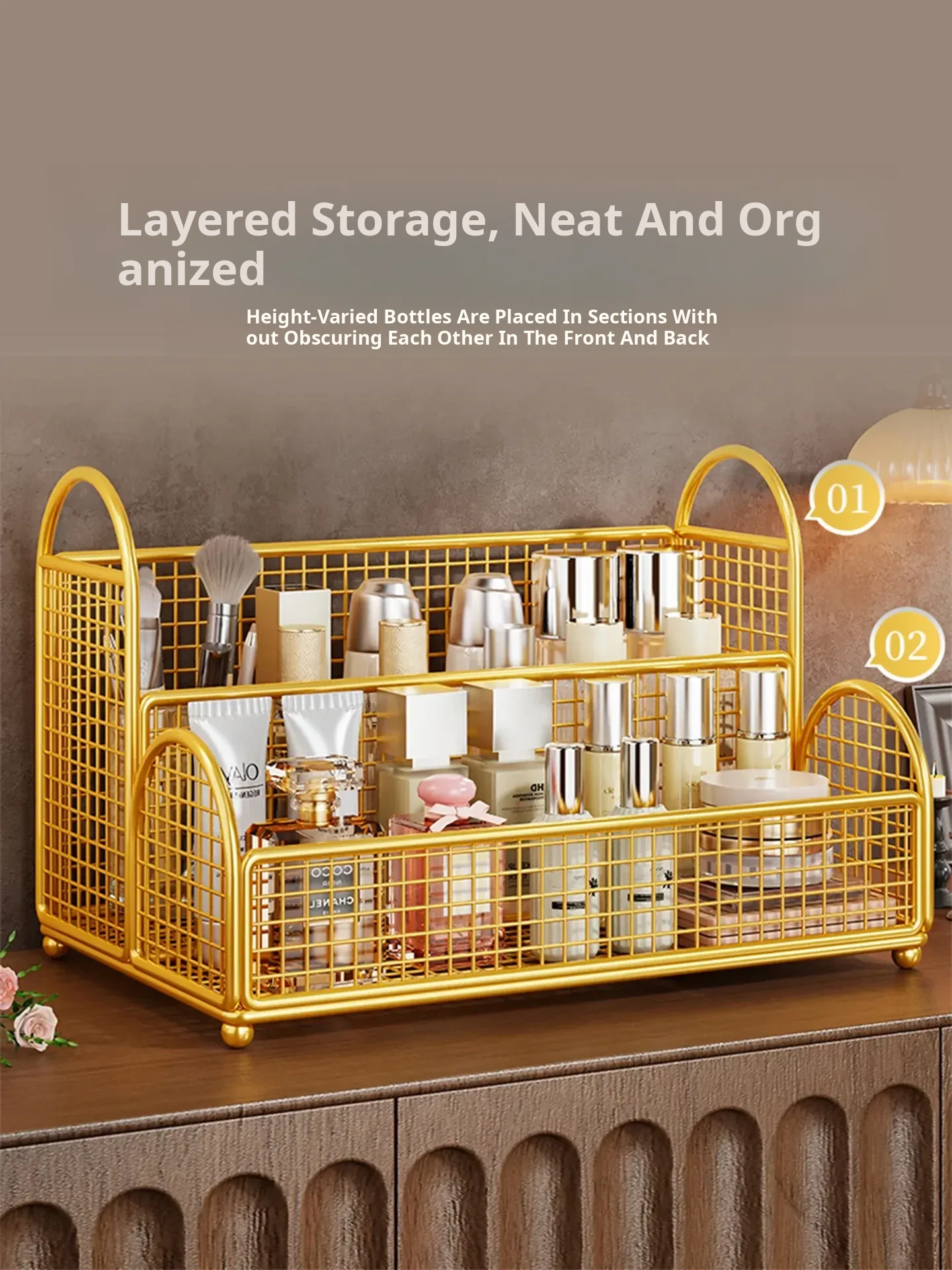 Cosmetic Organizer Box - Stylish Skincare and Makeup Storage Rack for Your Vanity, Perfect for Lipsticks, Eyeshadow Palettes, and Makeup Essentials – A Must-Have Tiered Organizer for a Clutter-Free Space!
