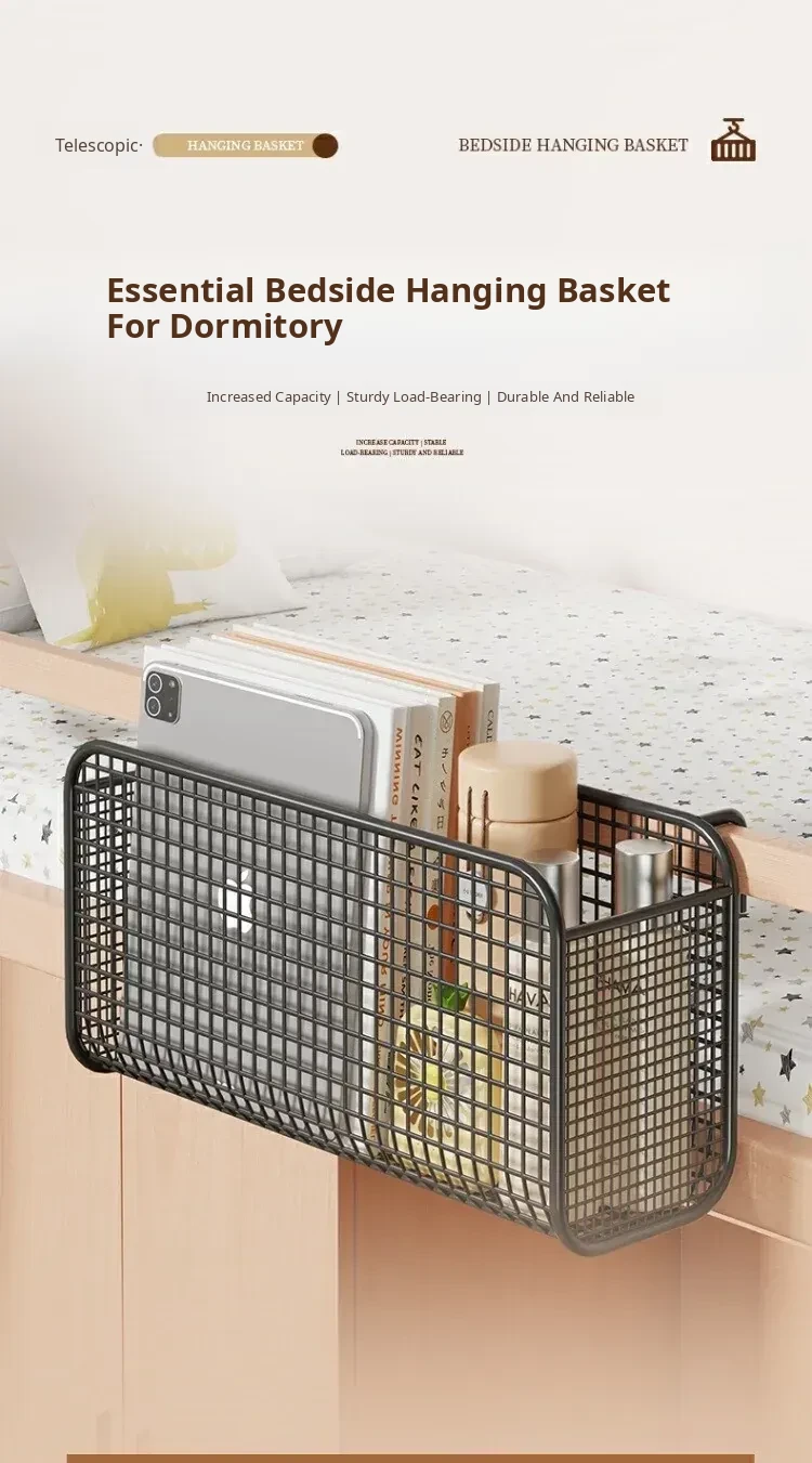 Dormitory Hanging Basket - Multi-Functional Wall-Mounted Storage Rack for Students, No Drilling Required, Ideal for Snacks and Books, Space-Saving Bedside Organizer