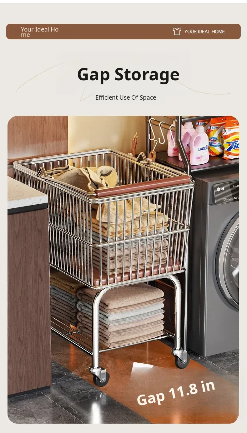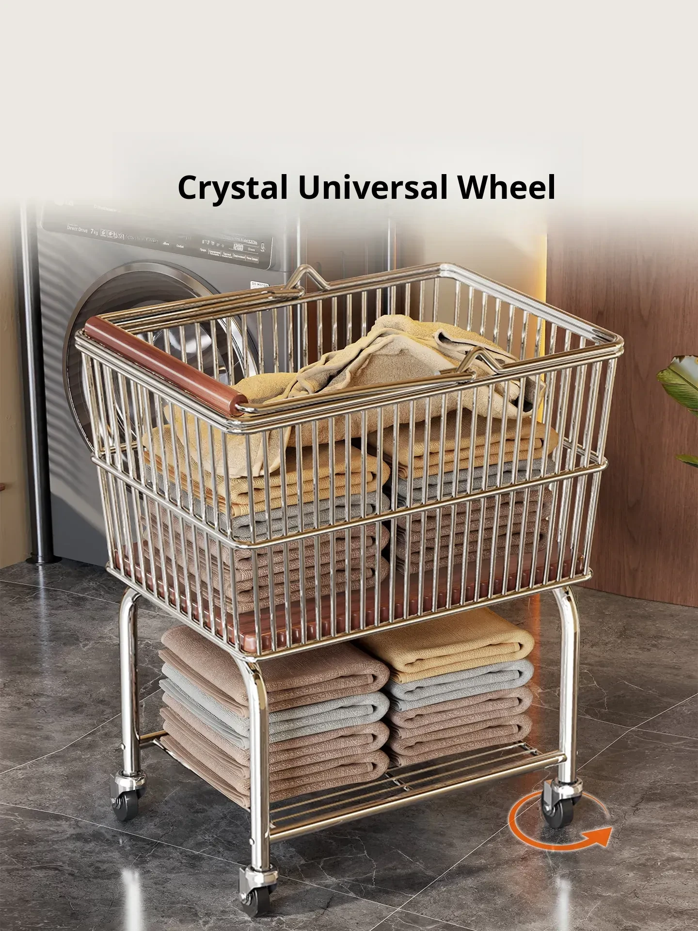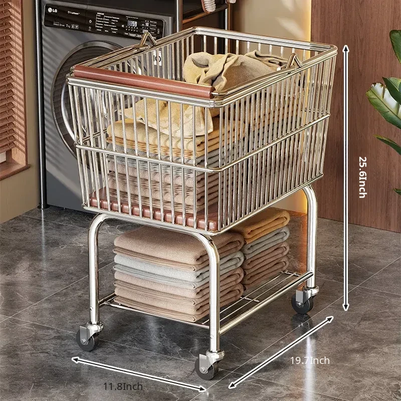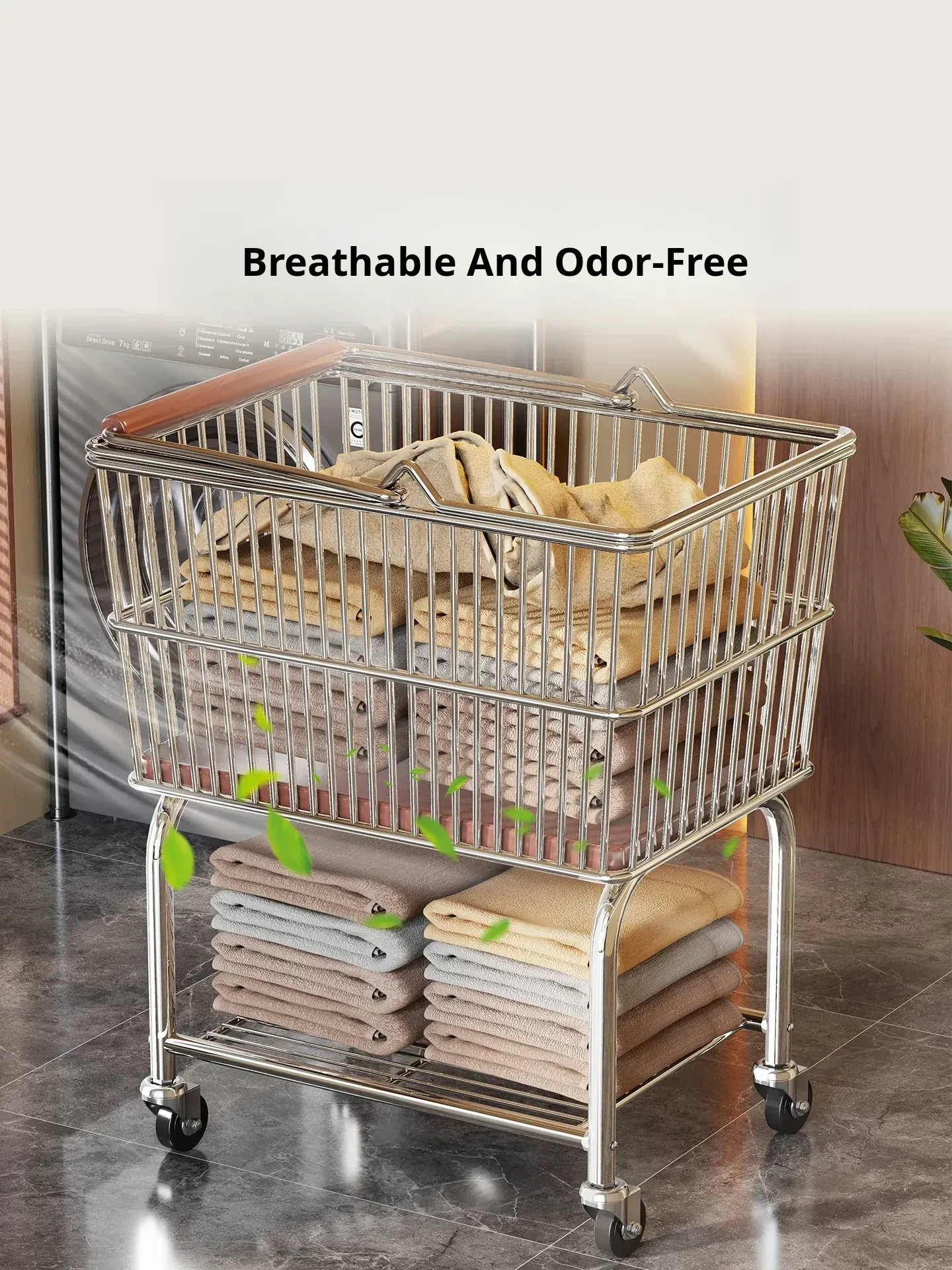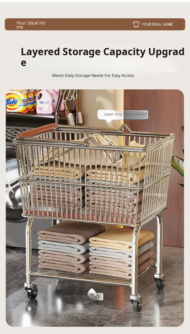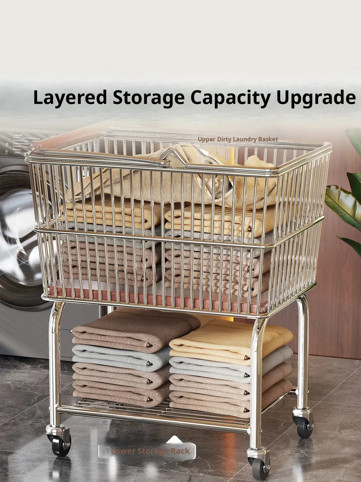 Double-Layer Rolling Laundry Hamper - Portable and Stylish Storage Cart for Bathroom, Bedroom, and Laundry Room - Perfect for Organizing Dirty Clothes!