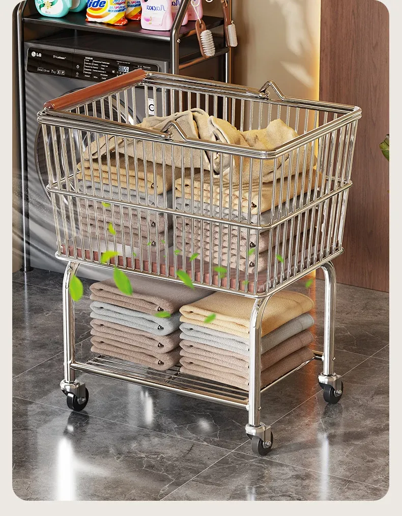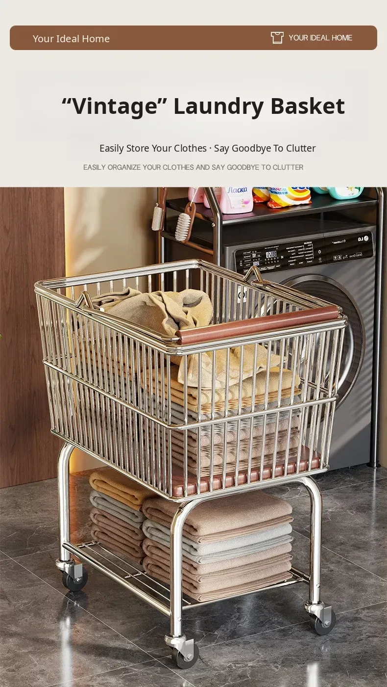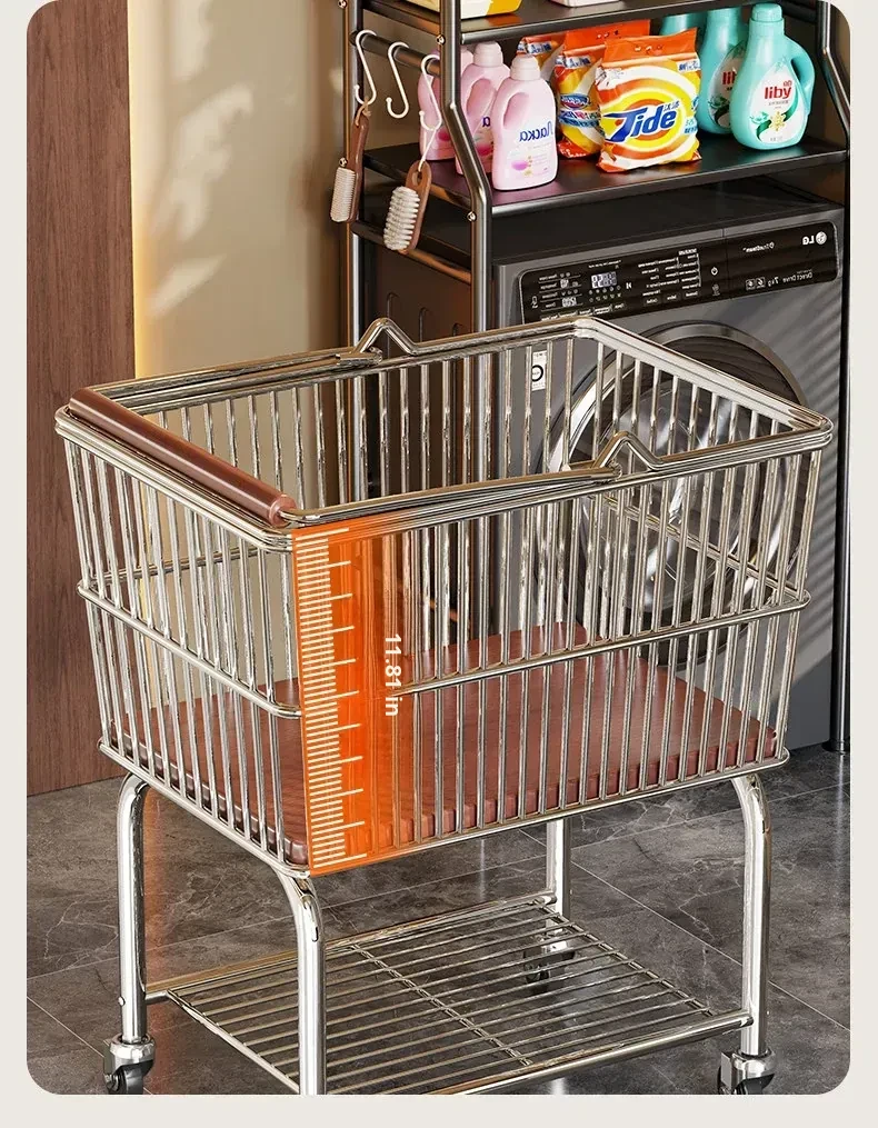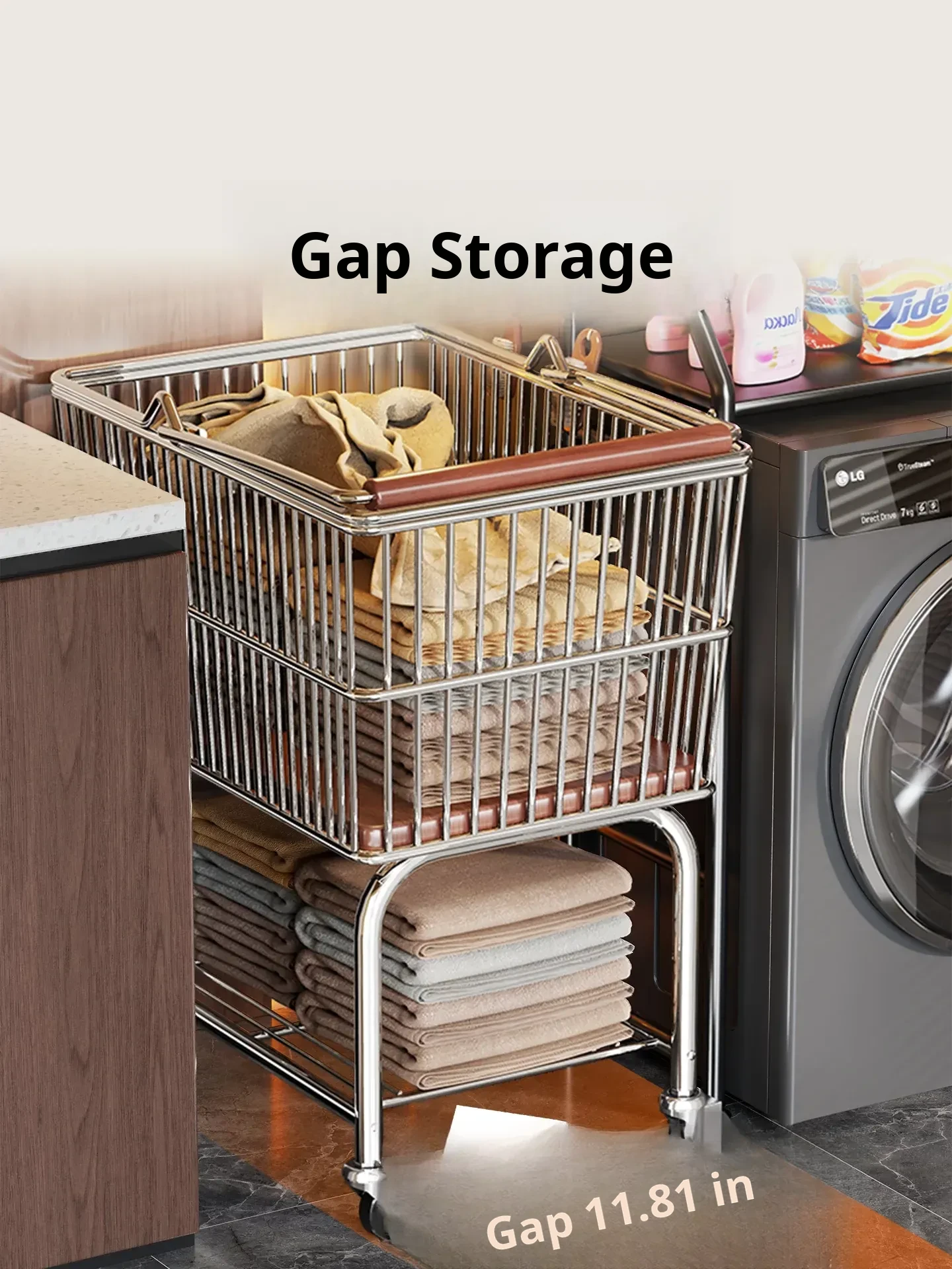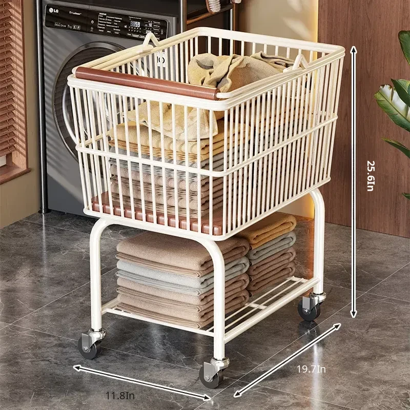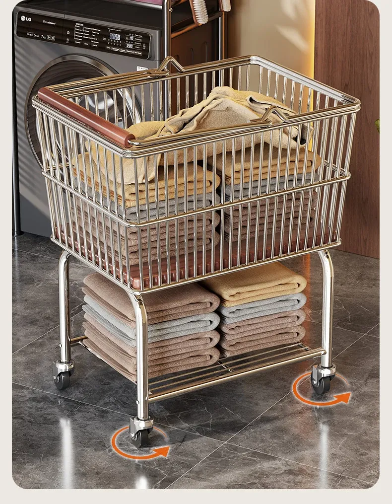 Double-Layer Rolling Laundry Hamper - Portable and Stylish Storage Cart for Bathroom, Bedroom, and Laundry Room - Perfect for Organizing Dirty Clothes!
