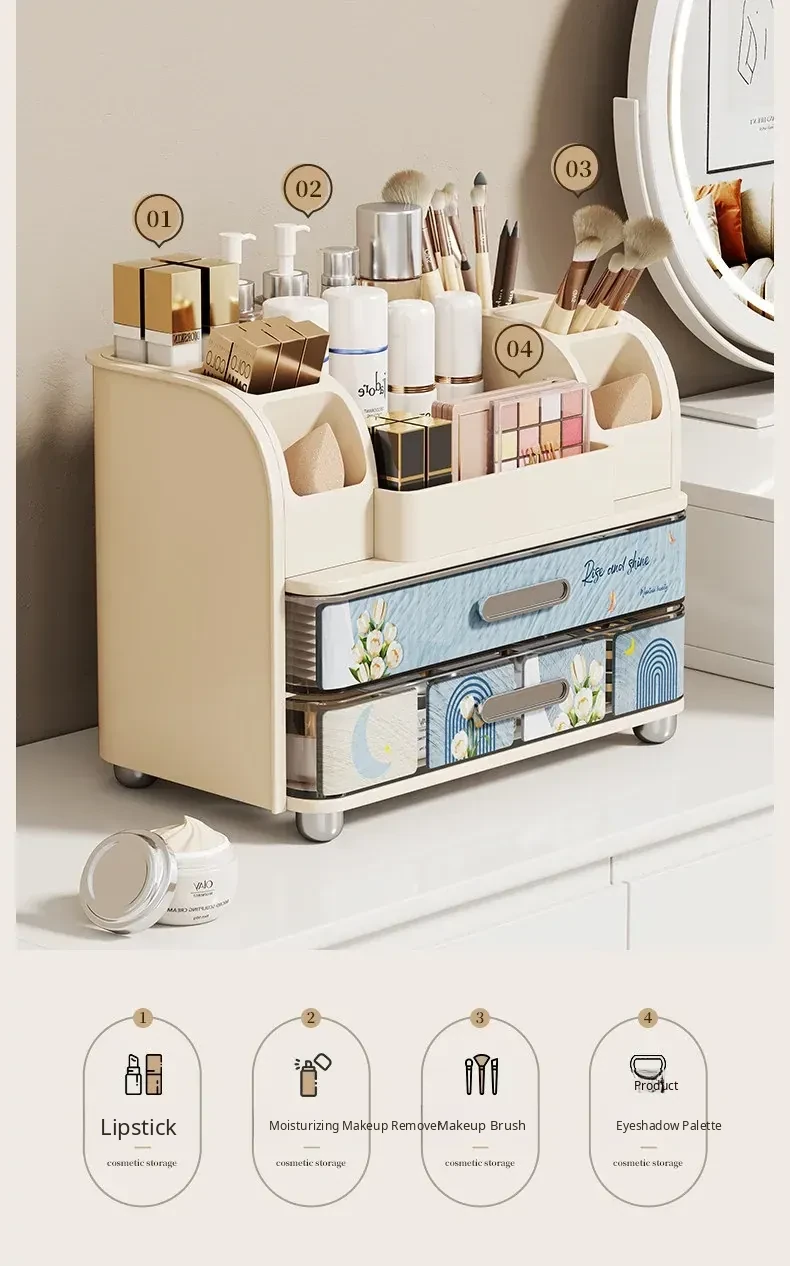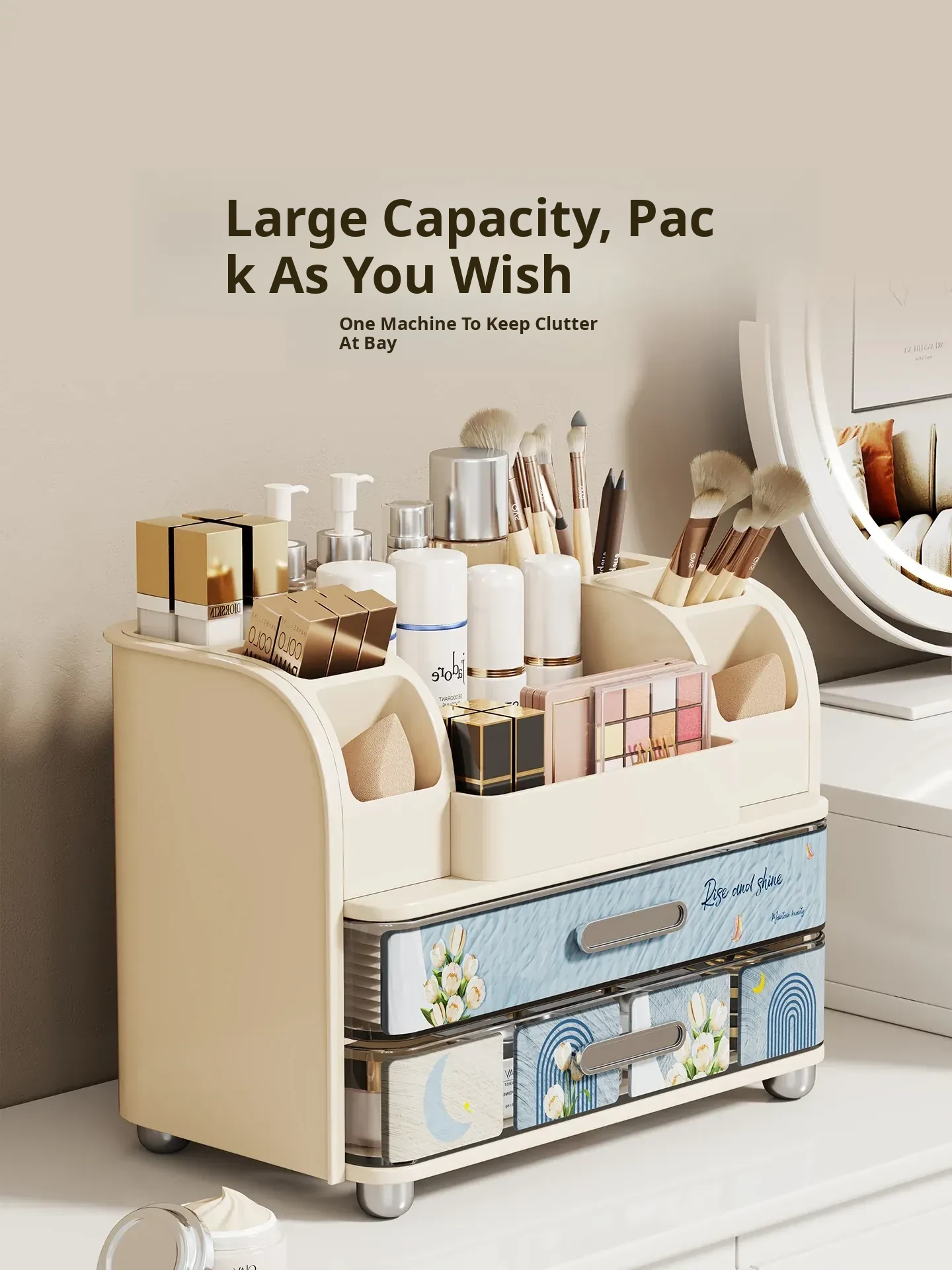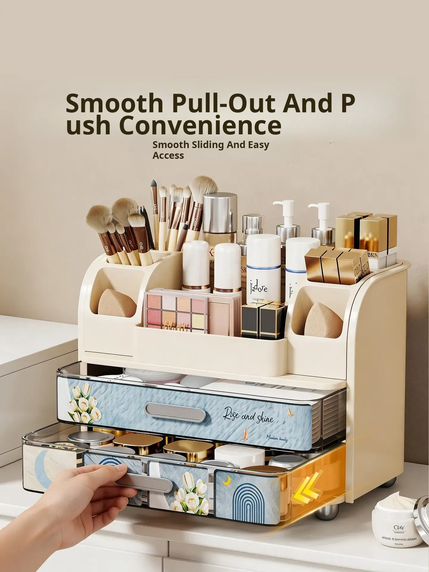 Elegant Makeup Organizer Box - Spacious Vanity Storage for Lipsticks, Eyeliners, and Skincare Products - Stylish Desktop Solution for Beauty Essentials