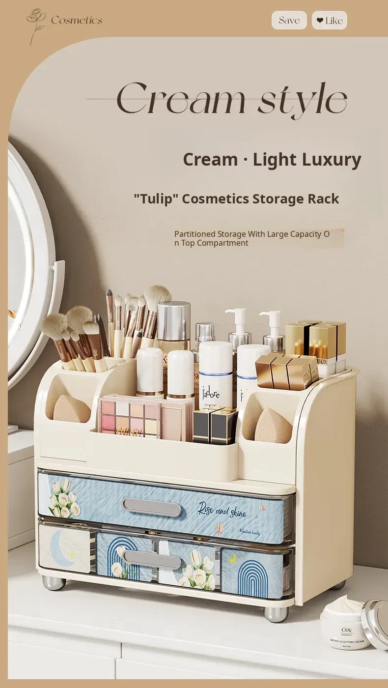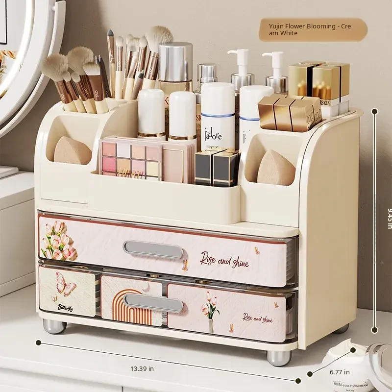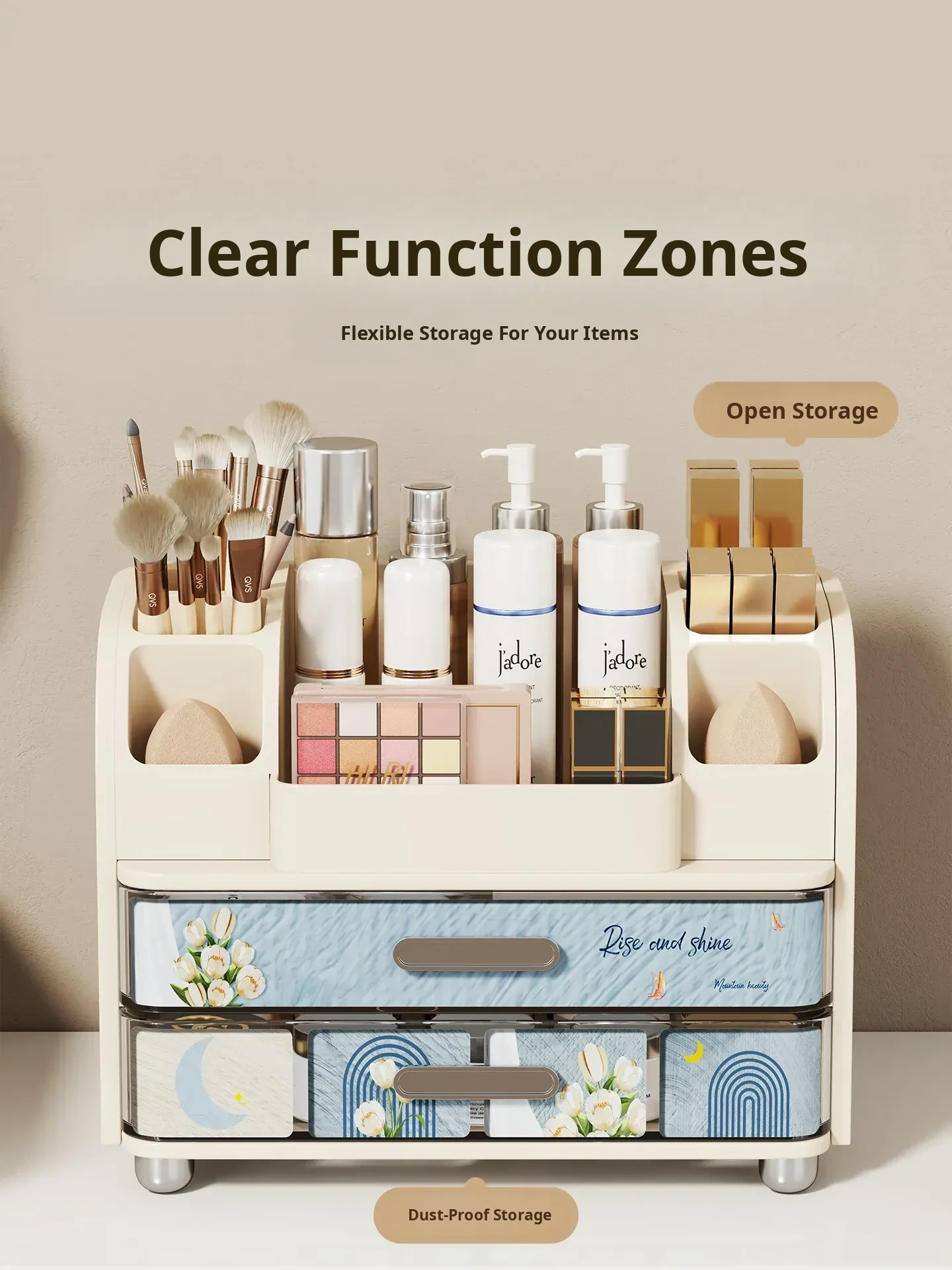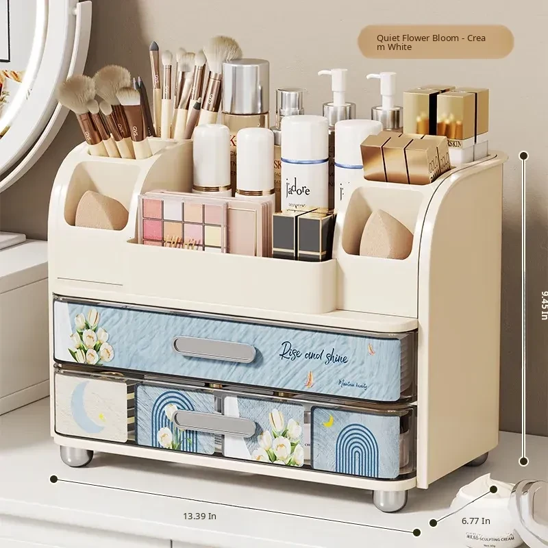 Elegant Makeup Organizer Box - Spacious Vanity Storage for Lipsticks, Eyeliners, and Skincare Products - Stylish Desktop Solution for Beauty Essentials