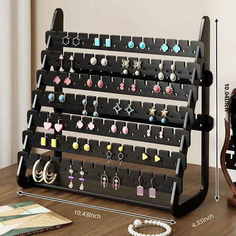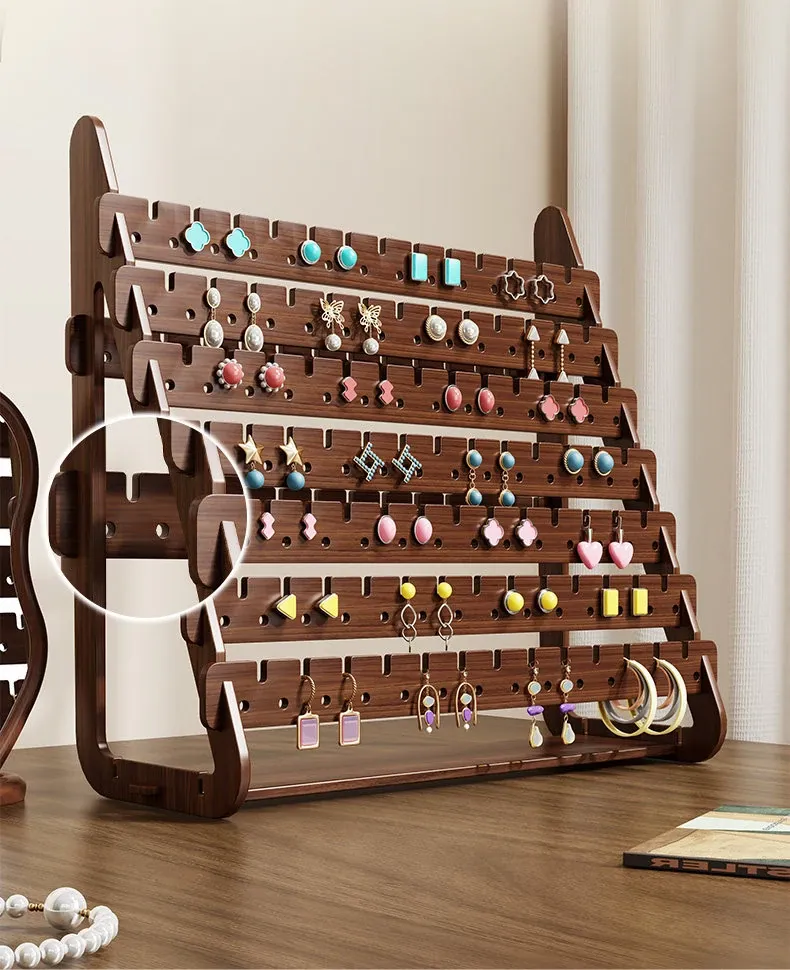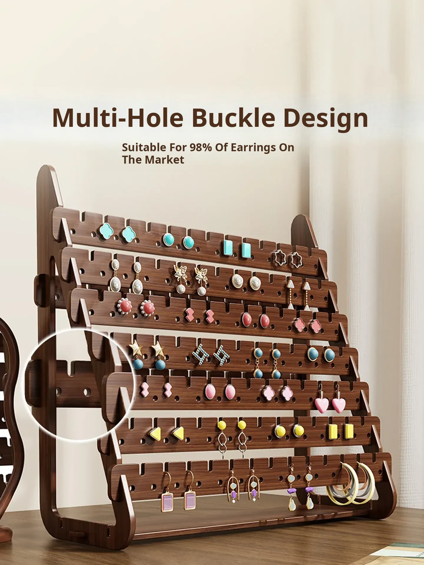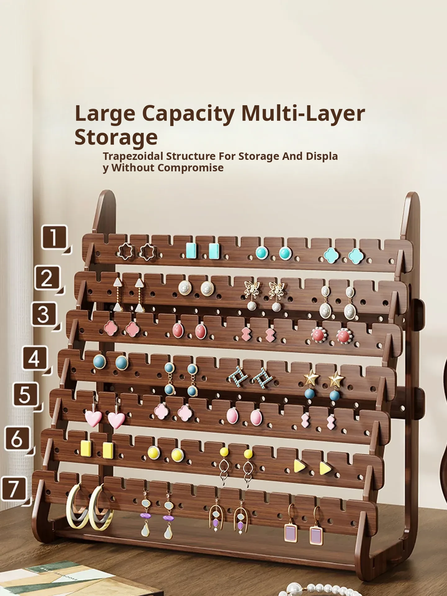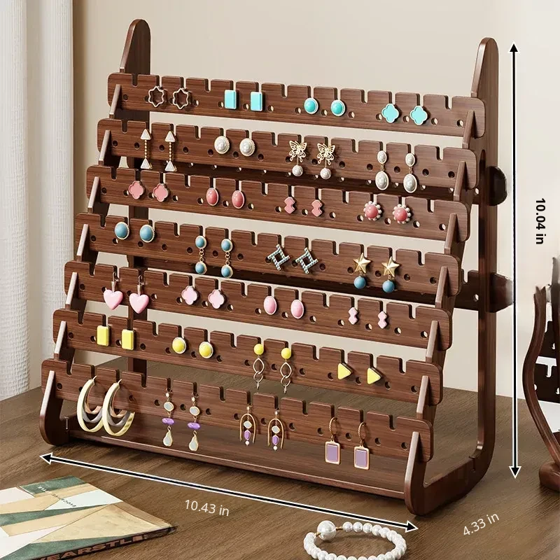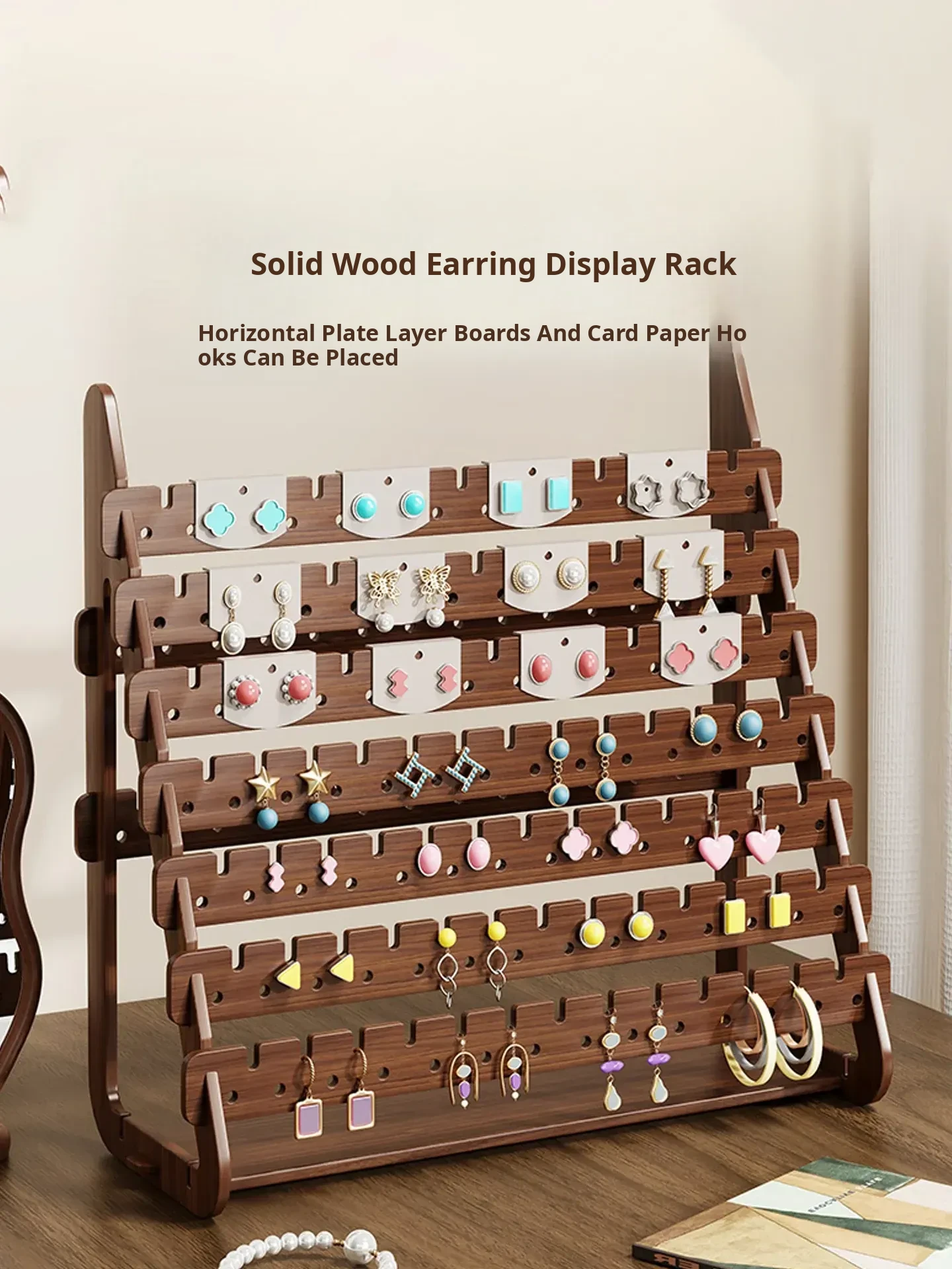Elegant Wooden Jewelry Organizer: Multi-Layer Earring Display Stand for Earrings and Necklaces - Perfect for Showcasing and Storing Your Accessories on Your Desktop!