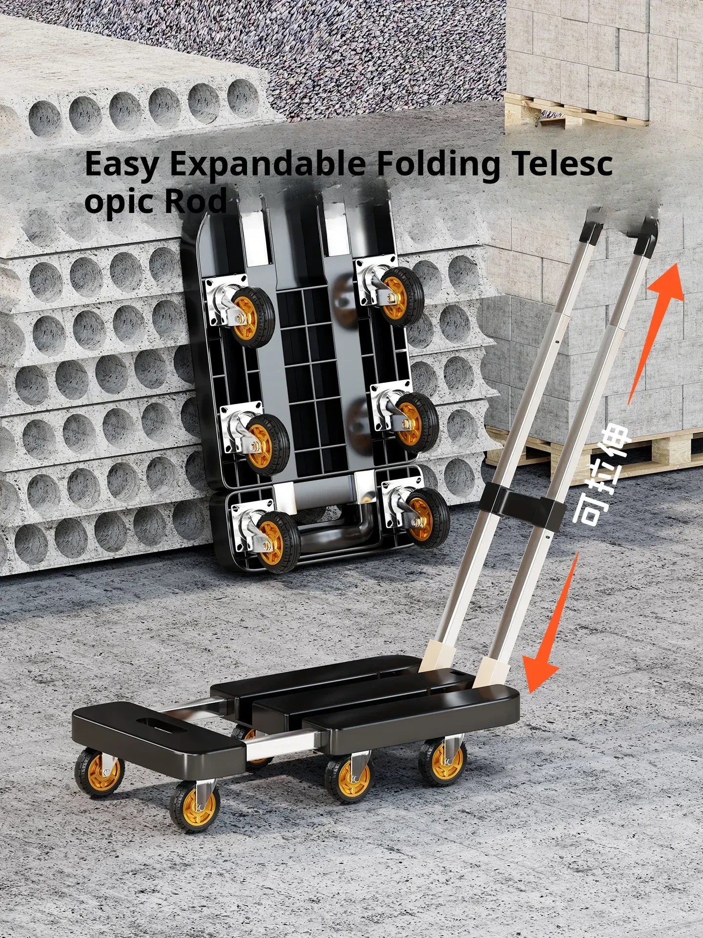 Folding Hand Truck for Home Use - Versatile Shopping and Cargo Cart, Luggage Transporter, Delivery Trolley, Compact Flatbed Cart, Easy to Maneuver! Perfect for Errands and Moving!