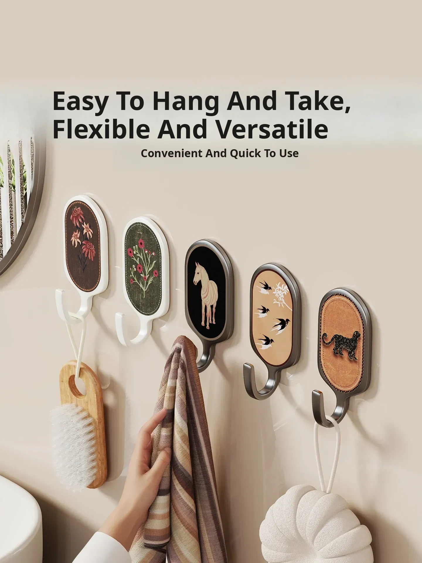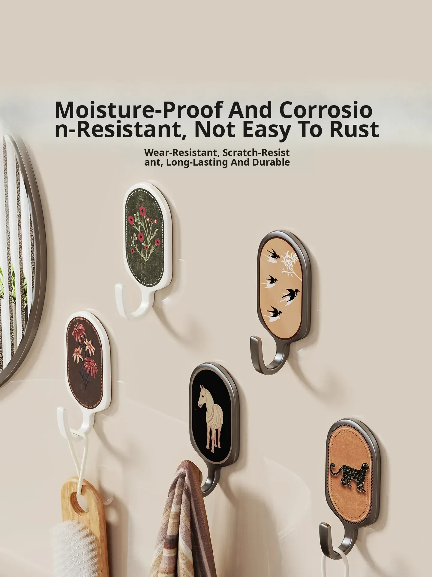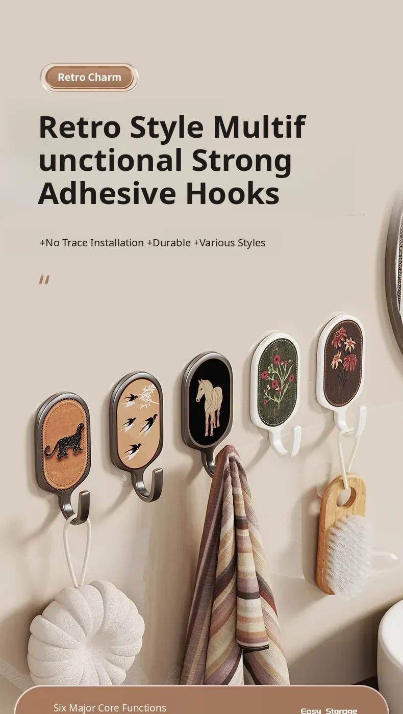 Heavy-Duty No-Drill Adhesive Hooks for Kitchen and Bathroom - Waterproof, Removable, and Damage-Free Wall Hooks for Versatile Use and Strong Weight Capacity
