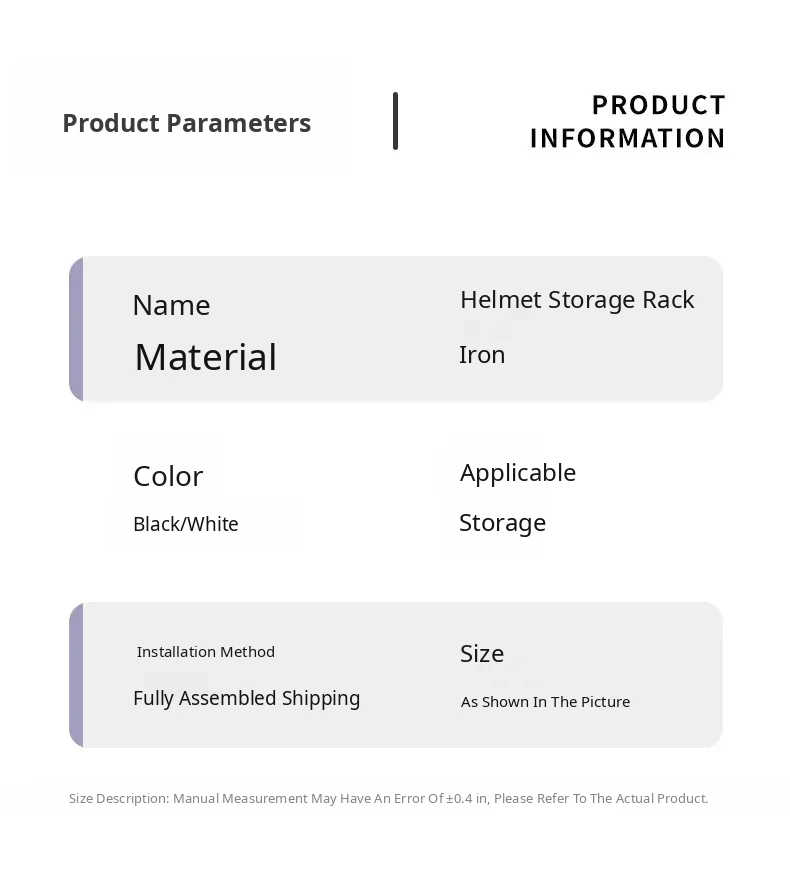Helmet Storage Rack for Electric Bike - No Drill Needed, Wall-Mounted Organizer for Helmets and Caps, Motorcycle Safety Helmet Hook for Easy Access and Neat Storage