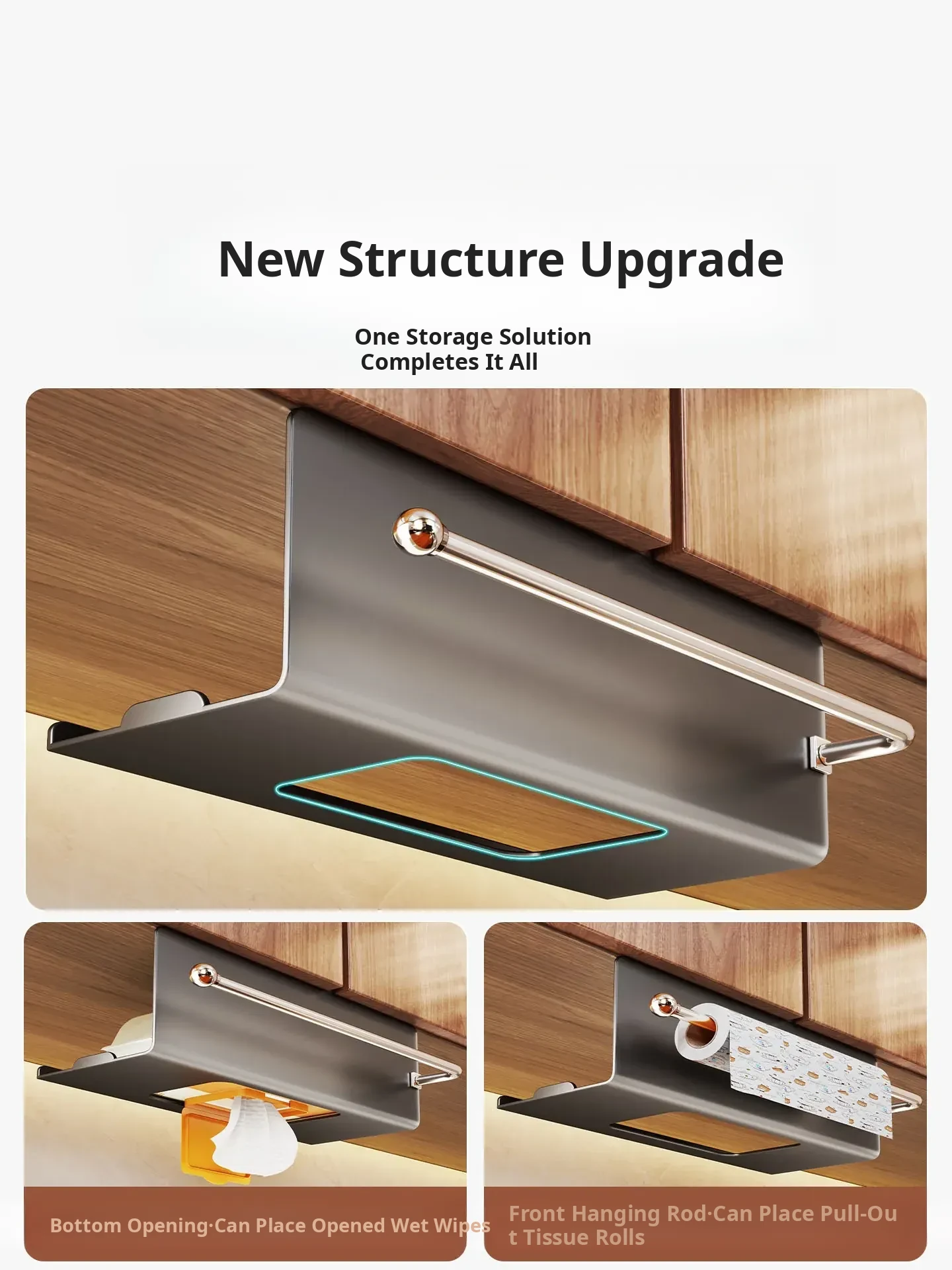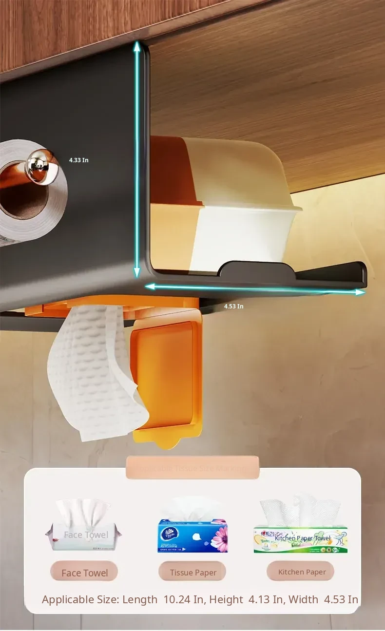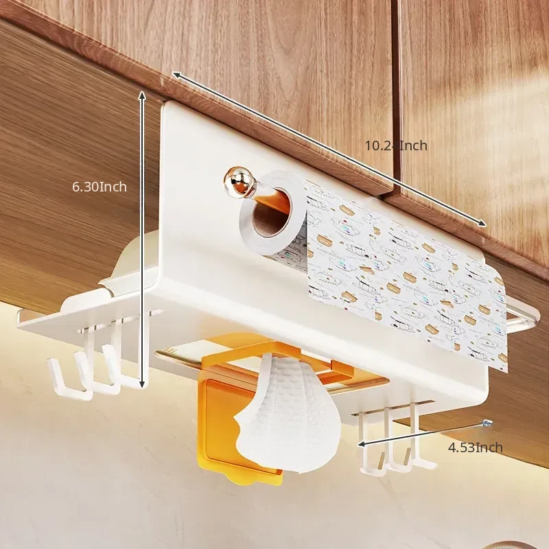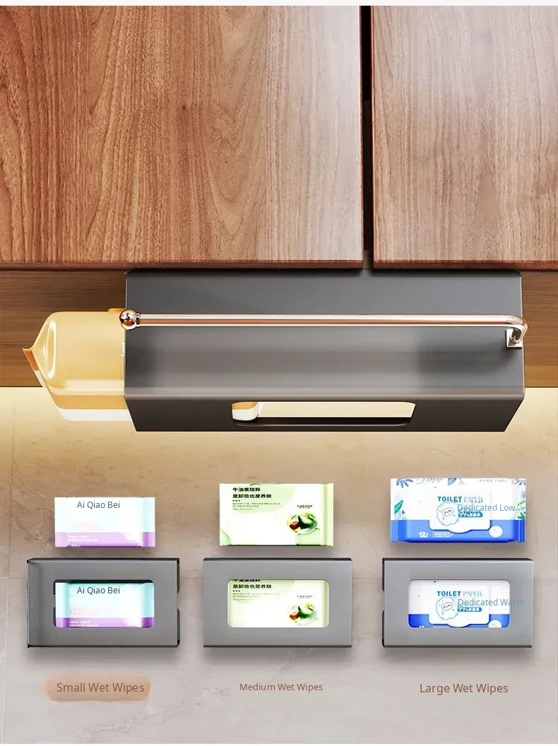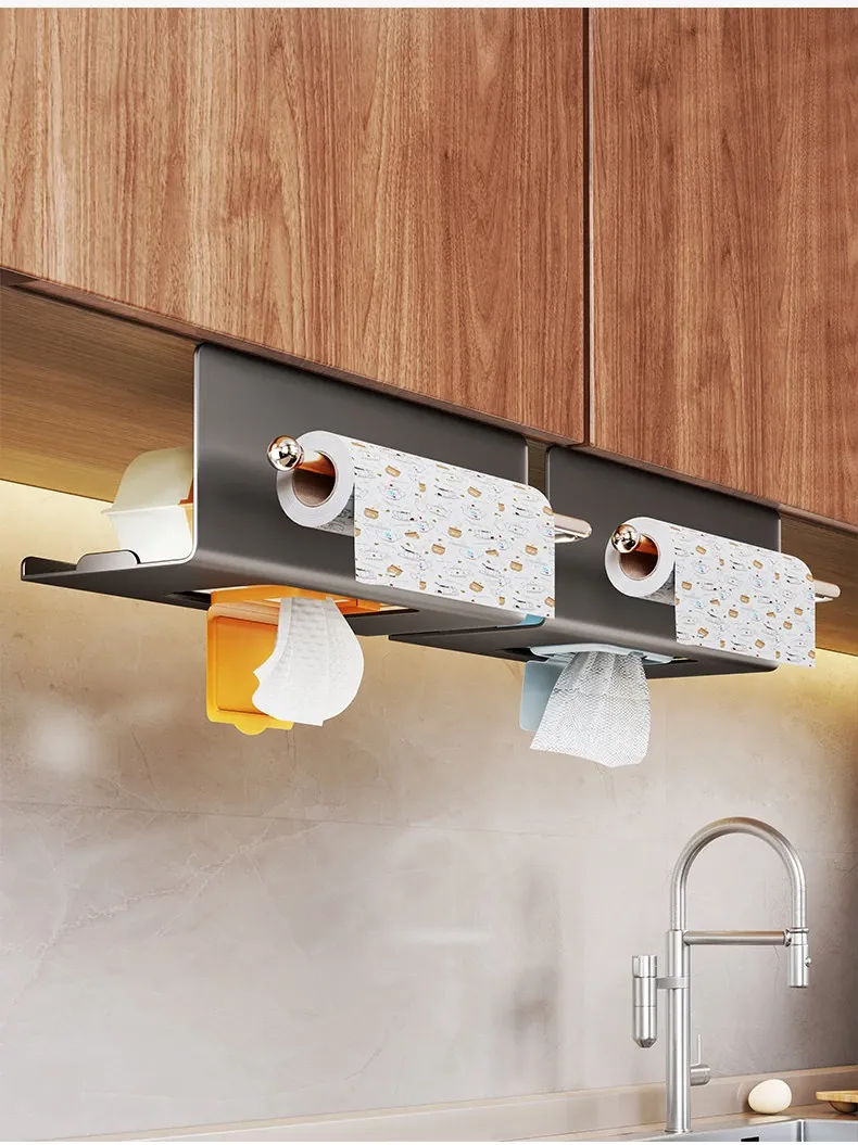 Kitchen Wet Wipes Storage Box - Paper Towel Holder, Roll Paper & Cling Film Rack, Hanging Face Towel Organizer, Under-Cabinet Dispenser for Easy Access and Neat Organization