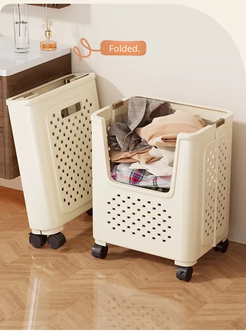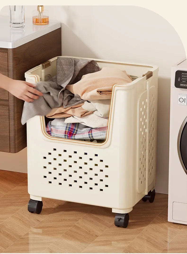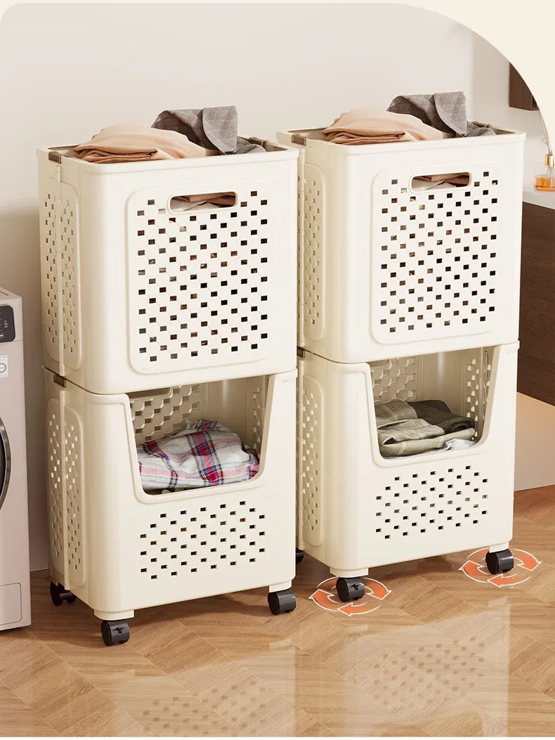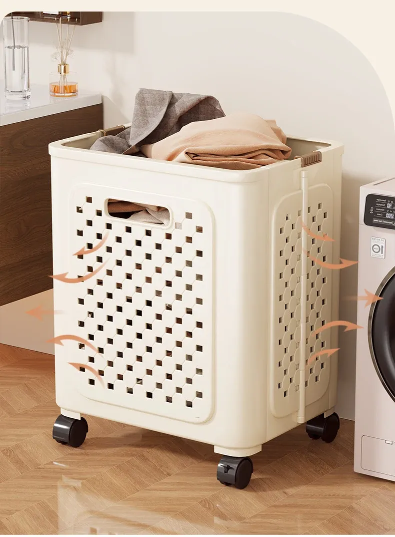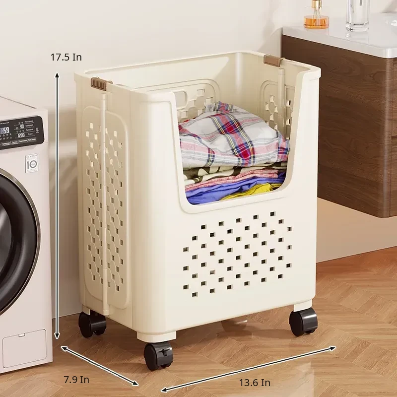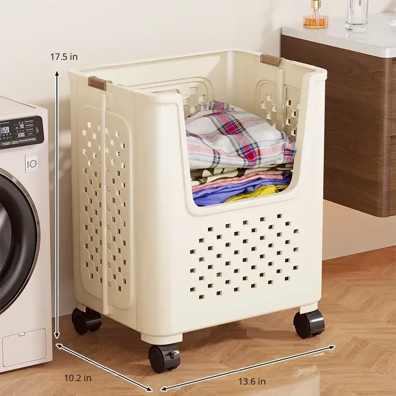 Large Capacity Rolling Laundry Basket - Versatile Storage Cart for Household Use, Perfect for Bathroom, Laundry Room, and Organizing Dirty Clothes and Miscellaneous Items.