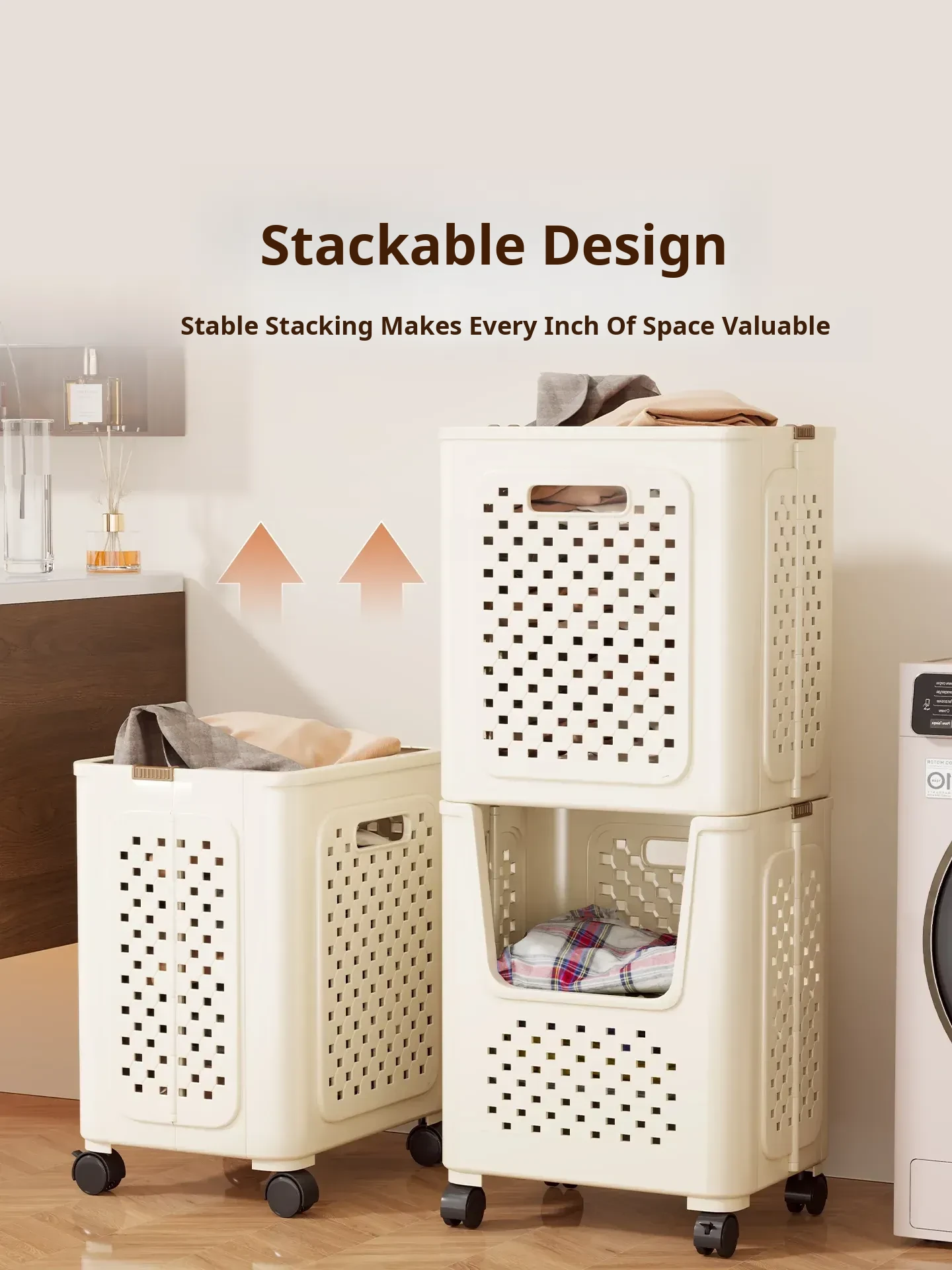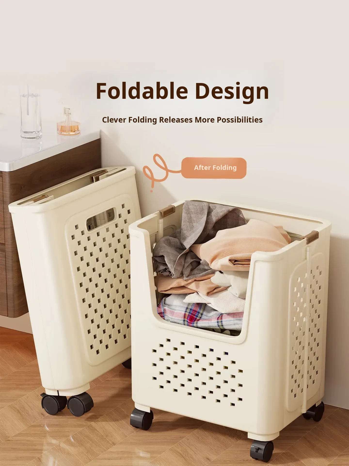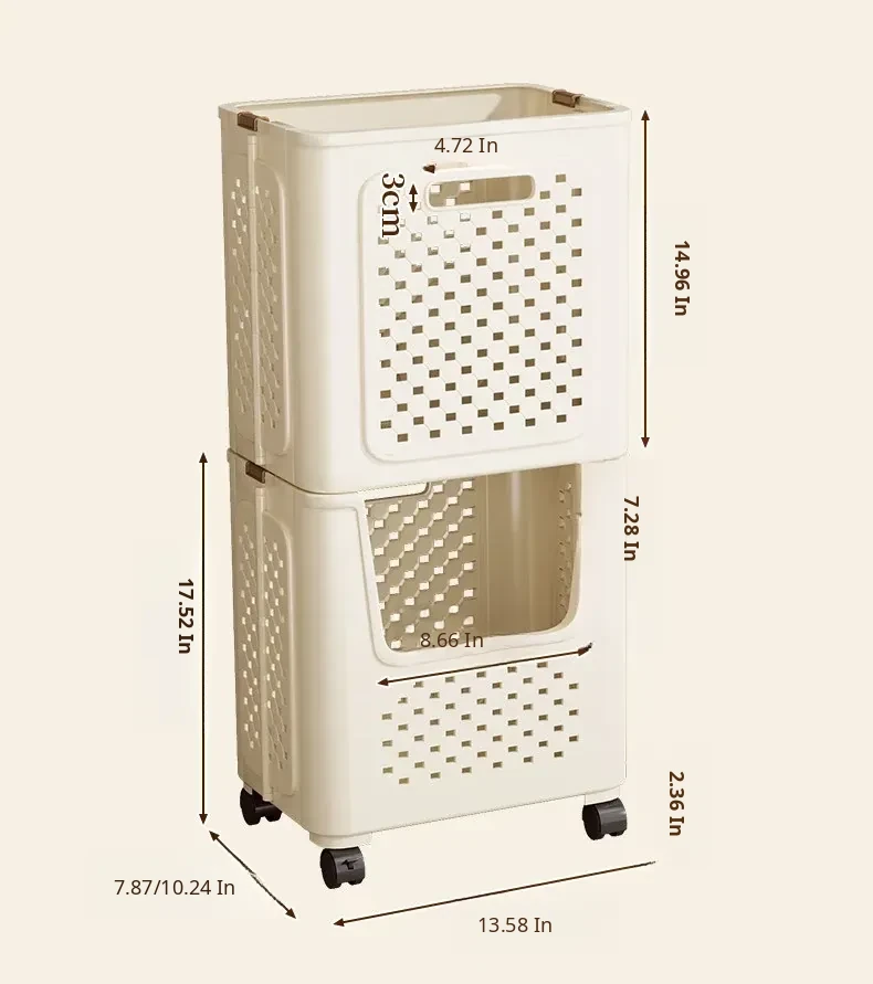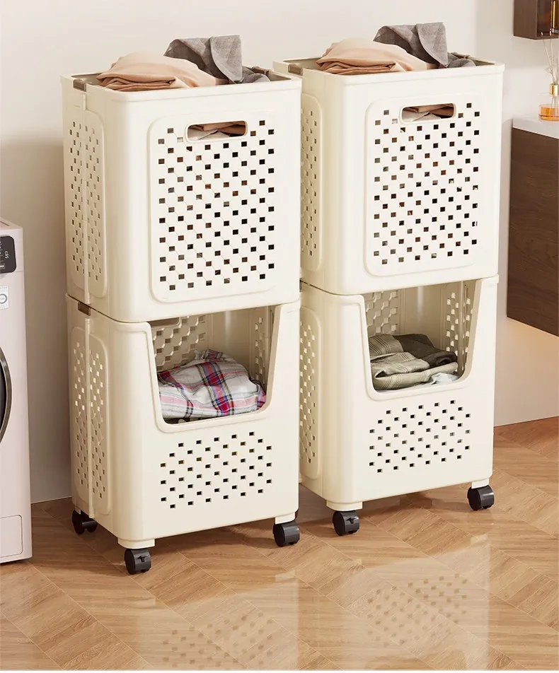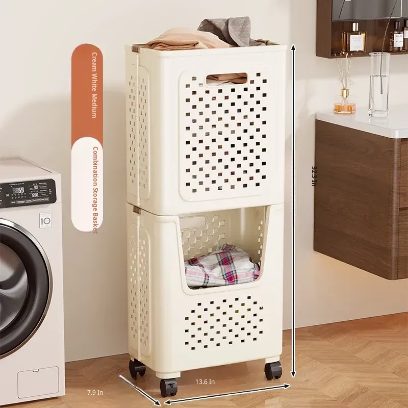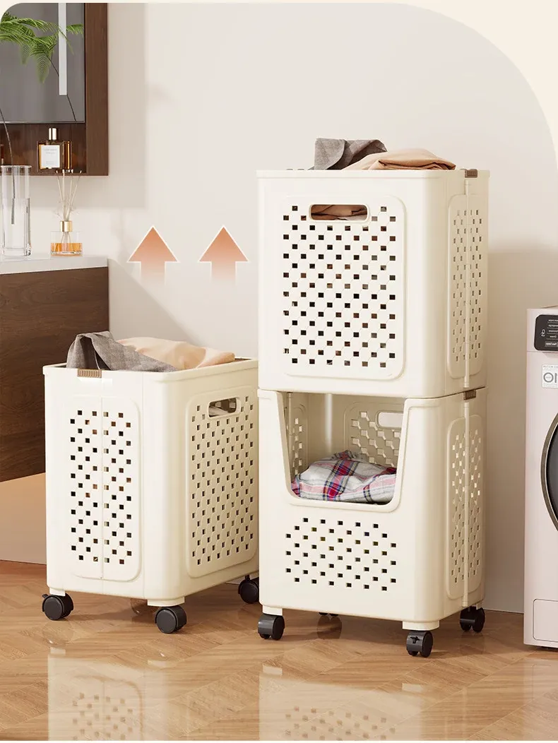 Large Capacity Rolling Laundry Basket - Versatile Storage Cart for Household Use, Perfect for Bathroom, Laundry Room, and Organizing Dirty Clothes and Miscellaneous Items.