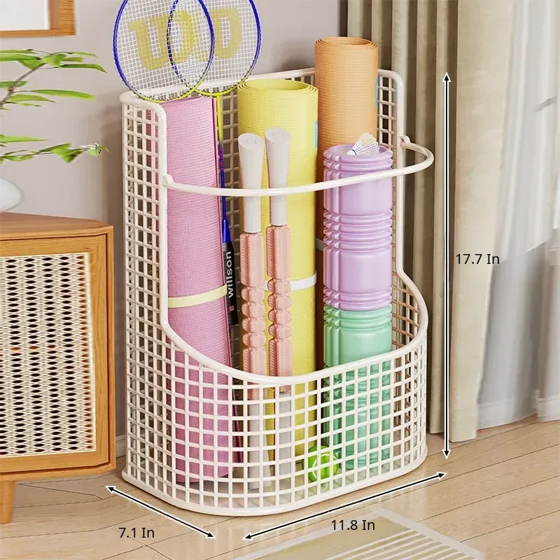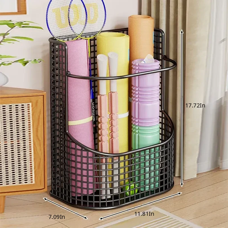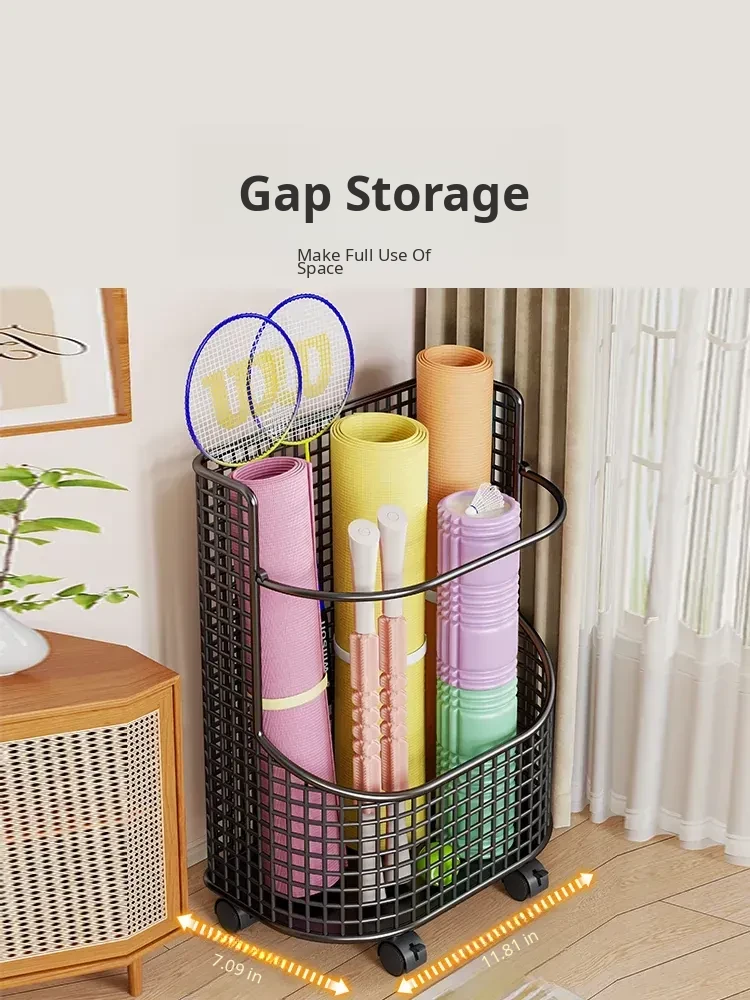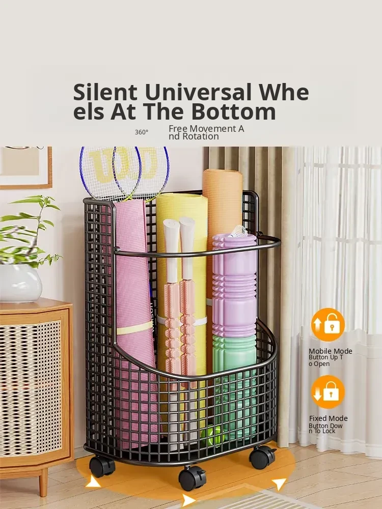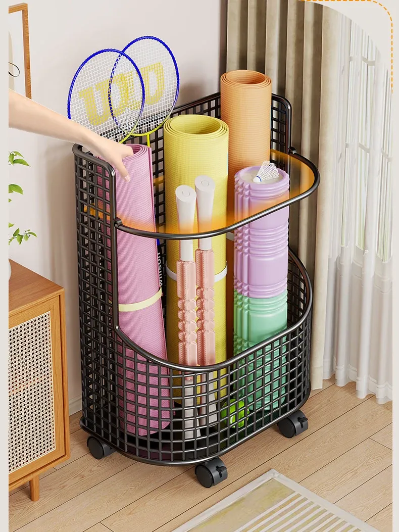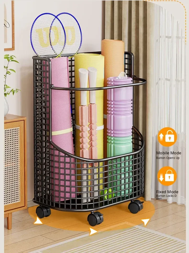Large Capacity Yoga Mat Storage Basket with Wheels - Portable Racket Organizer for Home Gym Equipment, Ideal for Easy Access and Neat Organization