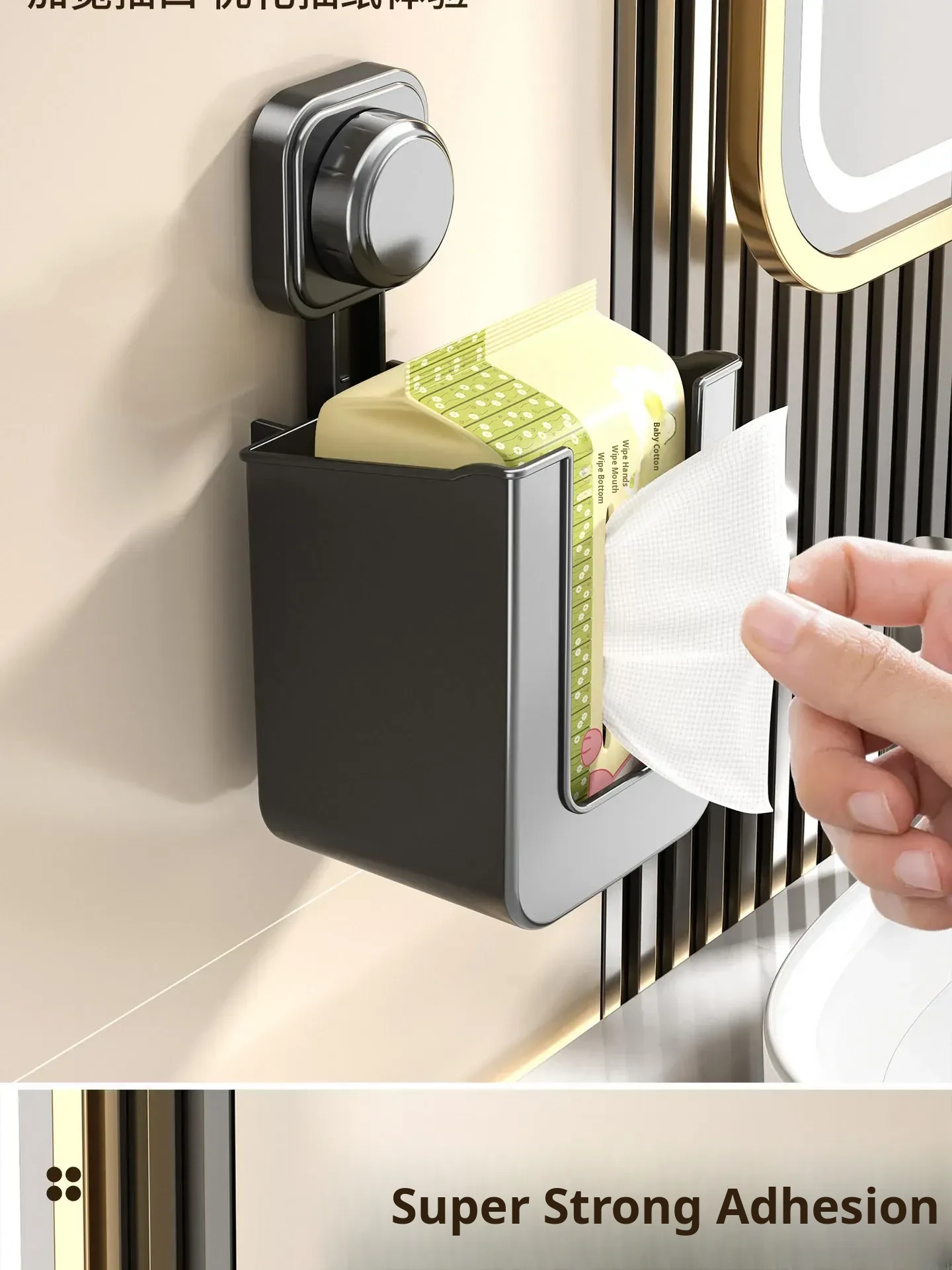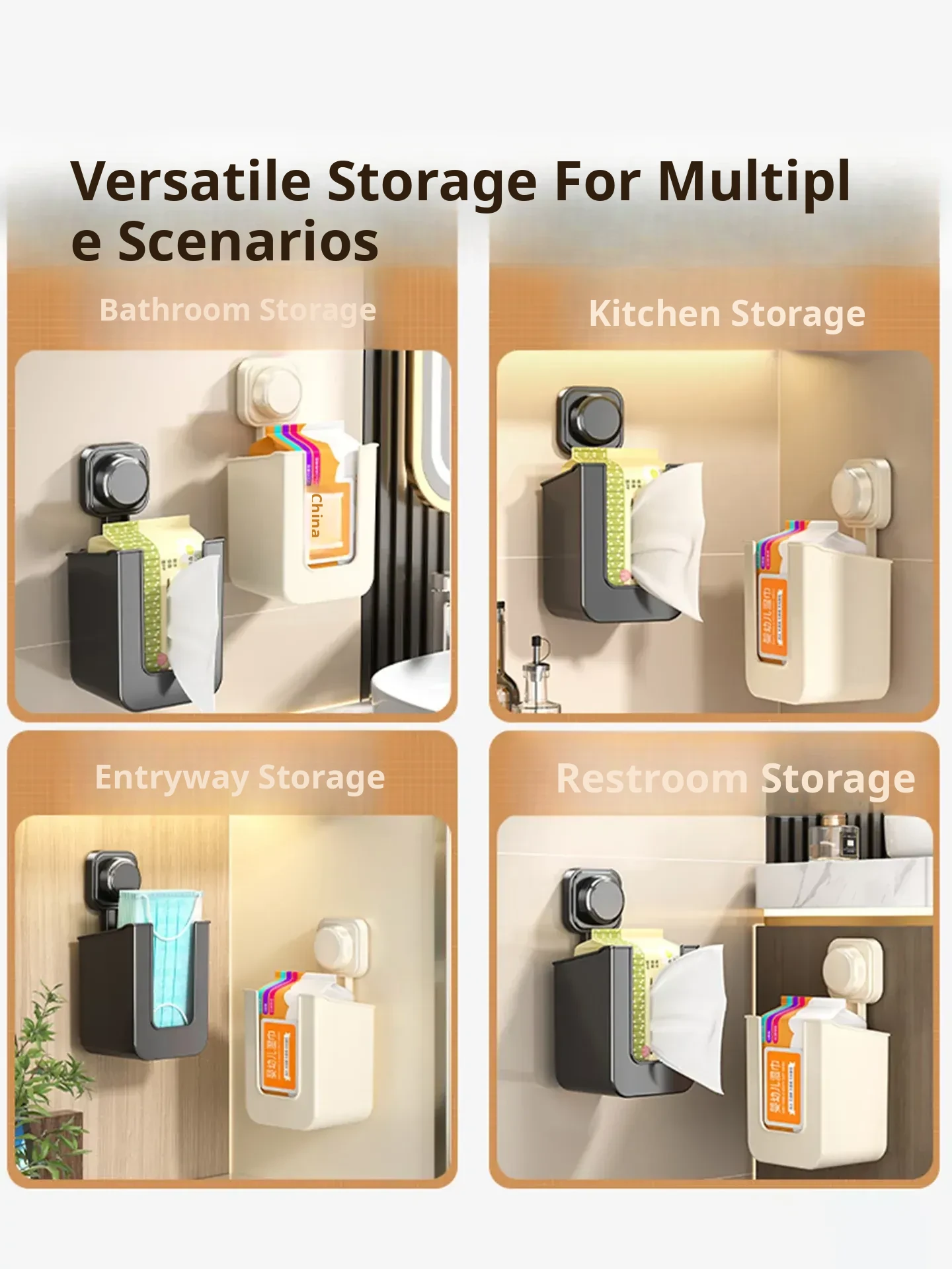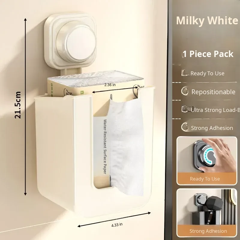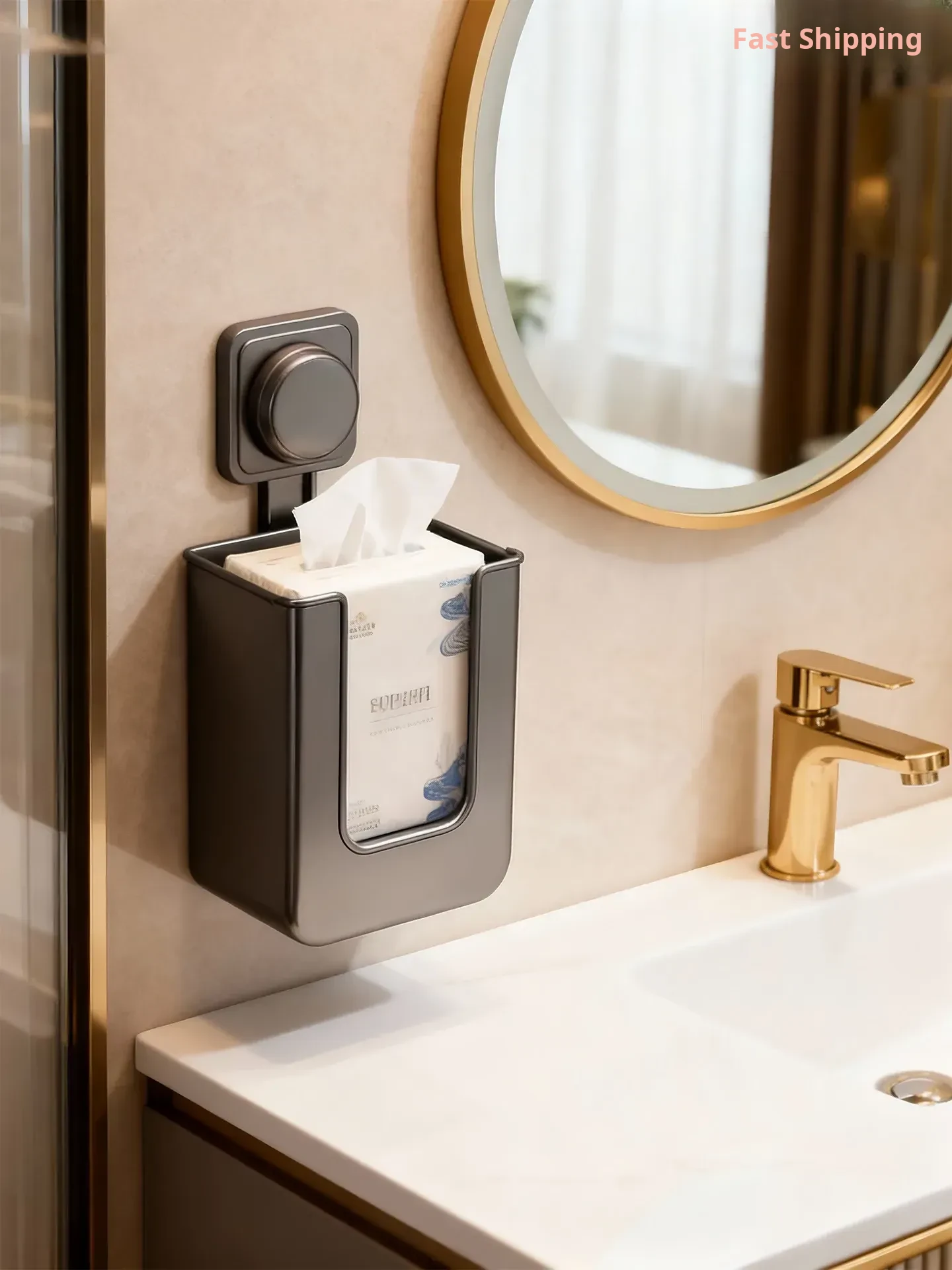 Luxury Wall-Mounted Tissue Box with Suction Cup – Elegant and Functional Bathroom Organizer for Easy Access to Paper Towels and More, No Drilling Required!