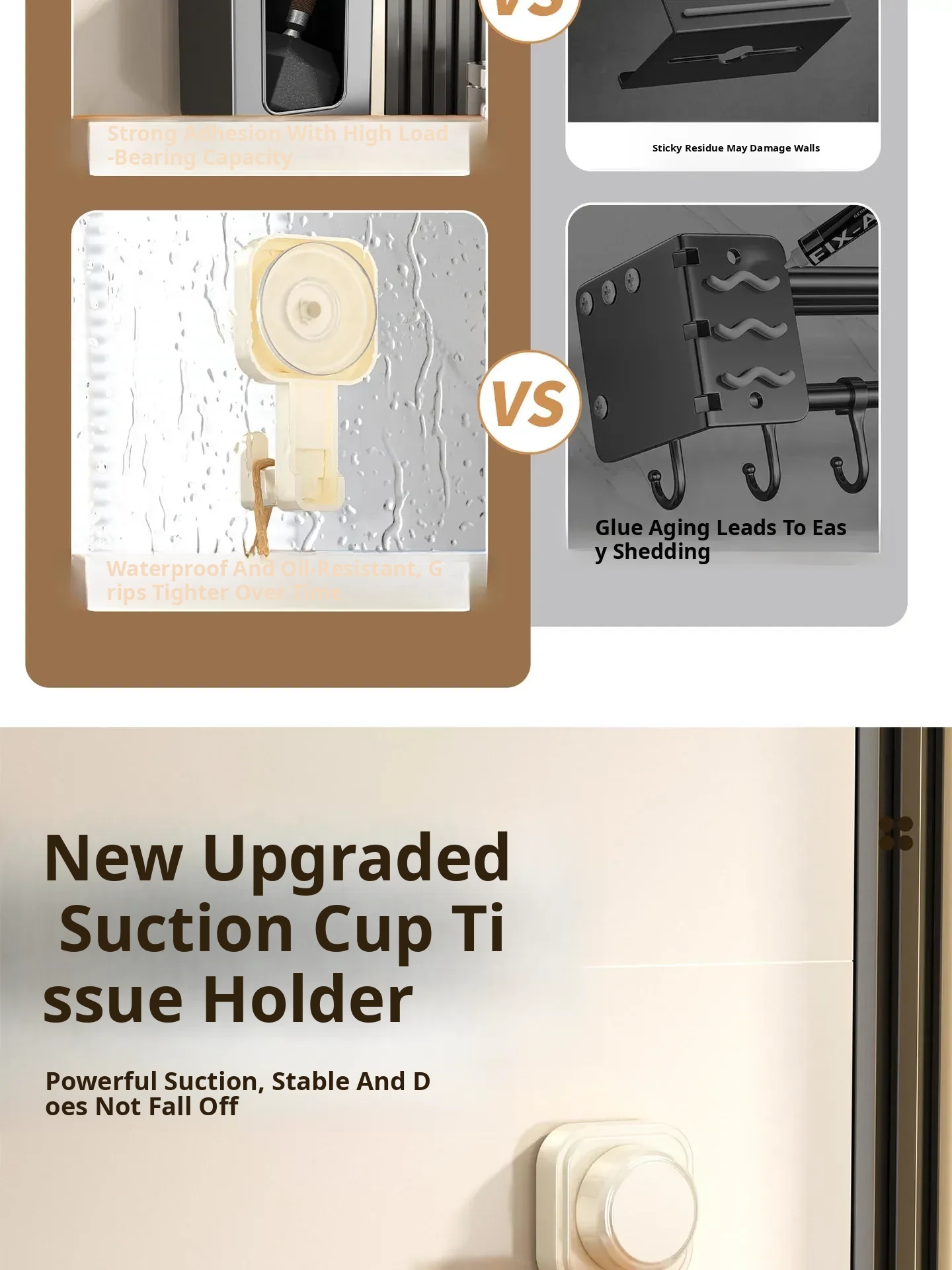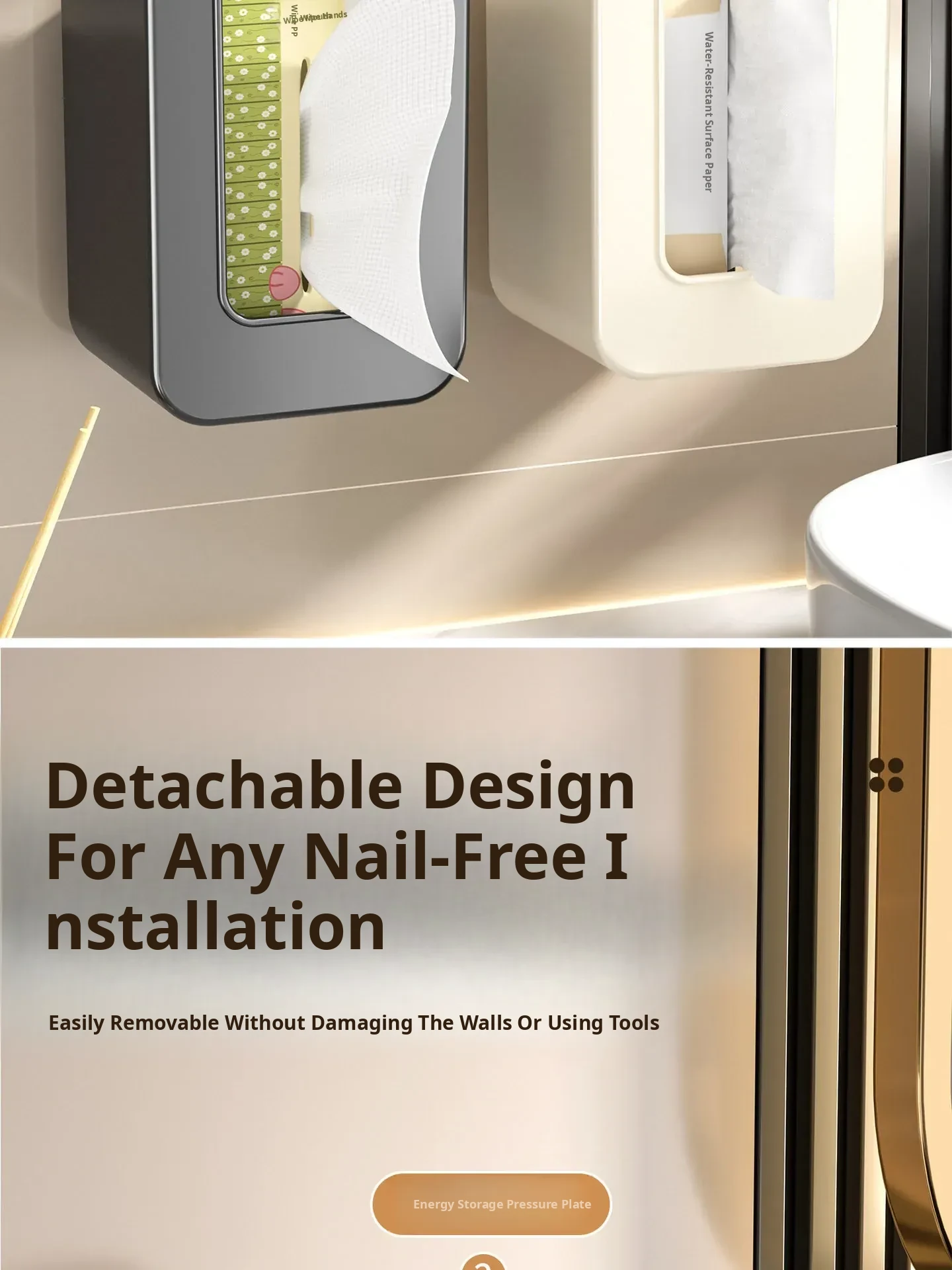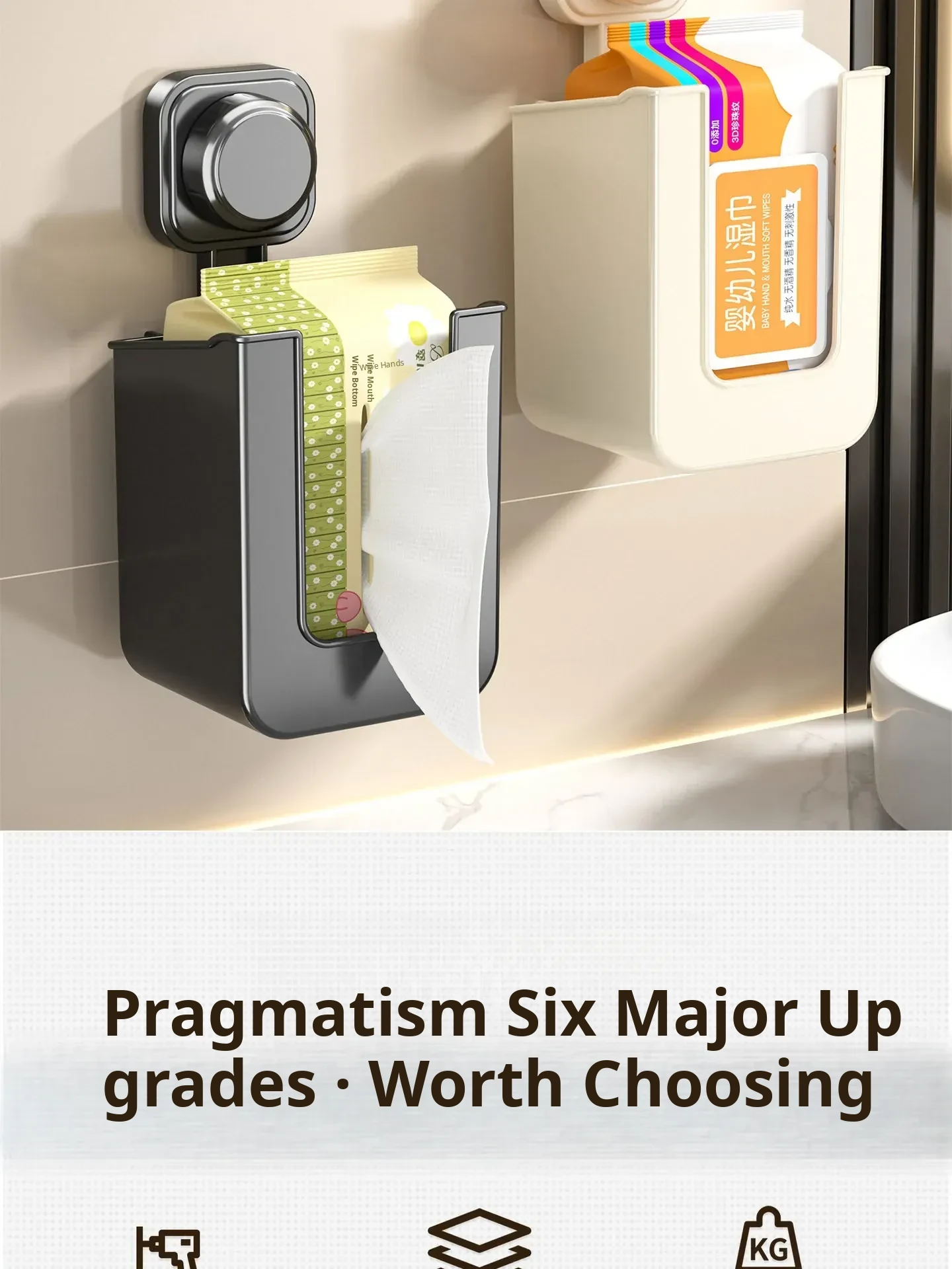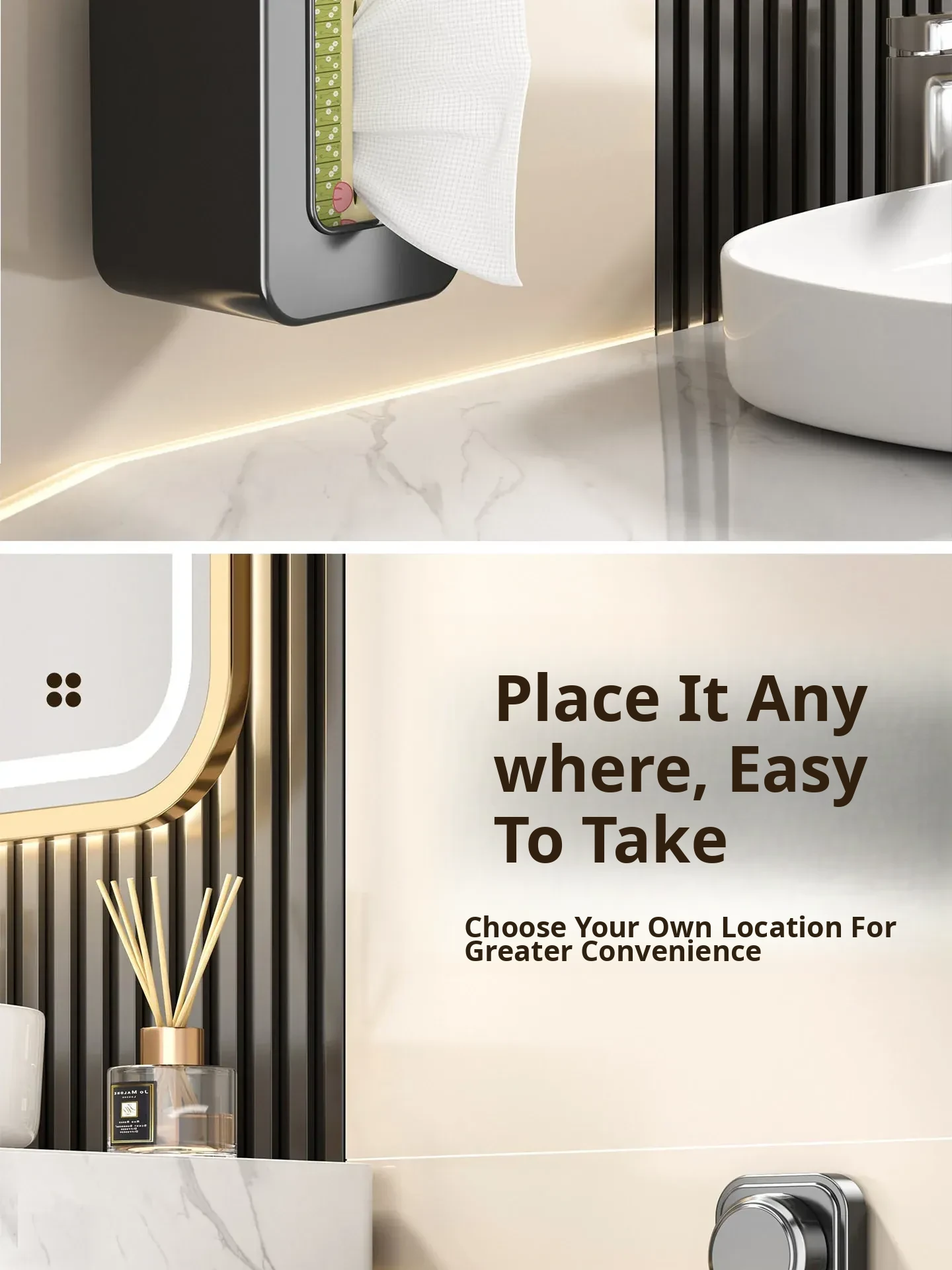 Luxury Wall-Mounted Tissue Box with Suction Cup – Elegant and Functional Bathroom Organizer for Easy Access to Paper Towels and More, No Drilling Required!