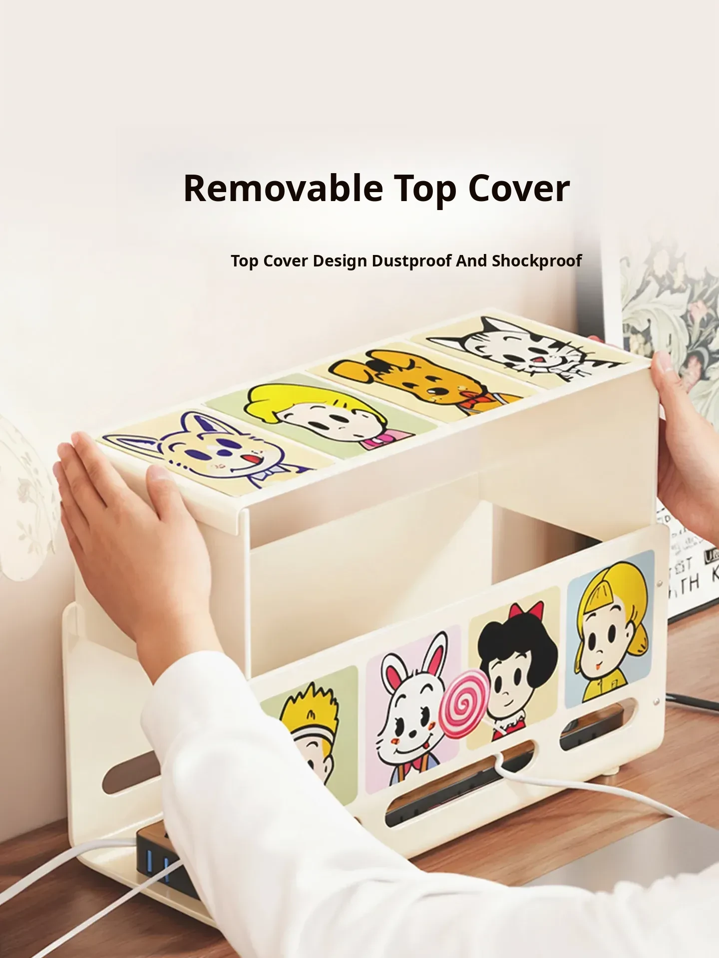 Multi-Functional Cable Management Box & Power Strip Organizer - Stylish Desktop Router Storage Rack, Perfect for Living Room Clutter Control!