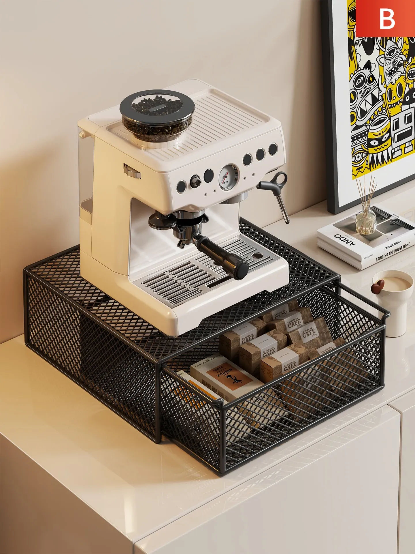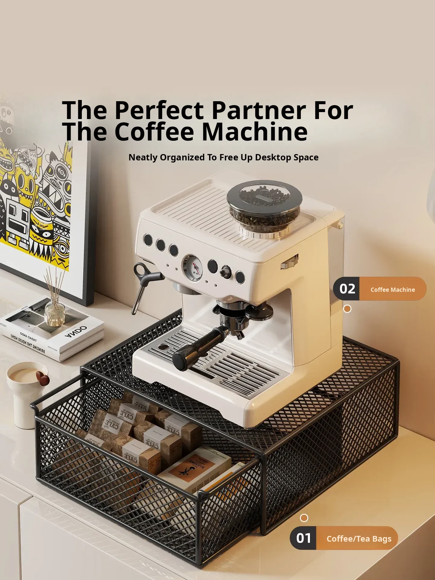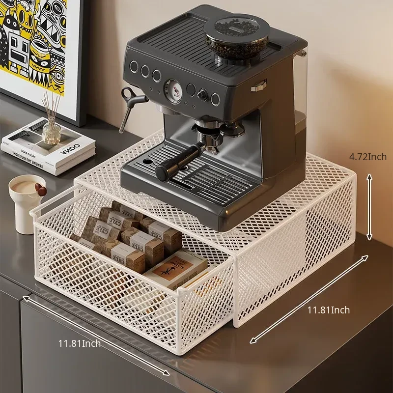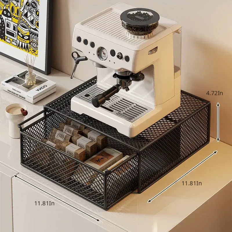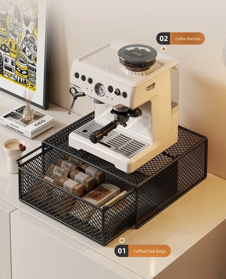Multi-Functional Desktop Storage Rack for Home Bar - Coffee Machine Organizer with Drawer, Ideal for Tea Bags and Cups, Perfect for Dining Table or Kitchen Use