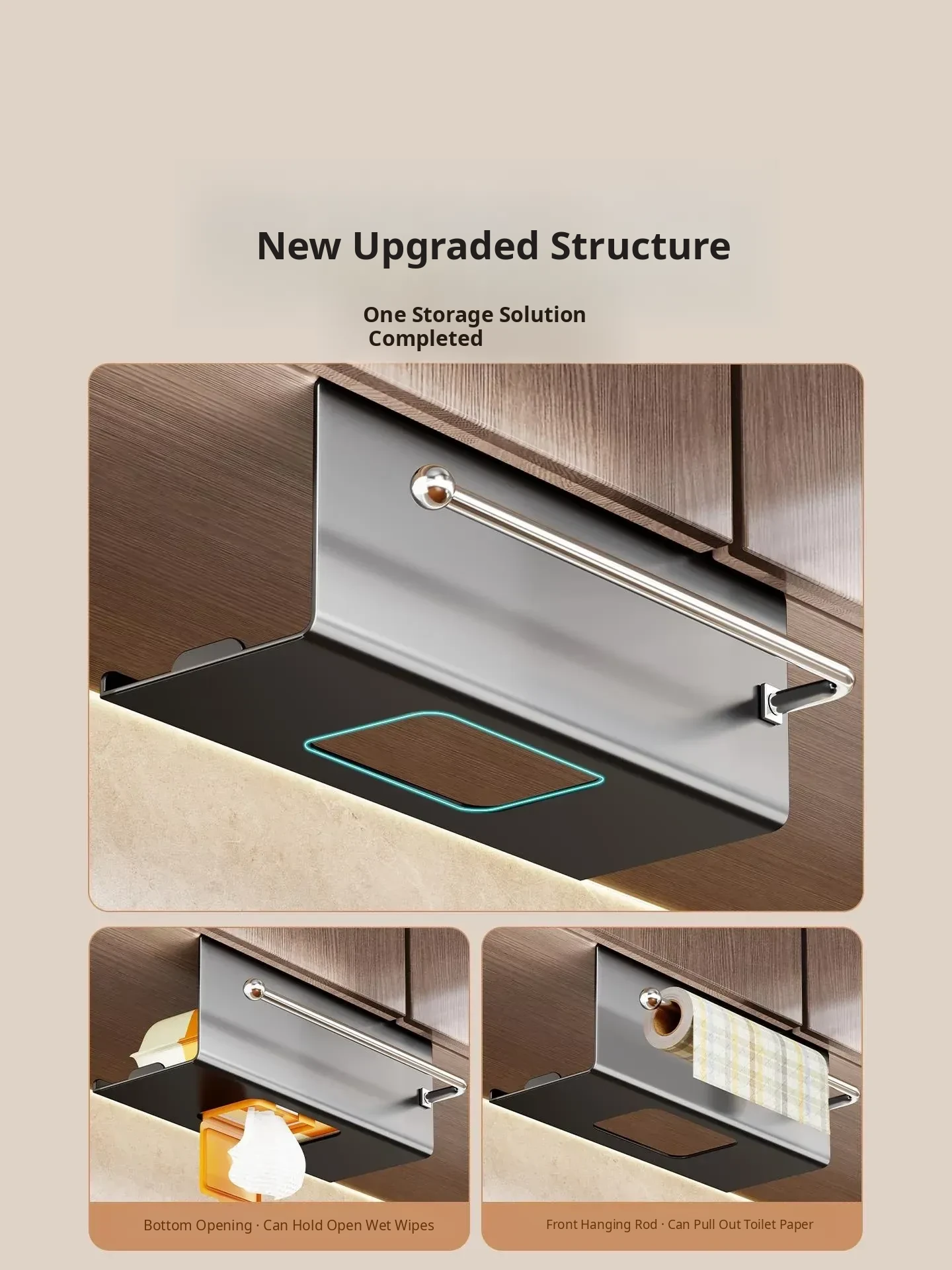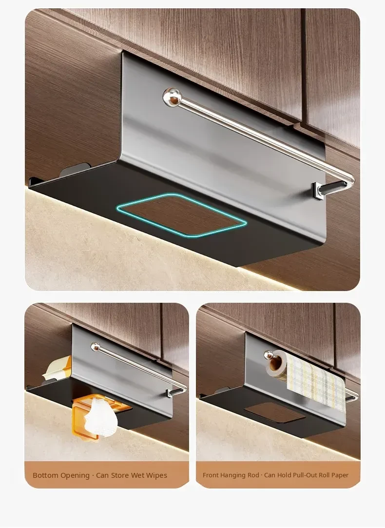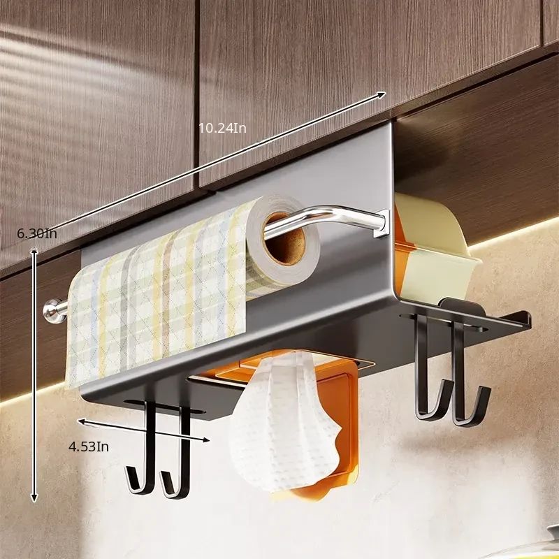 Multi-Functional Kitchen Hanging Paper Towel Rack - No Drilling Required, Ideal for Cabinets, Holds Wet Wipes, Oil Absorbent Paper, and Cloths - Perfect for Organizing Your Kitchen Space!