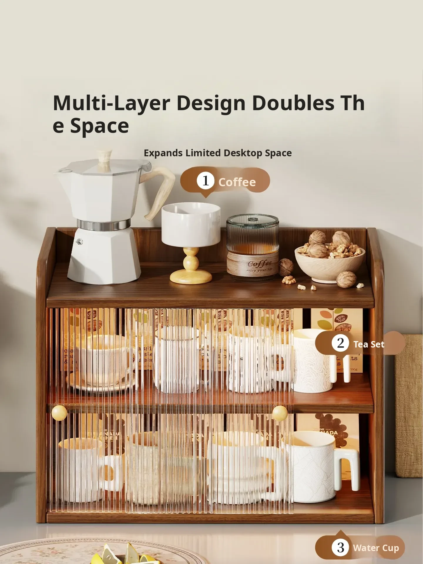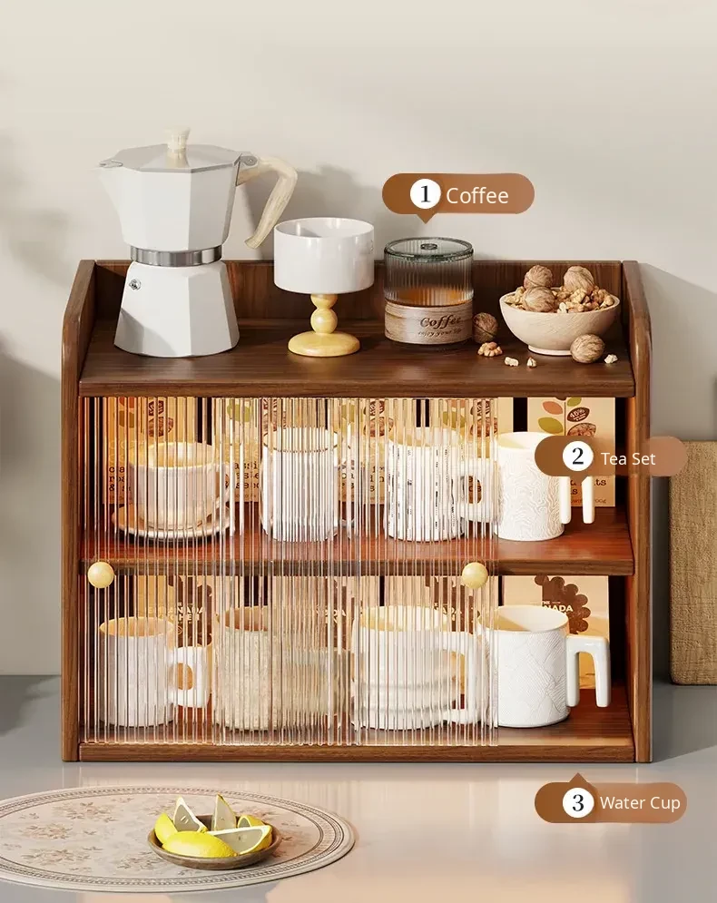 Multi-Layer Cup Holder and Organizer - Stylish Desktop Storage for Tea, Coffee, and Water Mugs - Dustproof Design for Dining Tables and Side Cabinets
