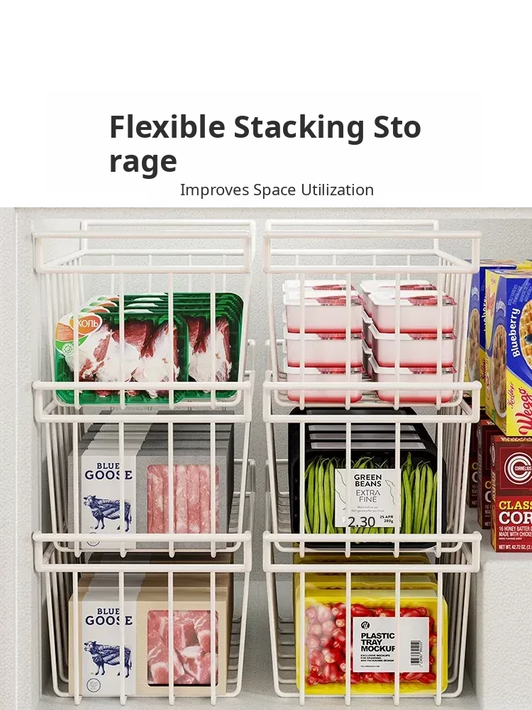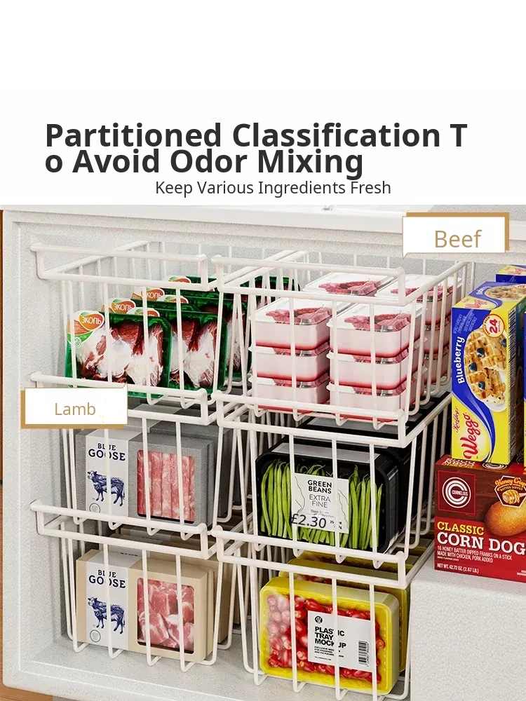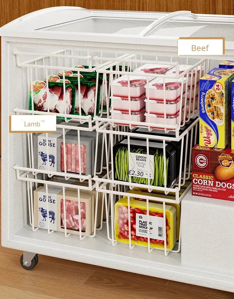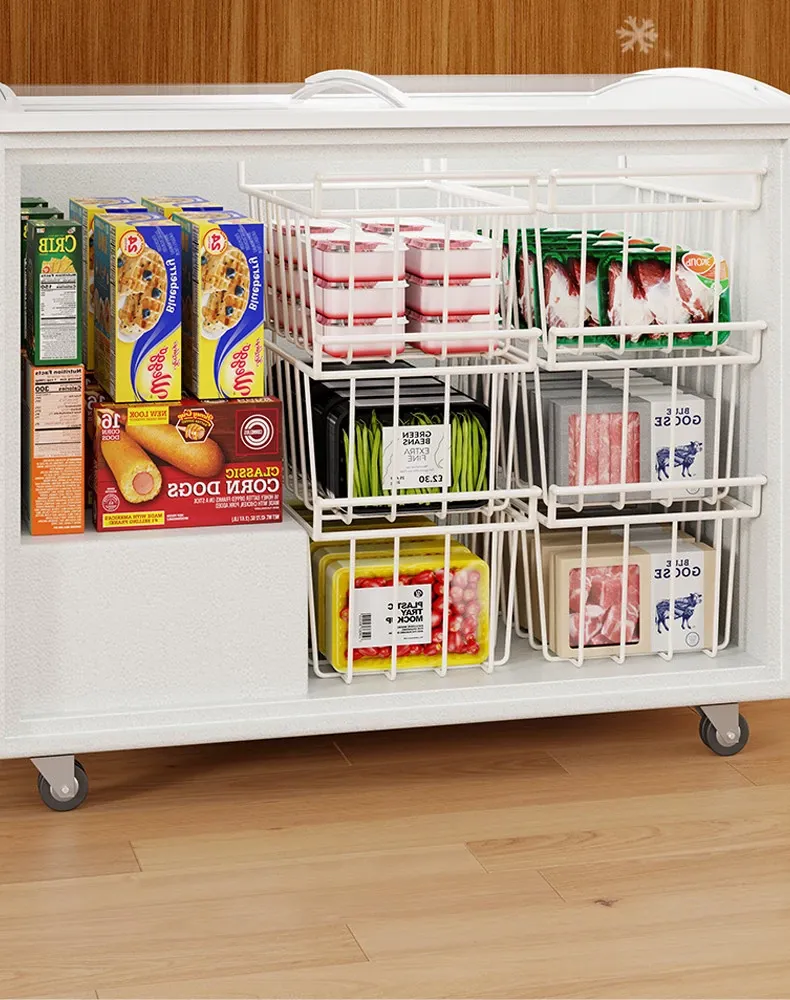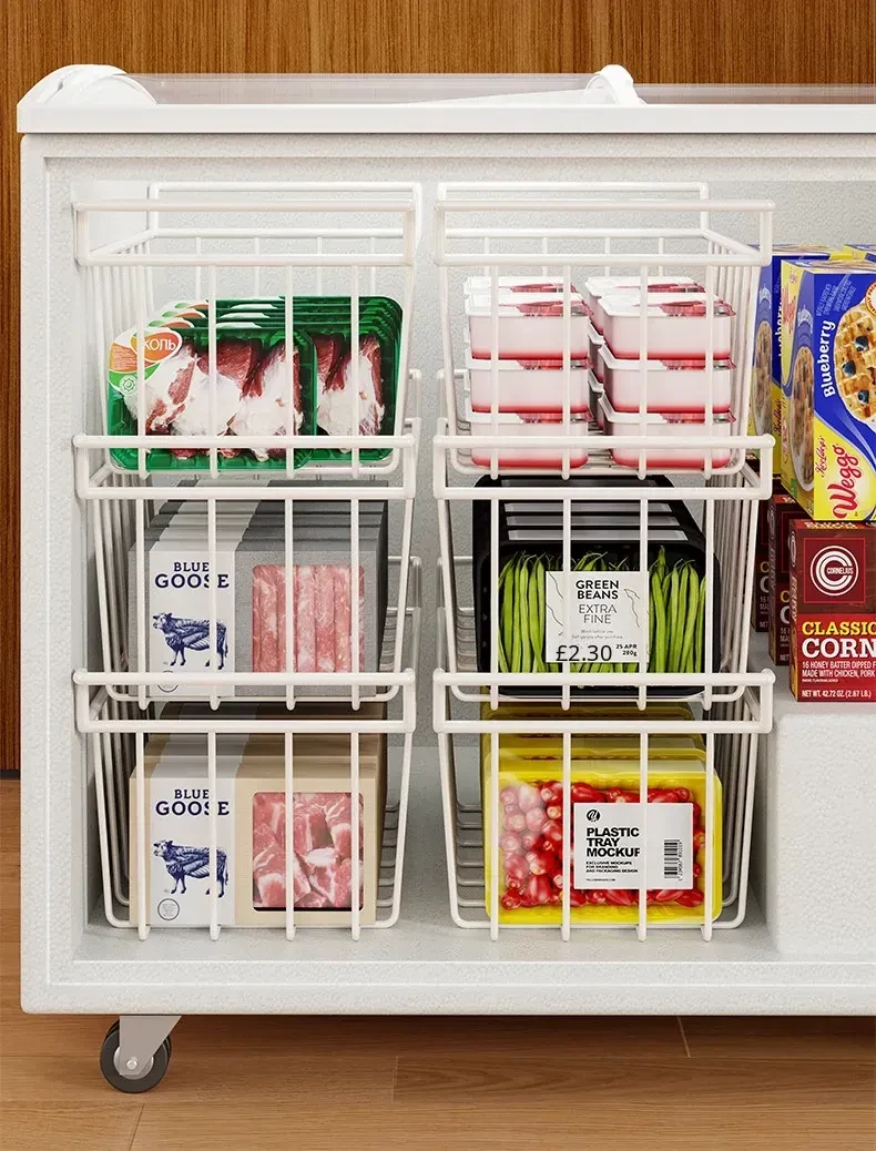 Multi-Layer Storage Basket for Freezer – Organize Your Food with Ease! Ideal for Home Use, This Versatile Ice Cream Rack Features Dividers to Keep Your Freezer Neat and Tidy. Perfect for Storing Snacks, Frozen Foods, and More!