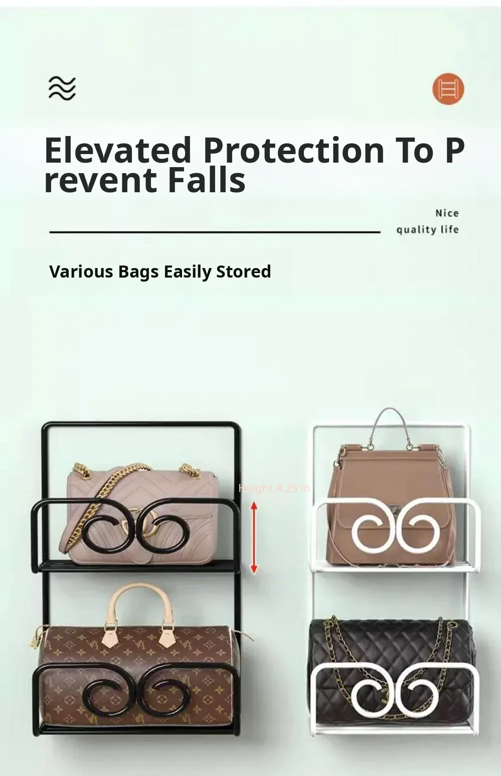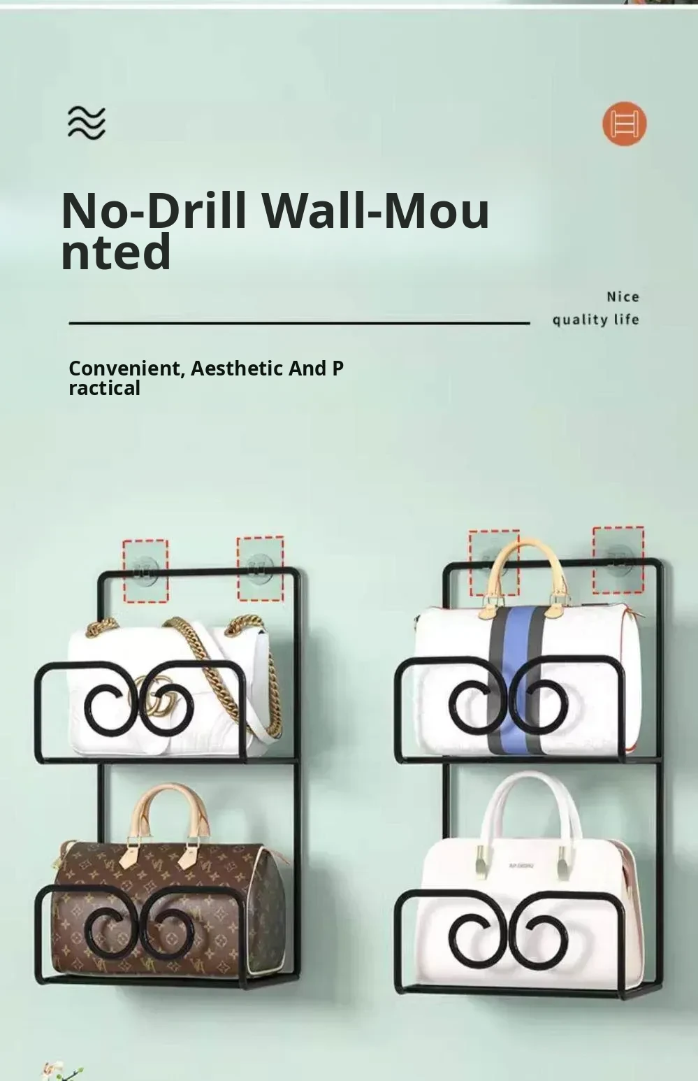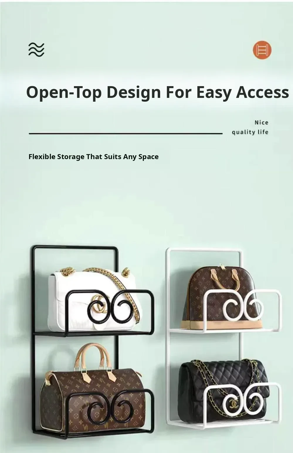 Multi-layer Wall-mounted Bag Storage Rack - Creative Closet Organizer for Efficient Handbag Storage, Perfect for Doorway Use!