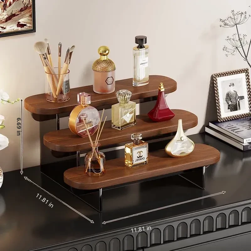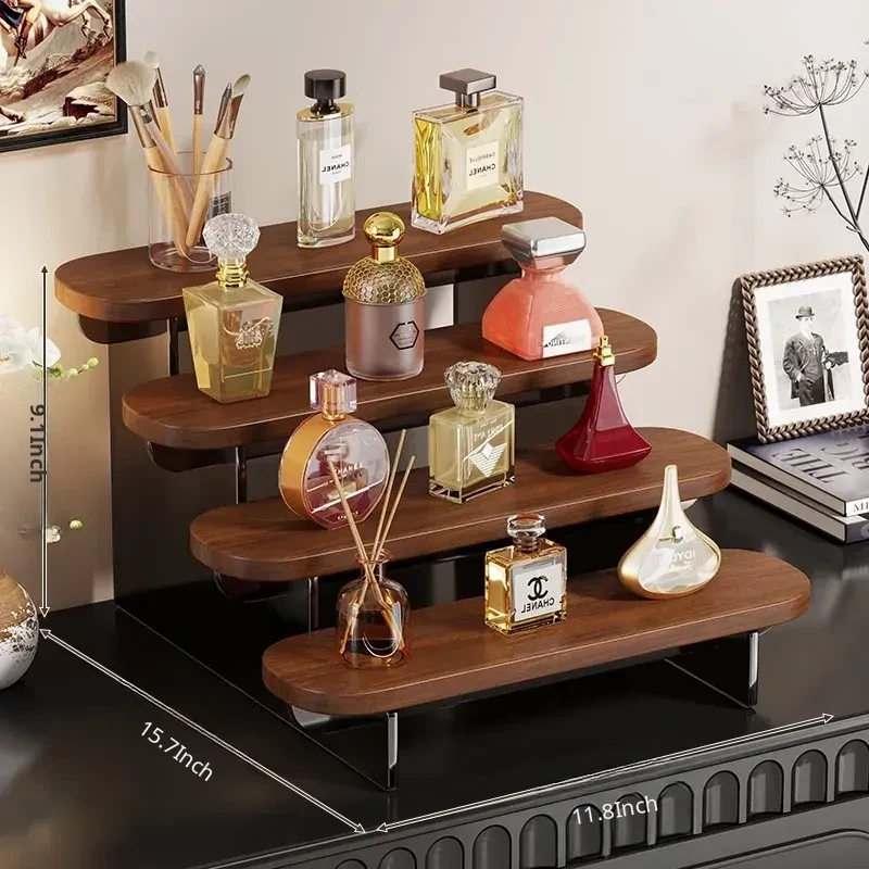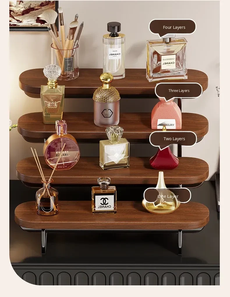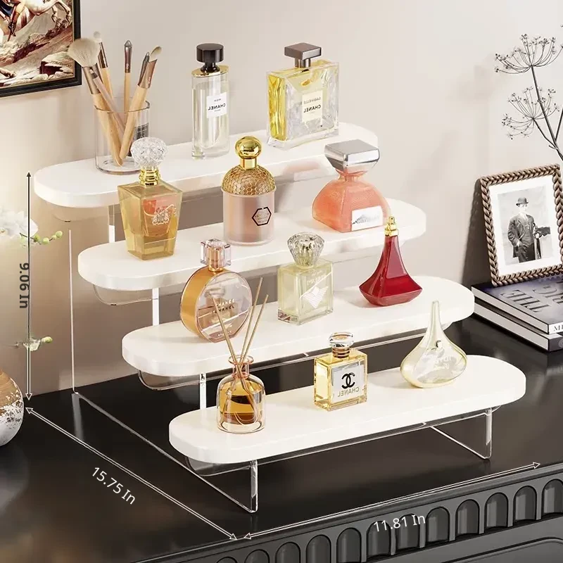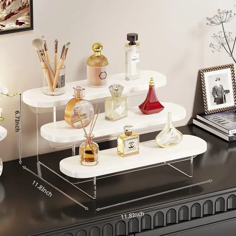 Multi-Tiered Desktop Makeup Organizer - Stylish Display Rack for Perfumes, Lipsticks, and Skincare Products - Perfect for Your Vanity!