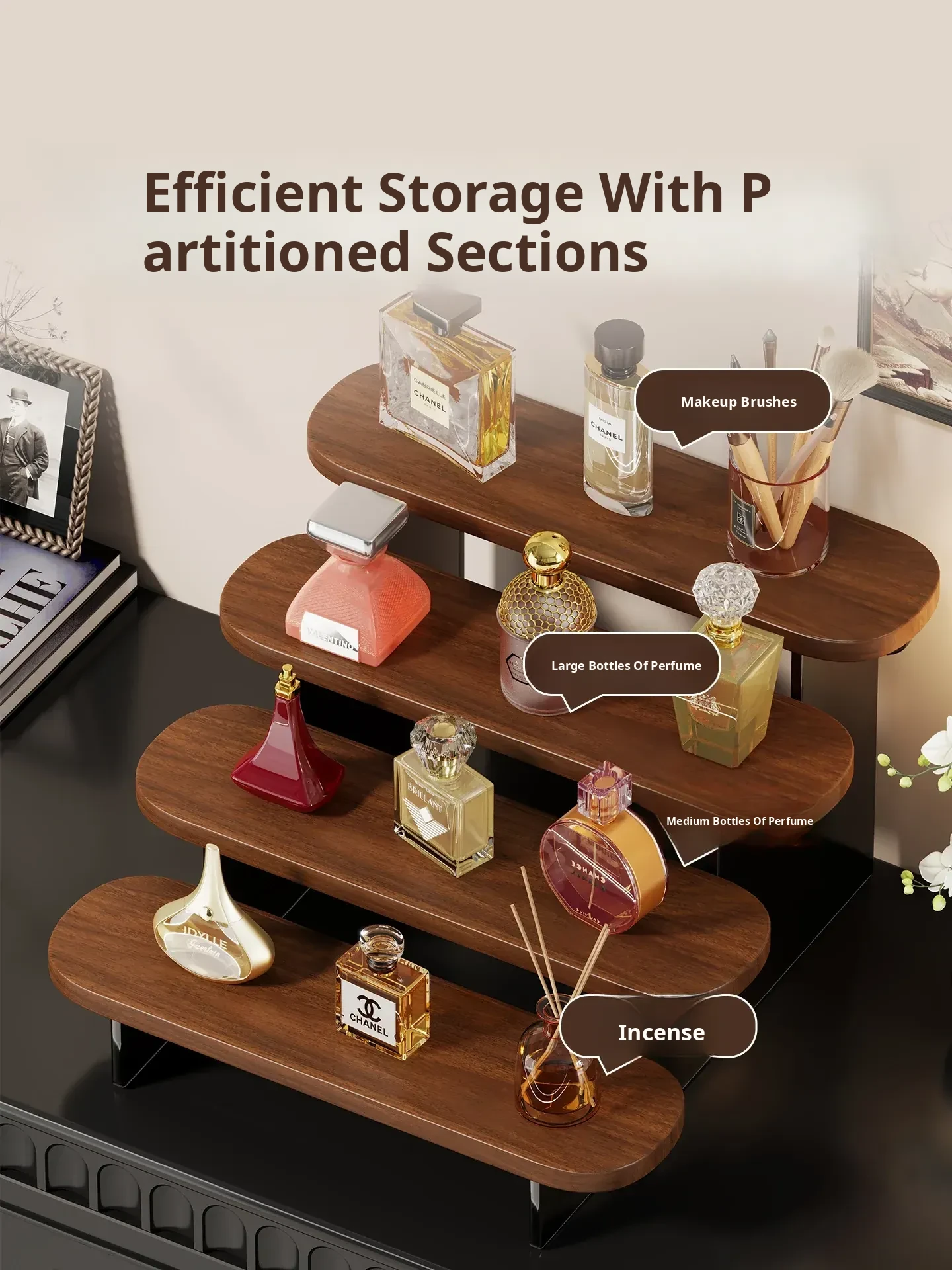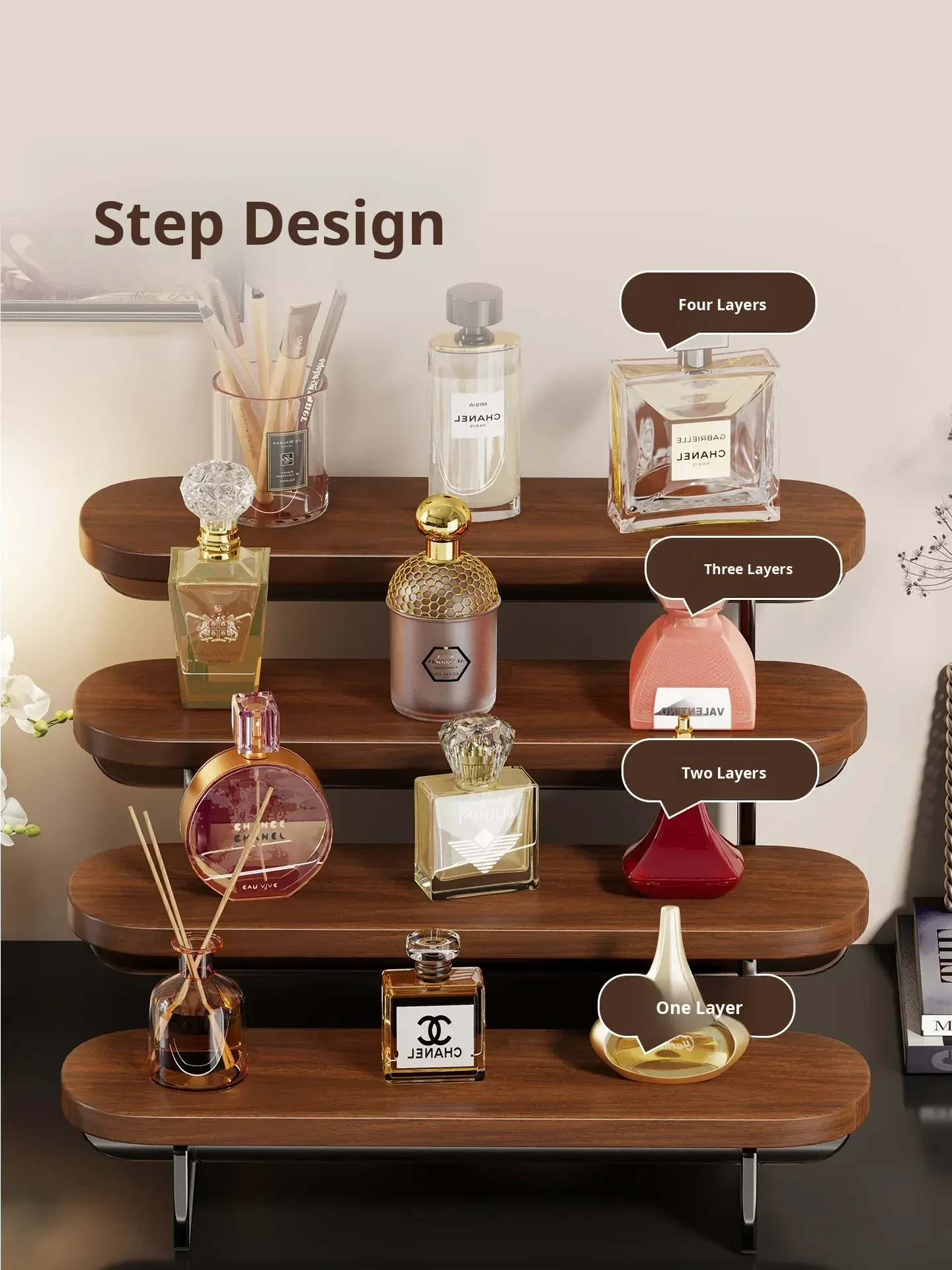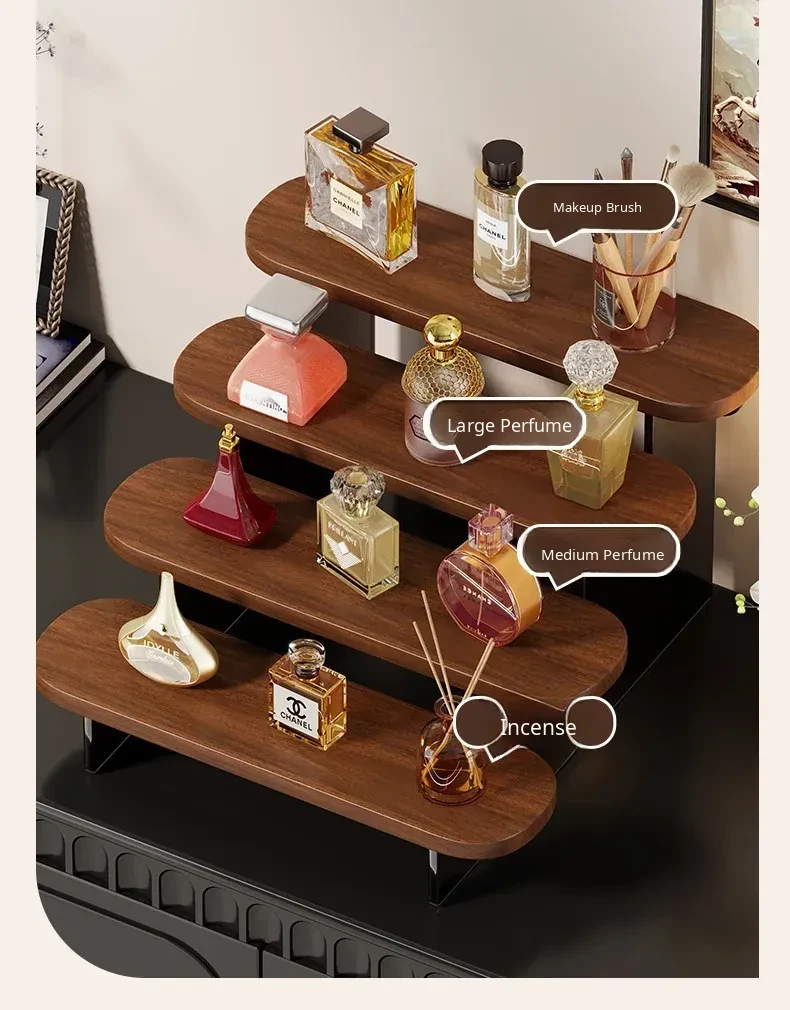 Multi-Tiered Desktop Makeup Organizer - Stylish Display Rack for Perfumes, Lipsticks, and Skincare Products - Perfect for Your Vanity!