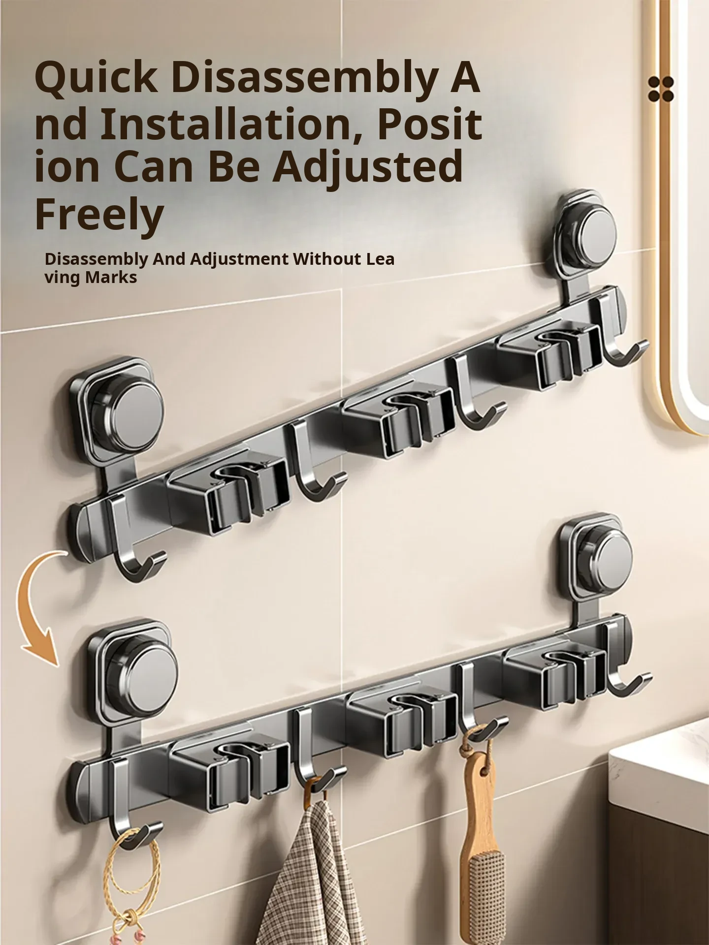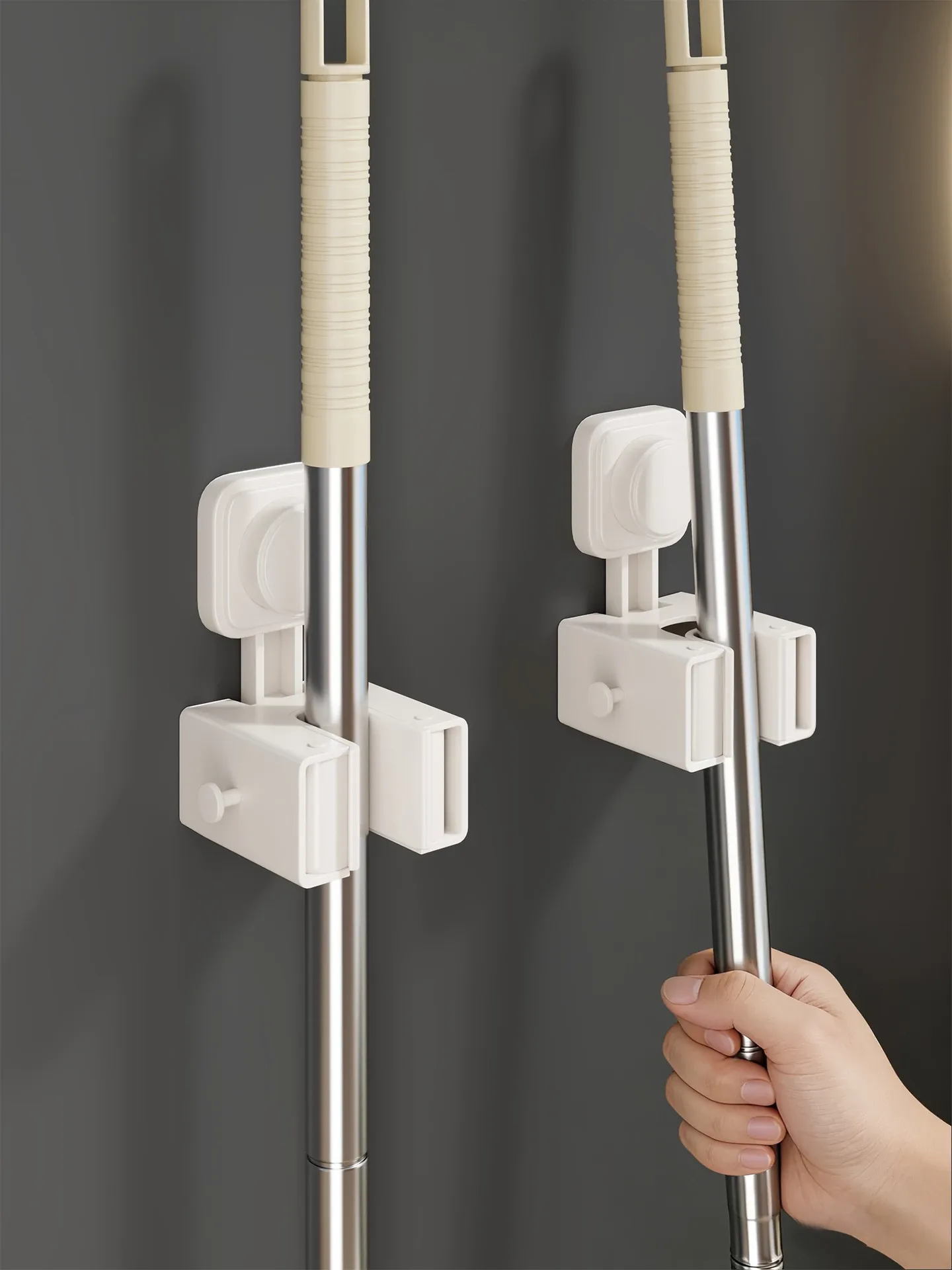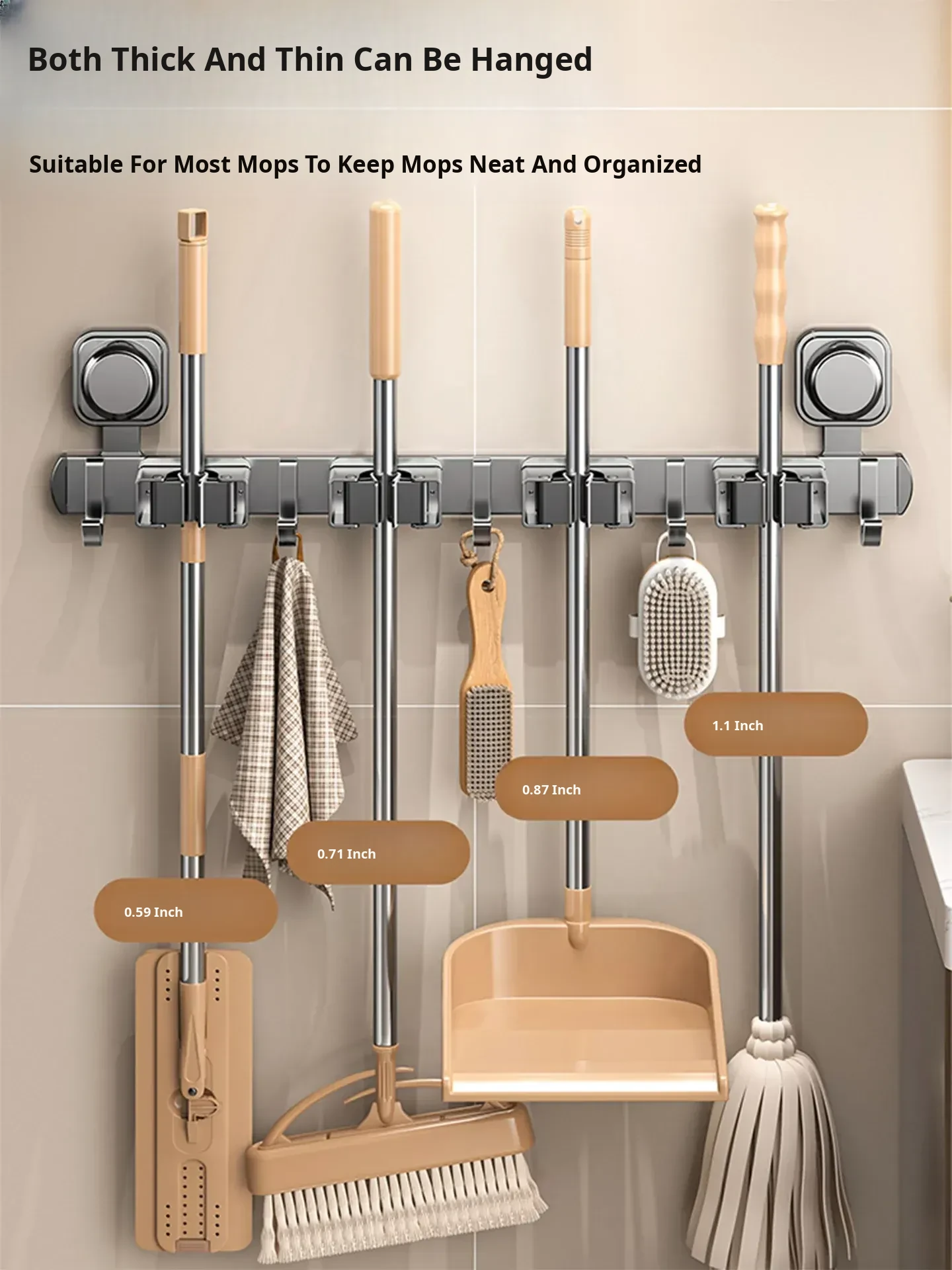 No-Drill Mop Wall-Mount Holder - Strong Adhesive Storage Rack for Bathroom - Perfect for Broom and Mop Organization, Keep Your Space Tidy and Efficient!