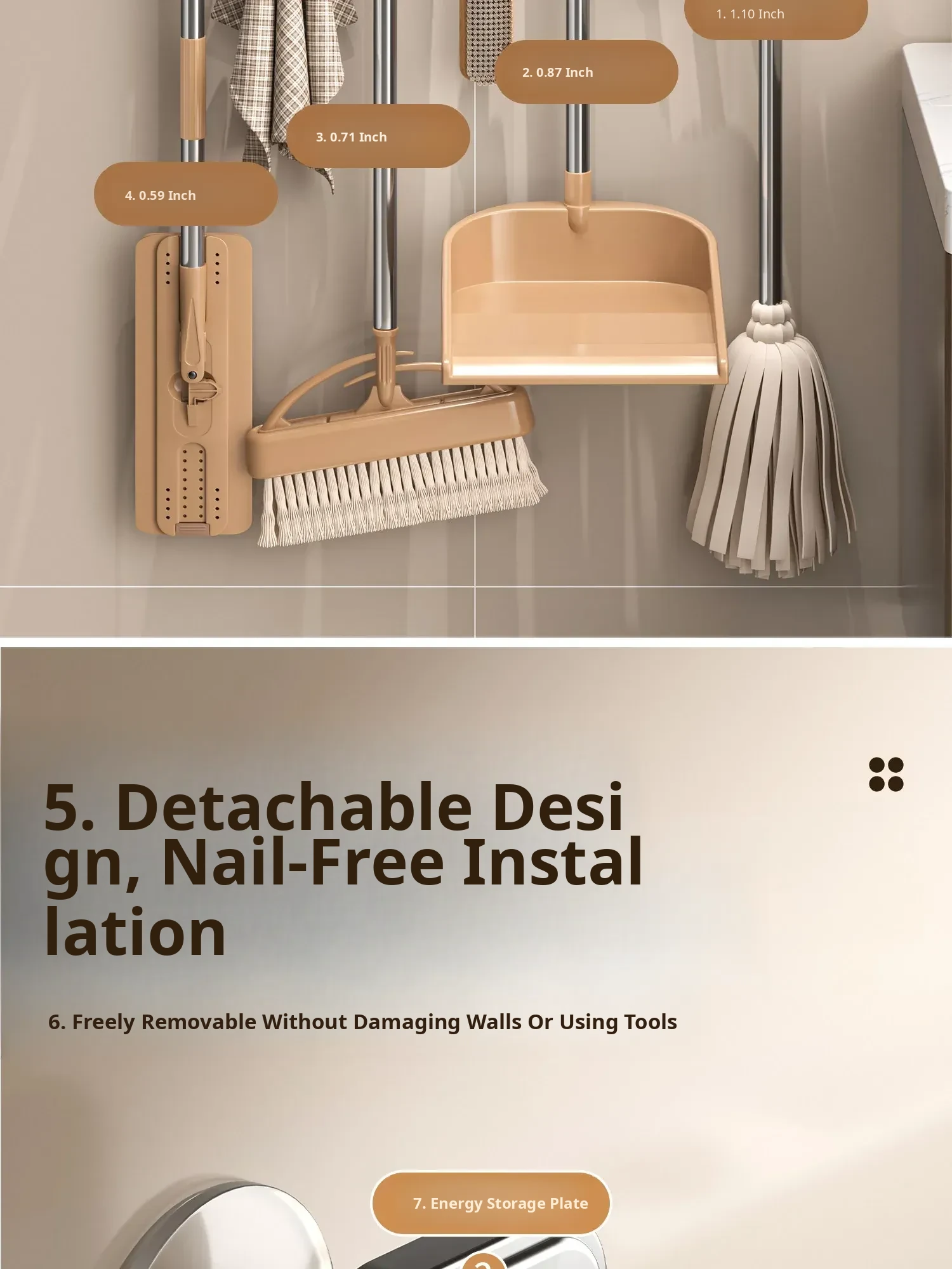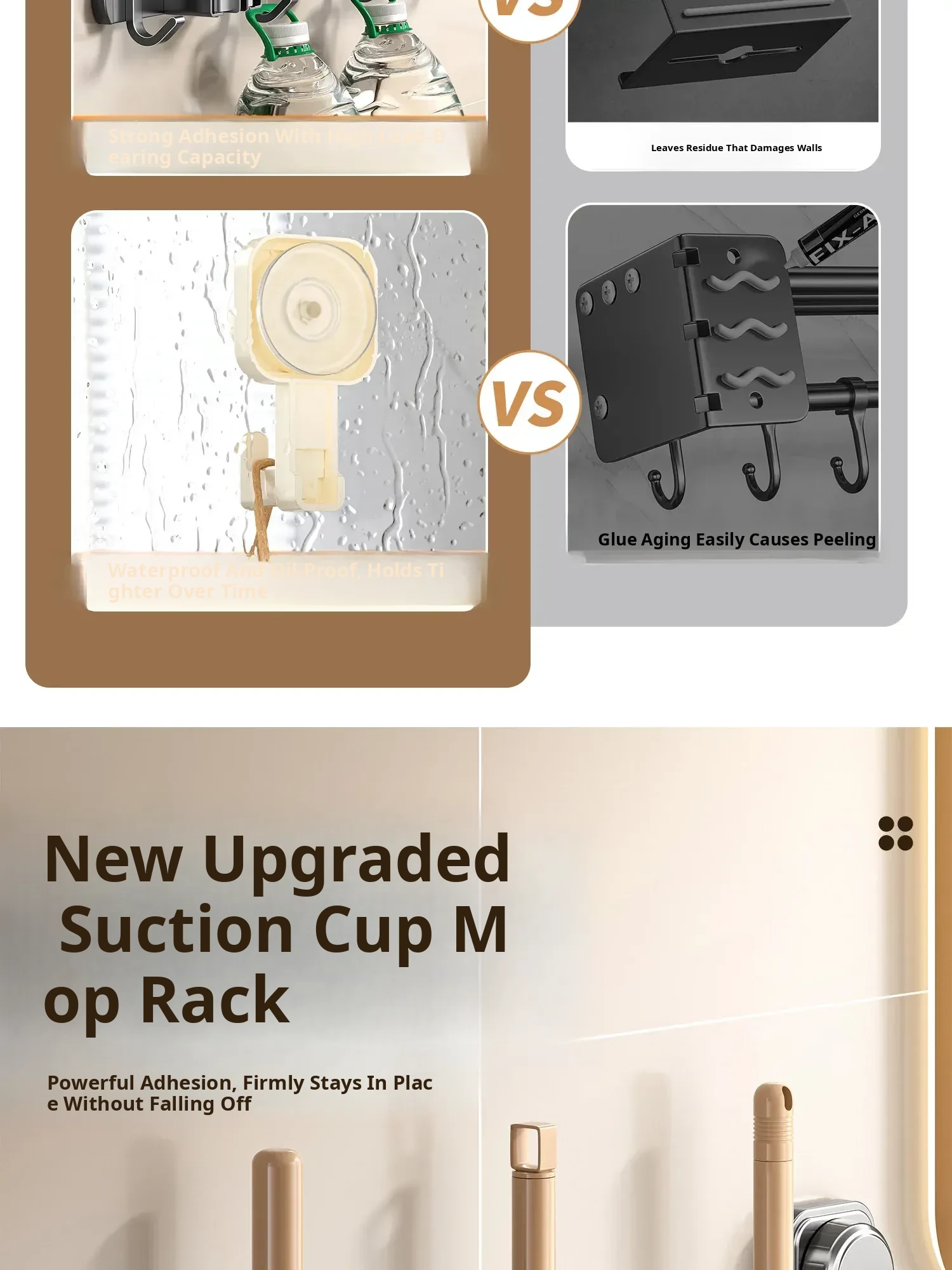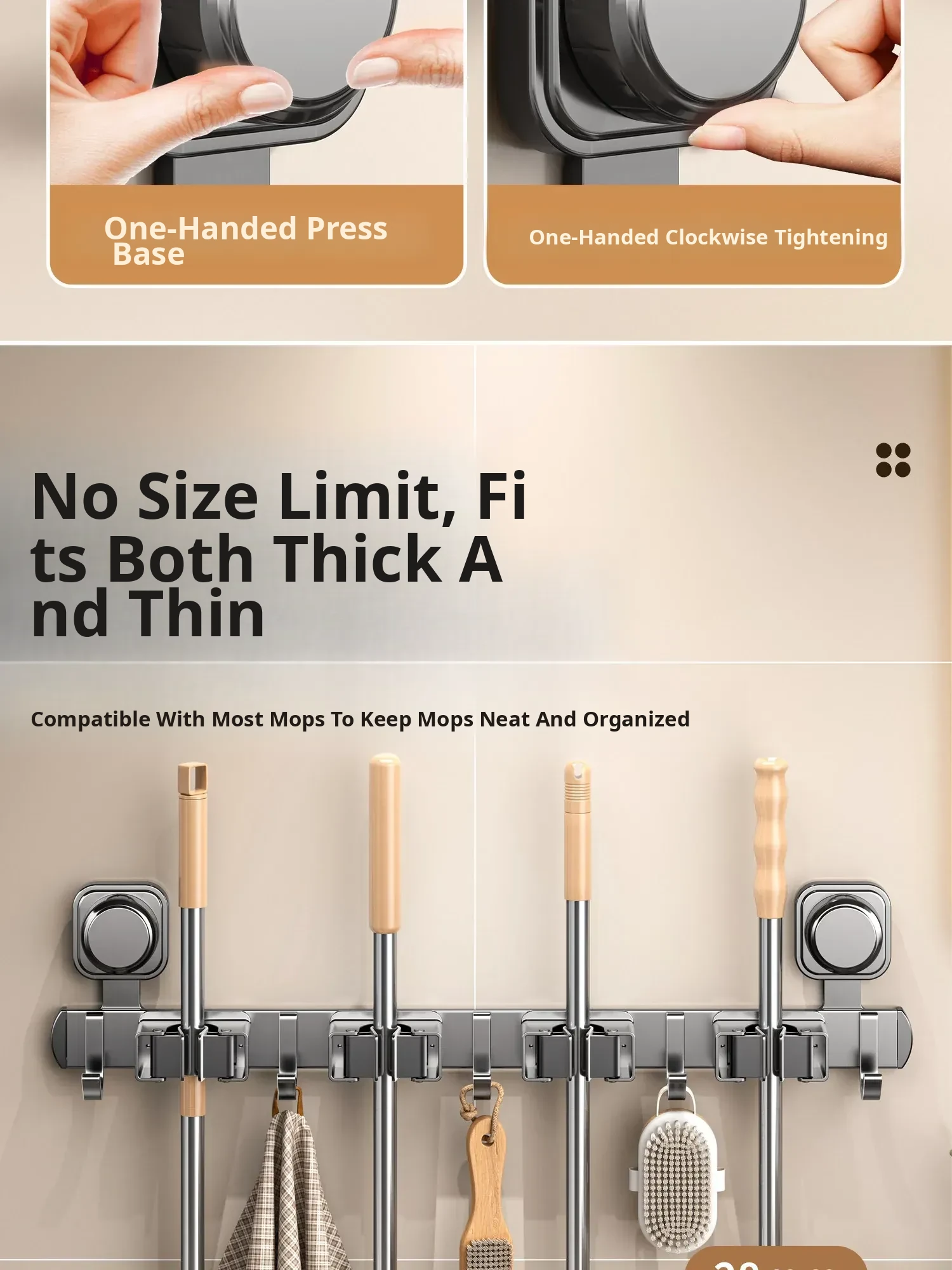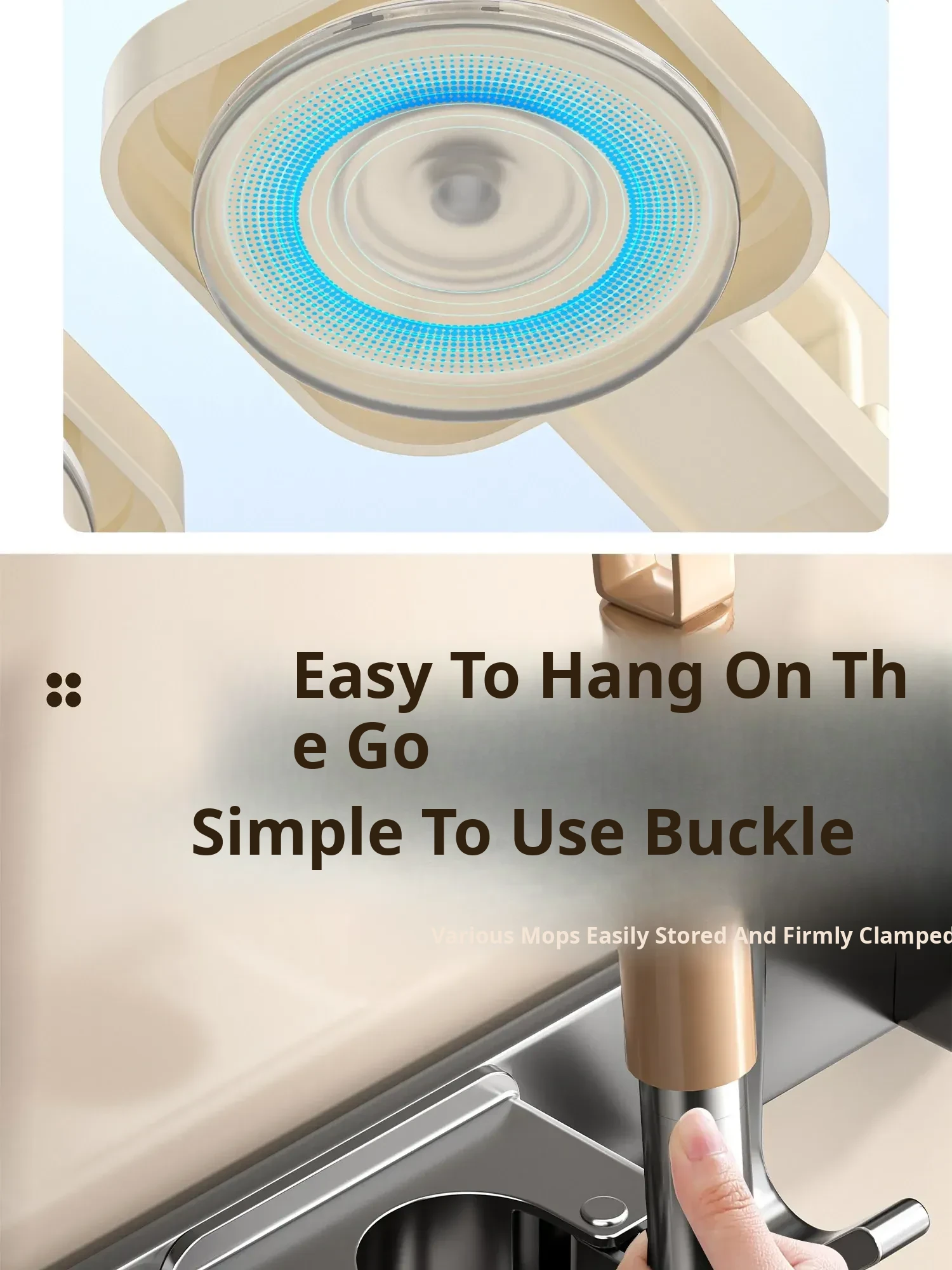 No-Drill Mop Wall-Mount Holder - Strong Adhesive Storage Rack for Bathroom - Perfect for Broom and Mop Organization, Keep Your Space Tidy and Efficient!