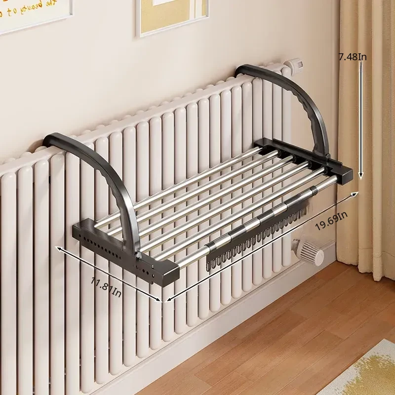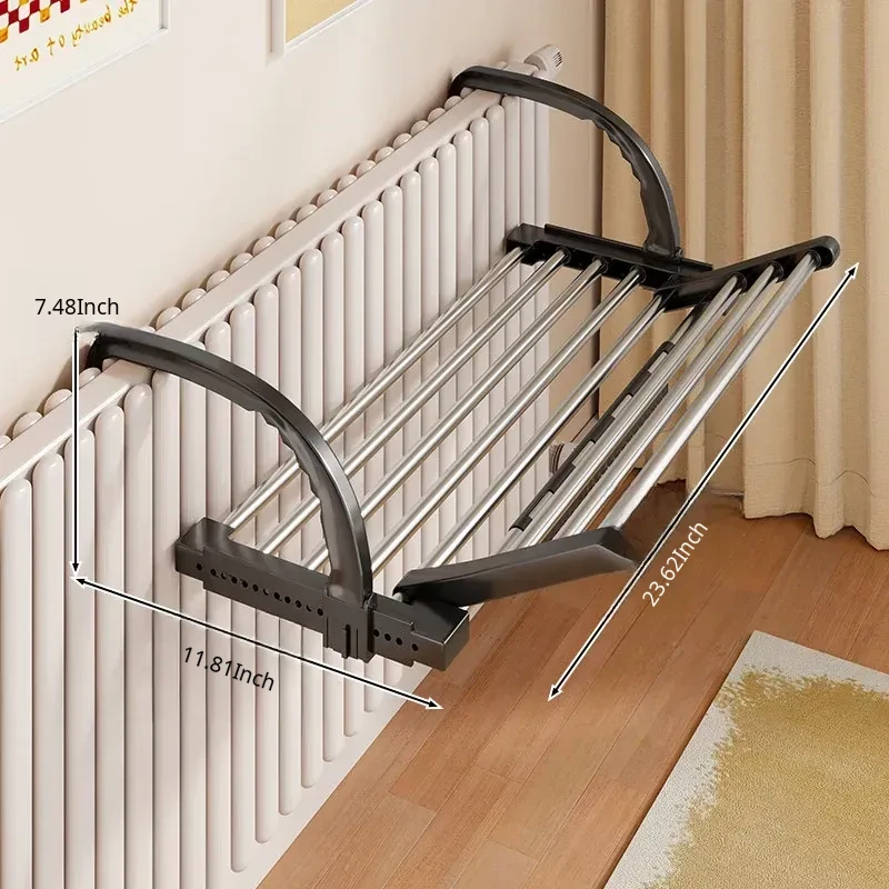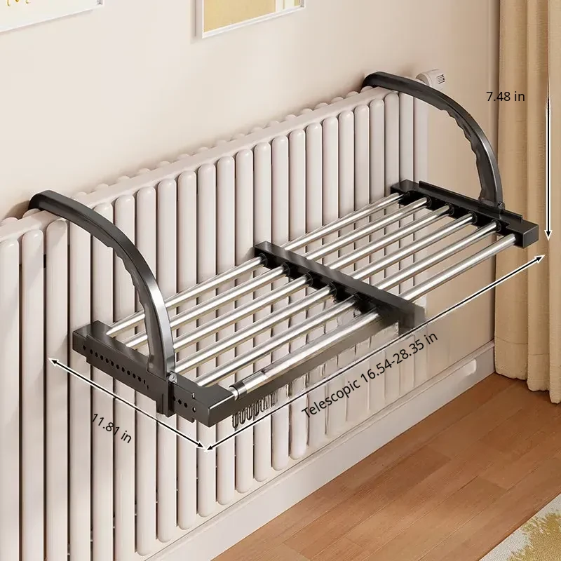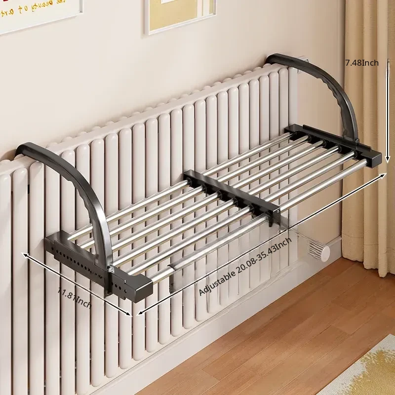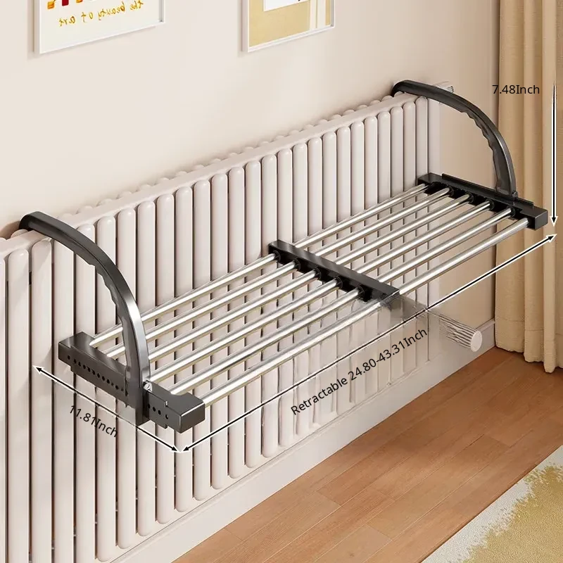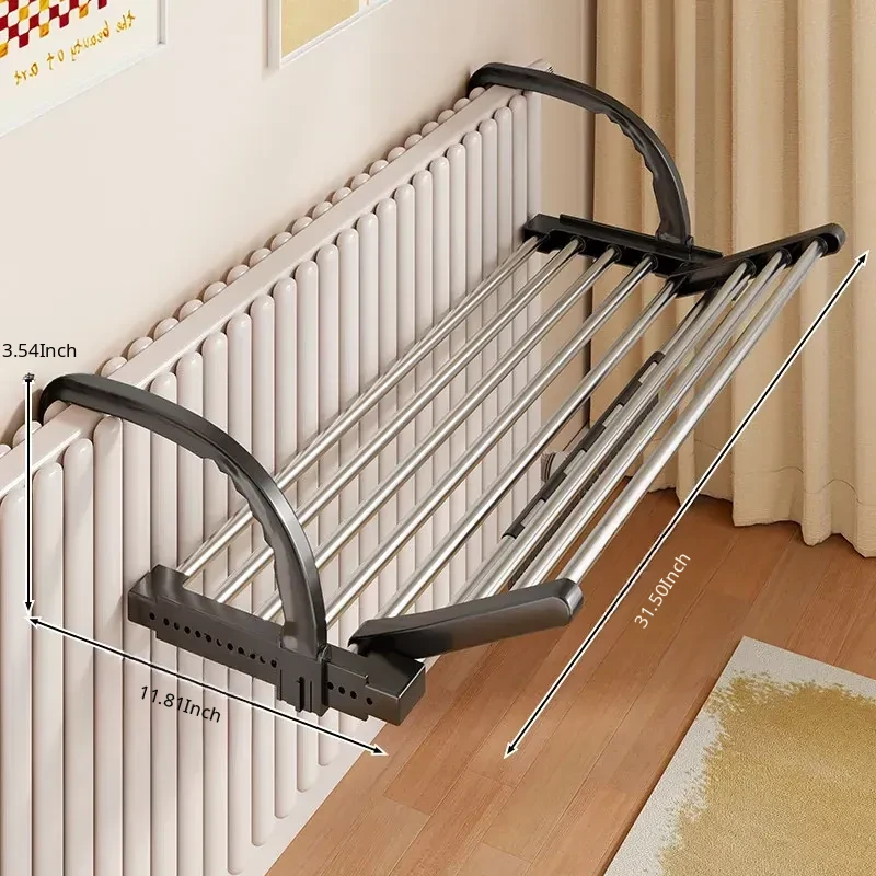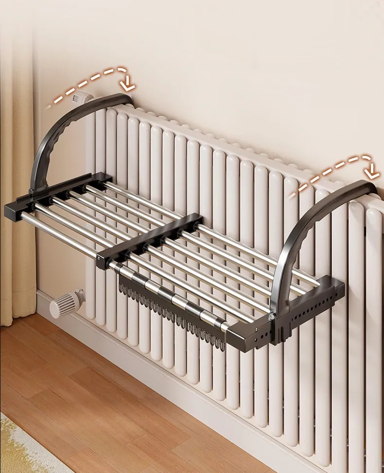 Retractable Clothes Drying Rack for Radiators - Versatile Balcony Guardrail Shoe Drying Solution, Space-Saving Foldable Storage Rack for Home Use