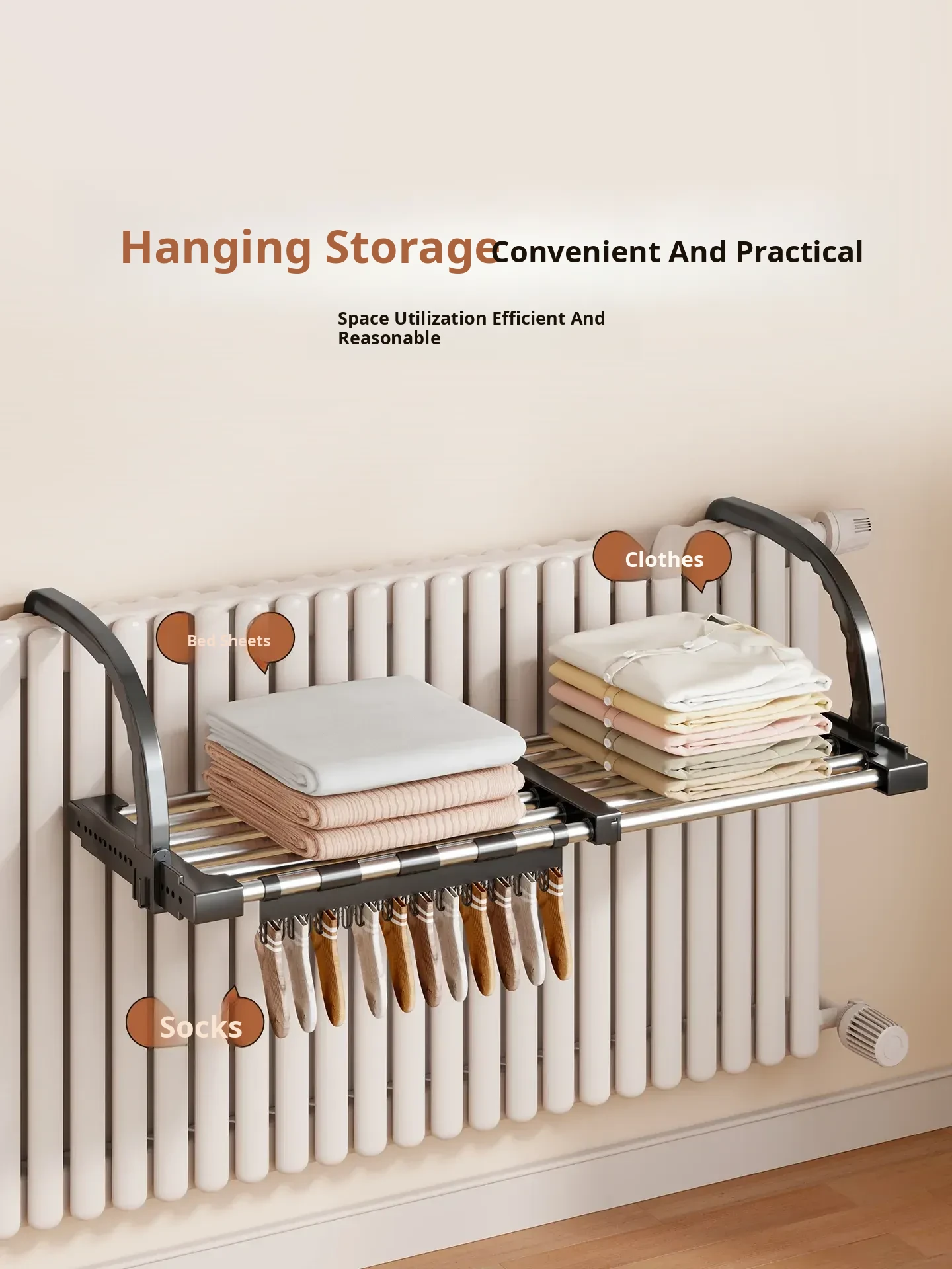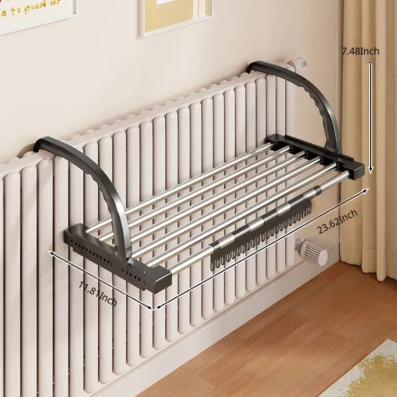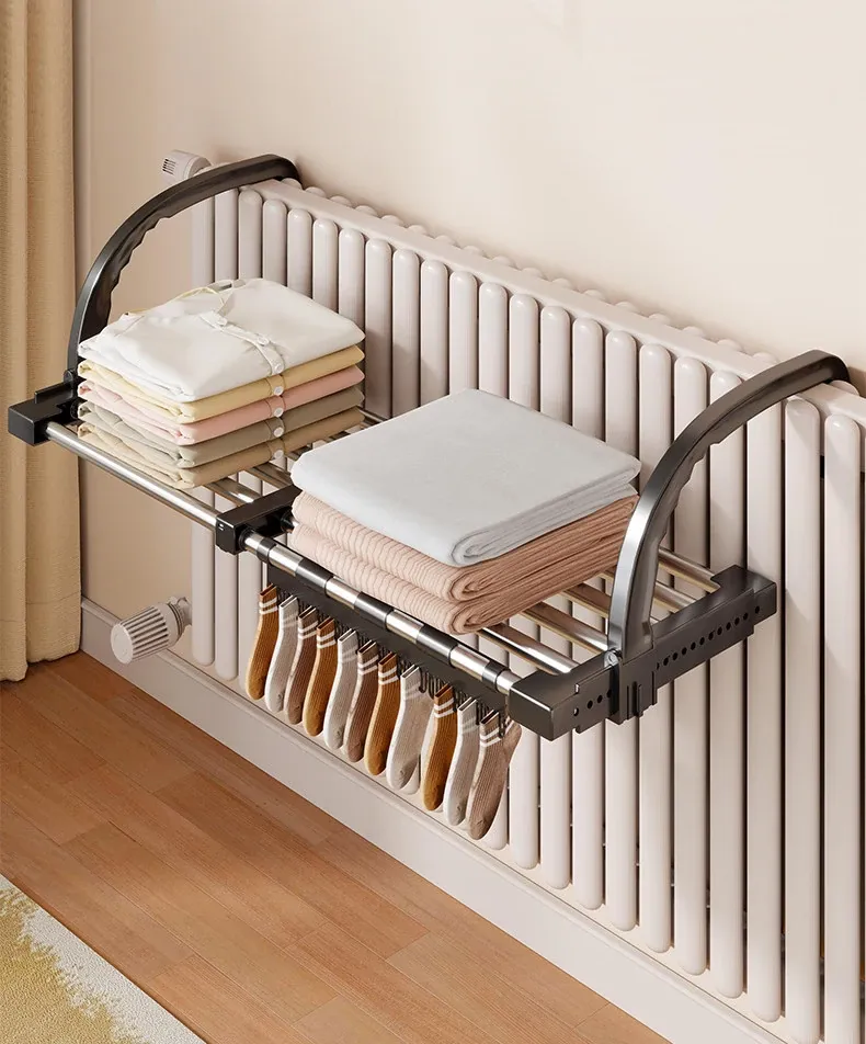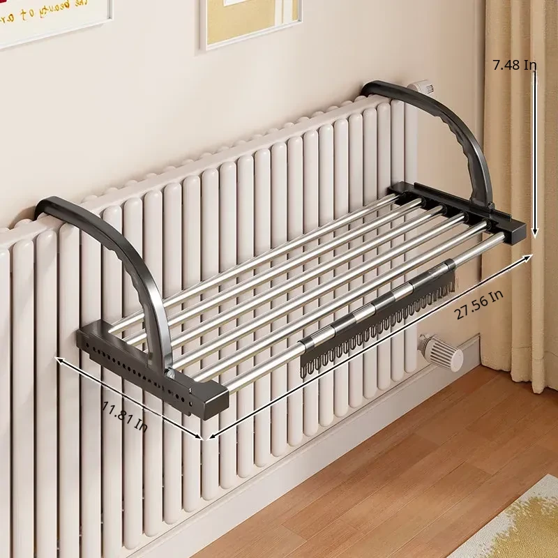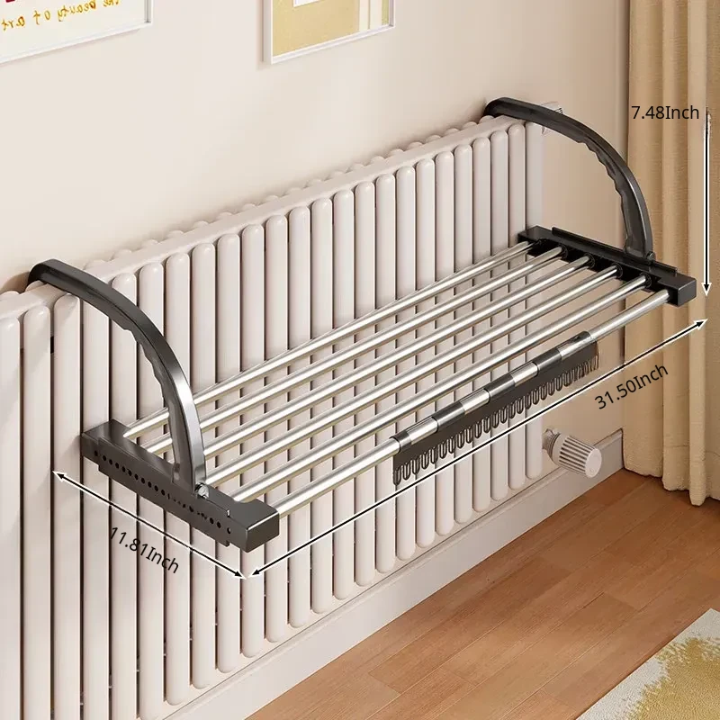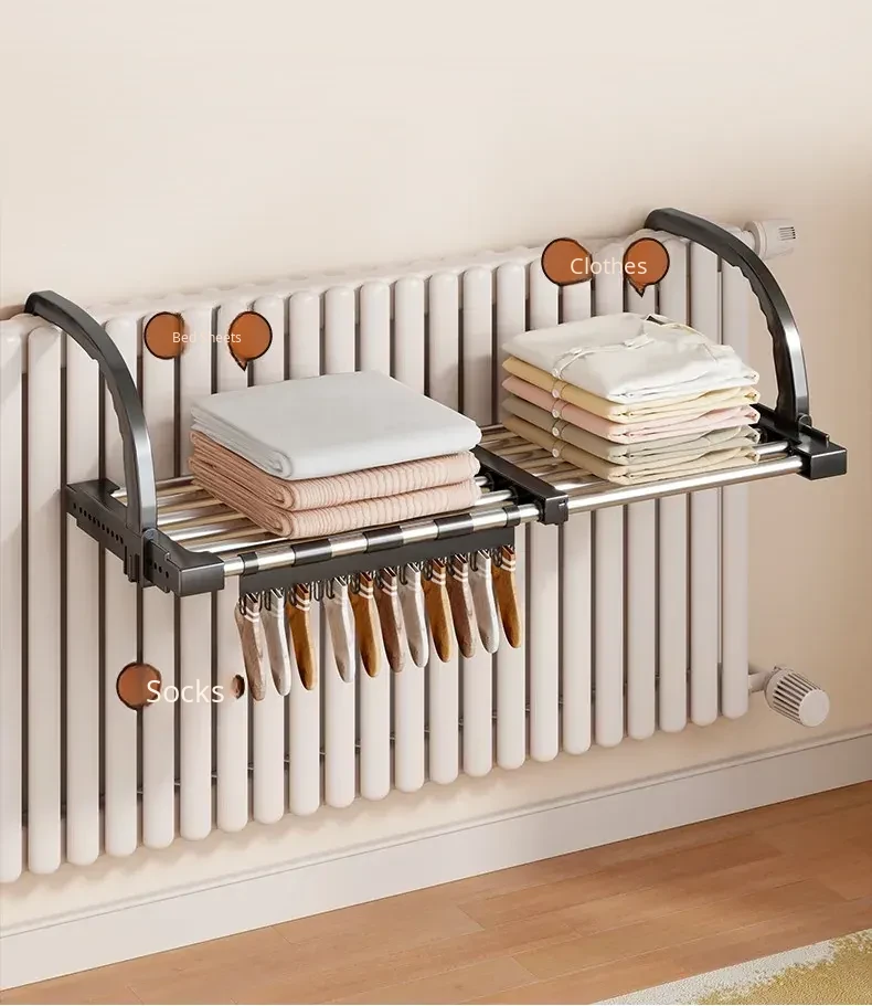 Retractable Clothes Drying Rack for Radiators - Versatile Balcony Guardrail Shoe Drying Solution, Space-Saving Foldable Storage Rack for Home Use