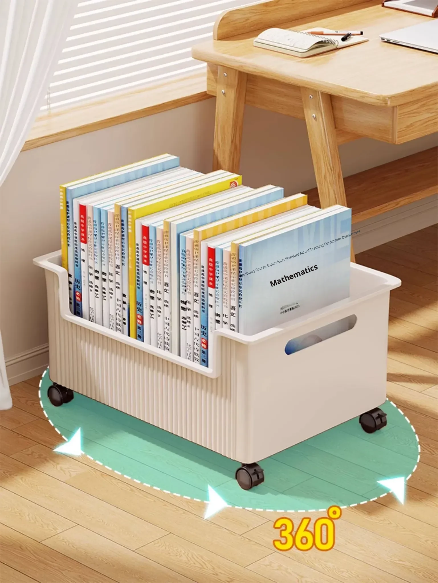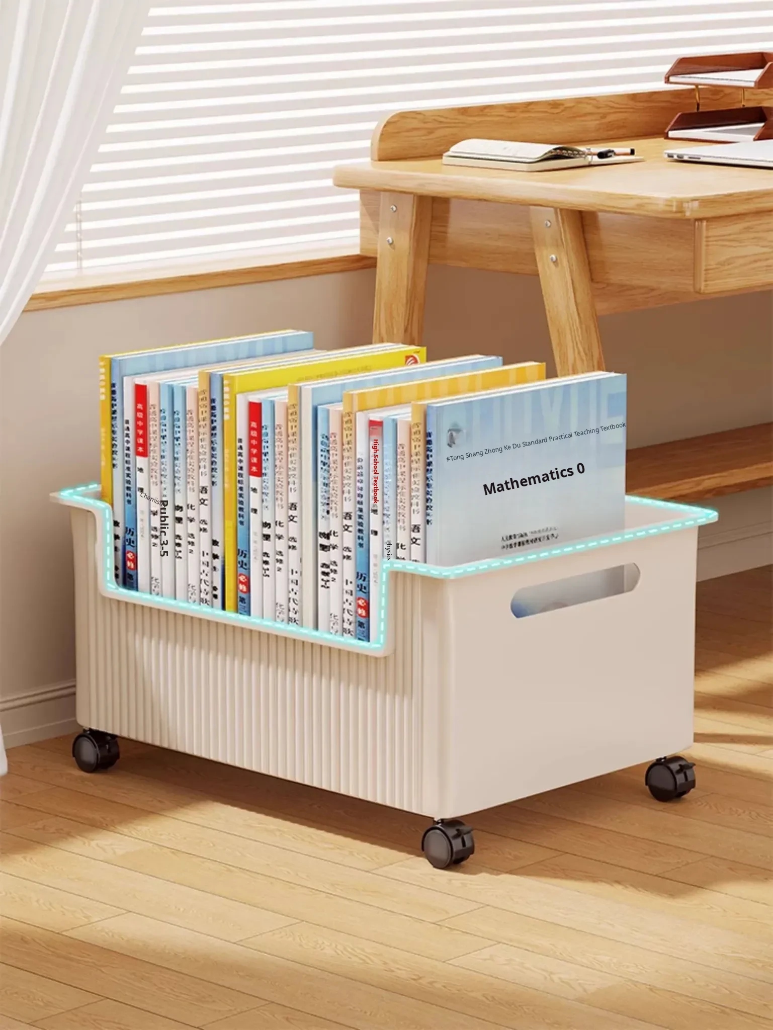 Rolling Storage Cart for Books - Under-Desk Organizer Box for Students, Classroom & Dormitory - Mobile Book Storage Solution with Wheels