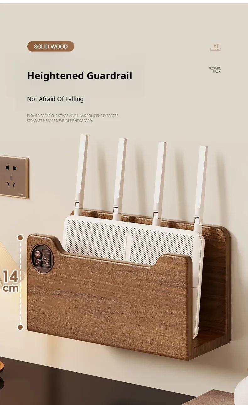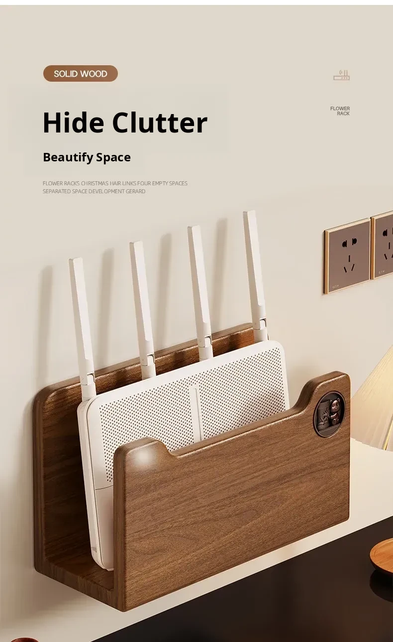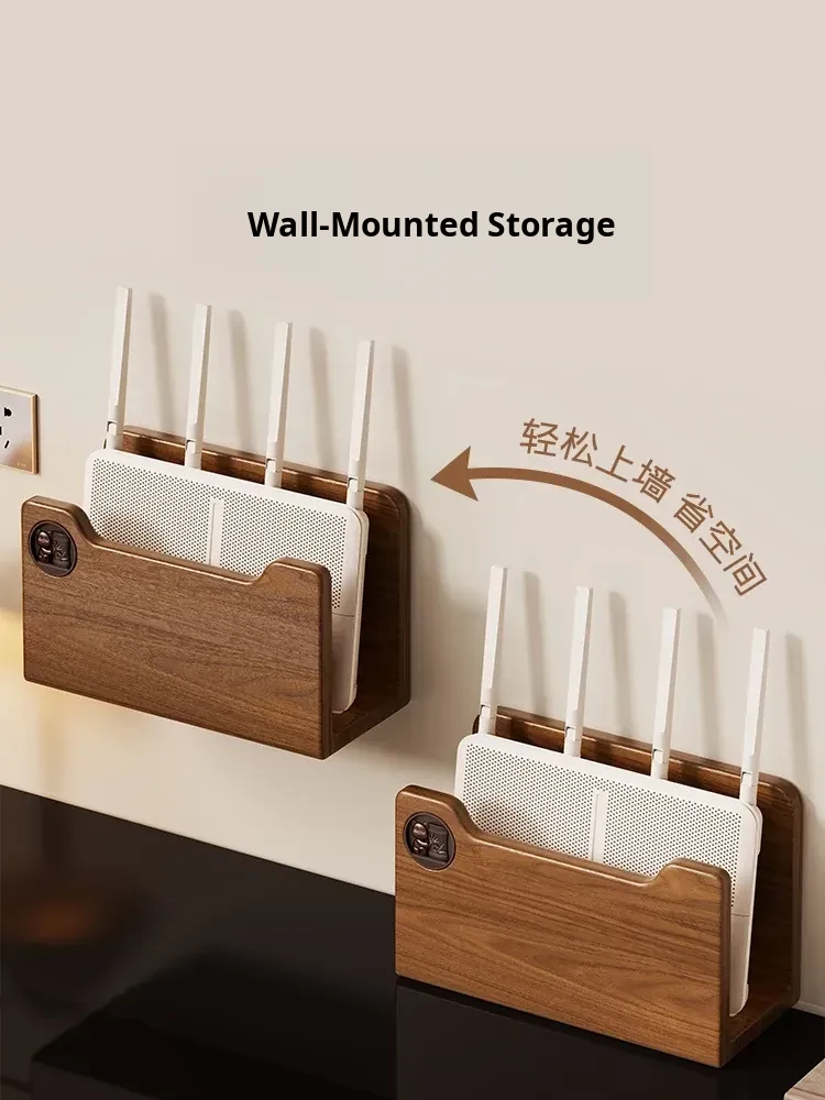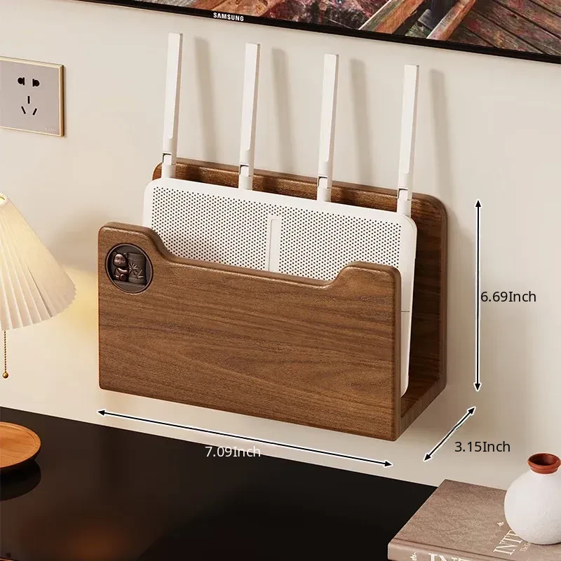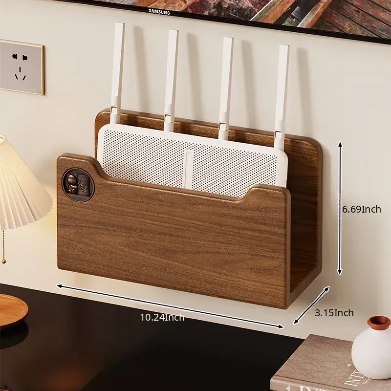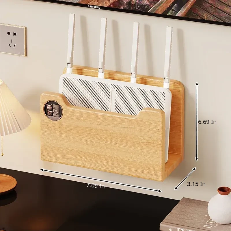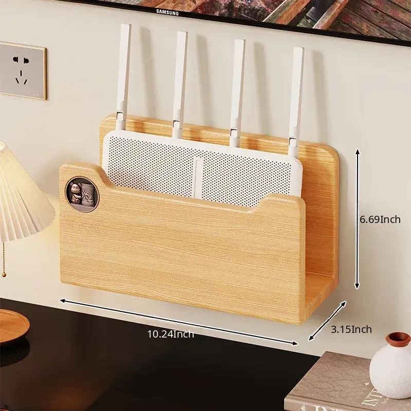 Solid Wood Router Shelf with Holes - Stylish WiFi Storage Rack for Home, Wall-Mounted Cable Management, and Set-Top Box Stand, Perfect for Organizing Your Space!
