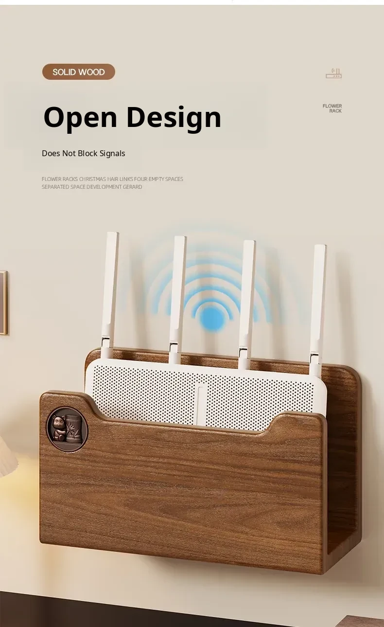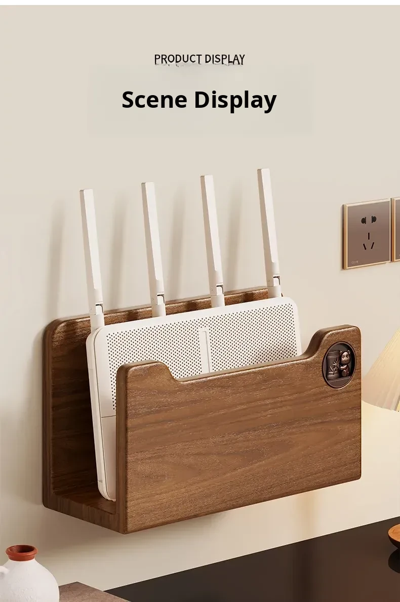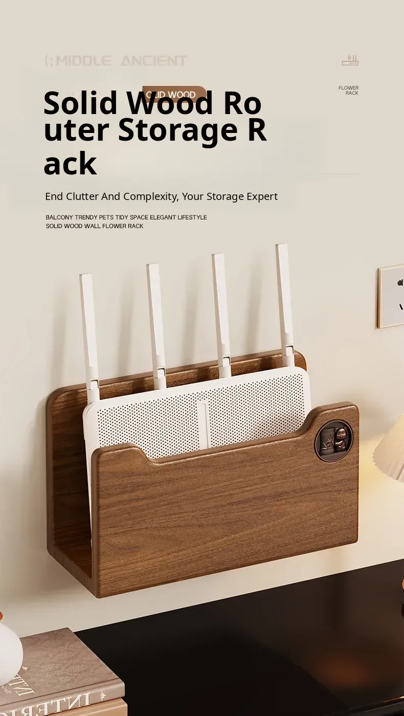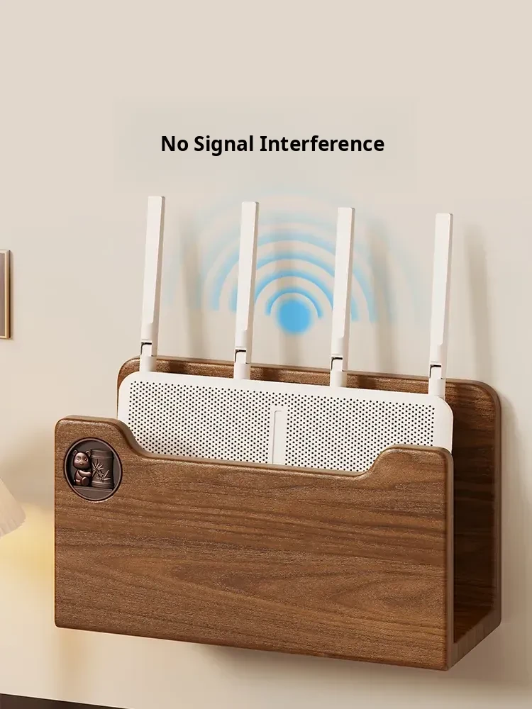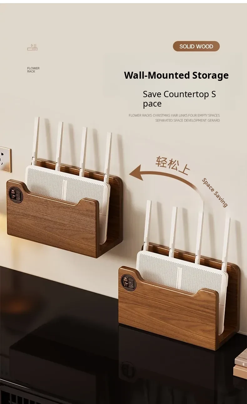 Solid Wood Router Shelf with Holes - Stylish WiFi Storage Rack for Home, Wall-Mounted Cable Management, and Set-Top Box Stand, Perfect for Organizing Your Space!