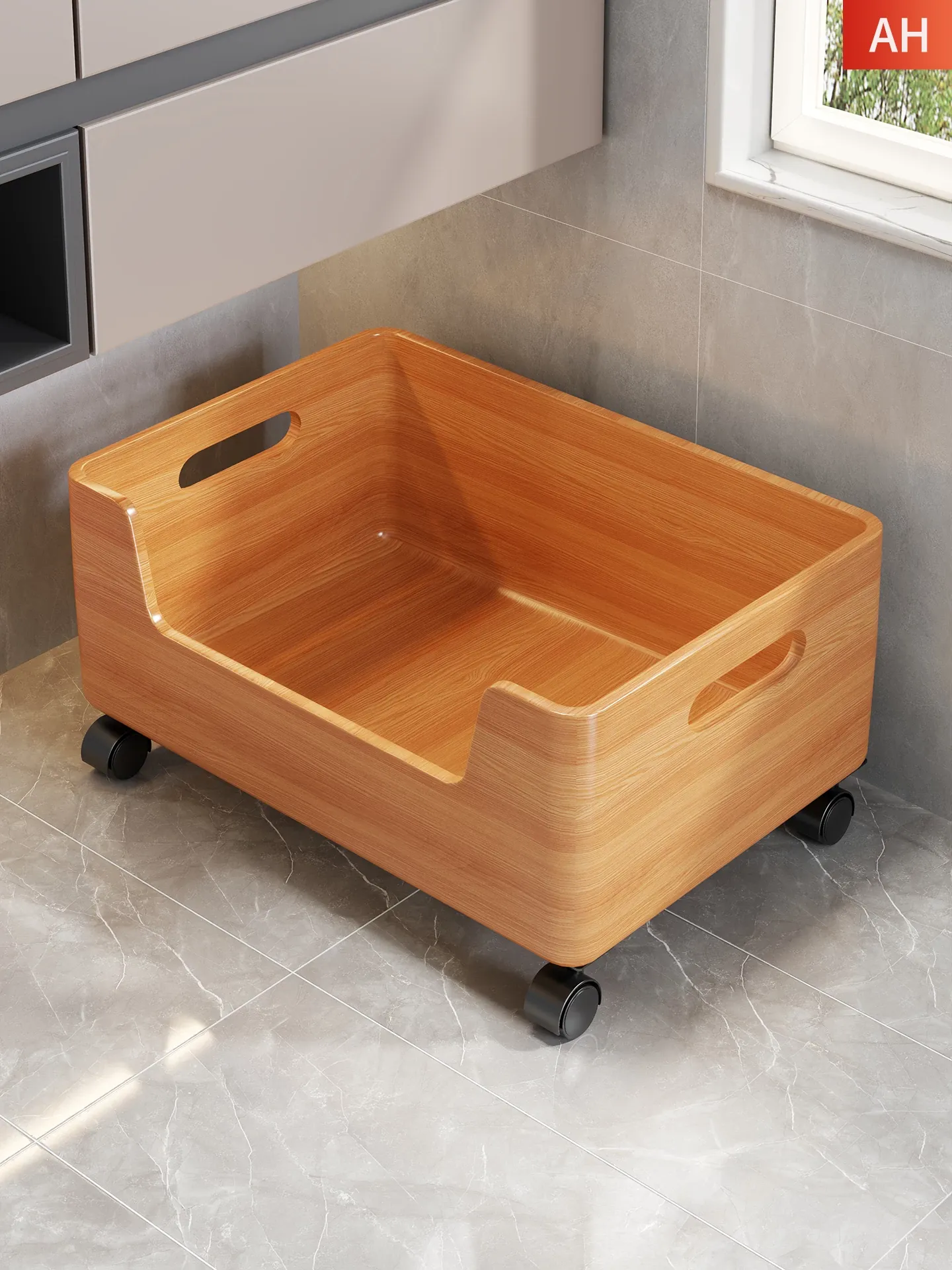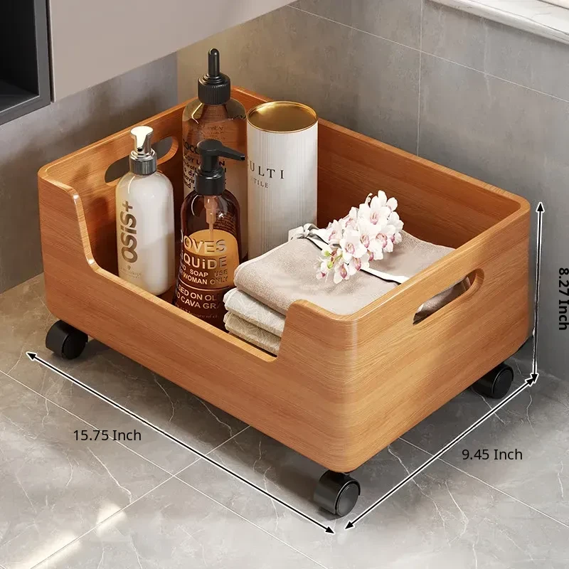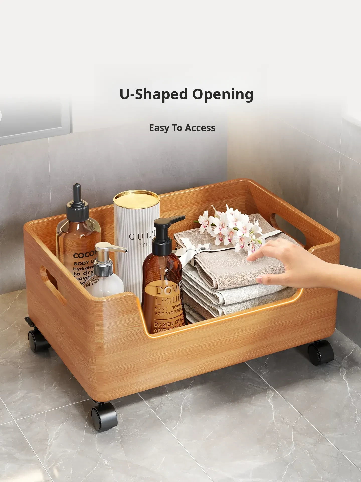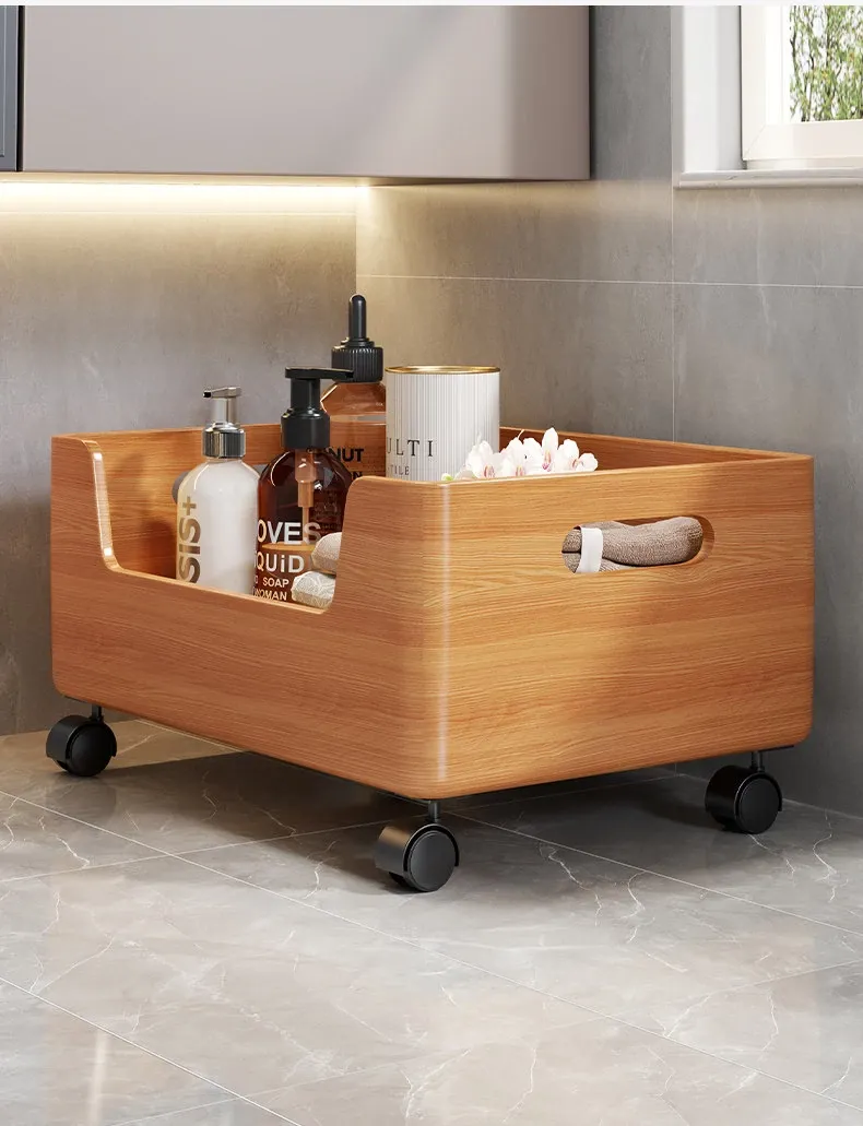 Stylish Solid Wood Bathroom Vanity Storage Shelf - Multi-Functional Under-Sink Organizer with Laundry Basket, Detergent Holder & Convenient Rolling Cart for Your Bathroom Needs