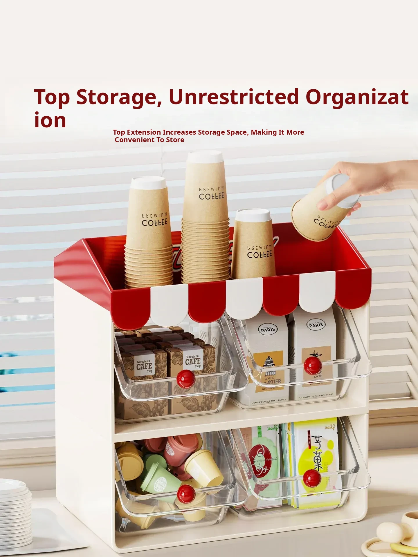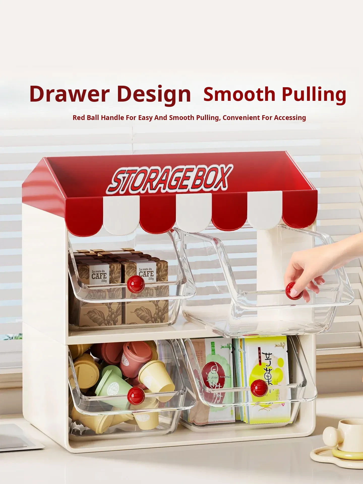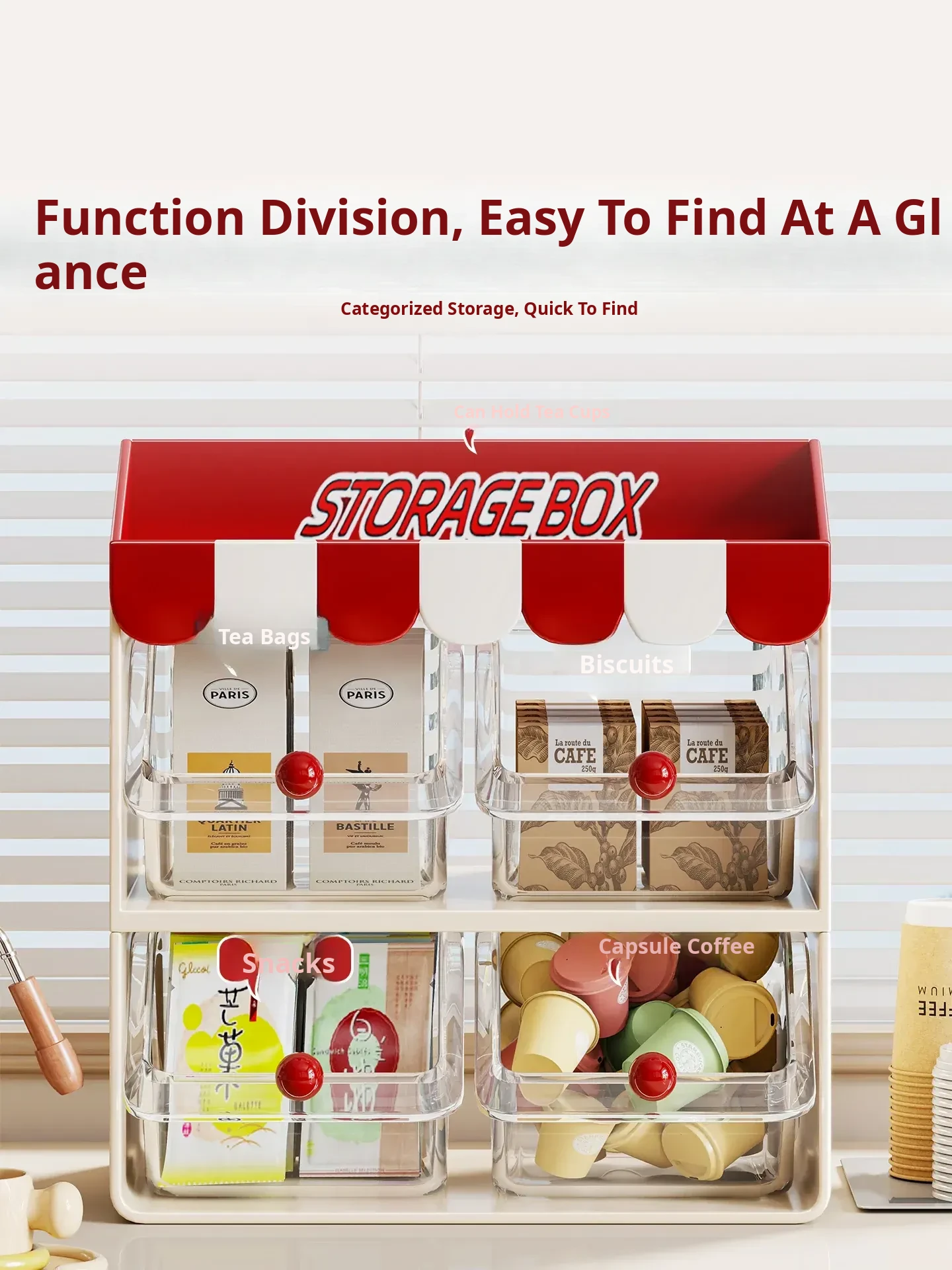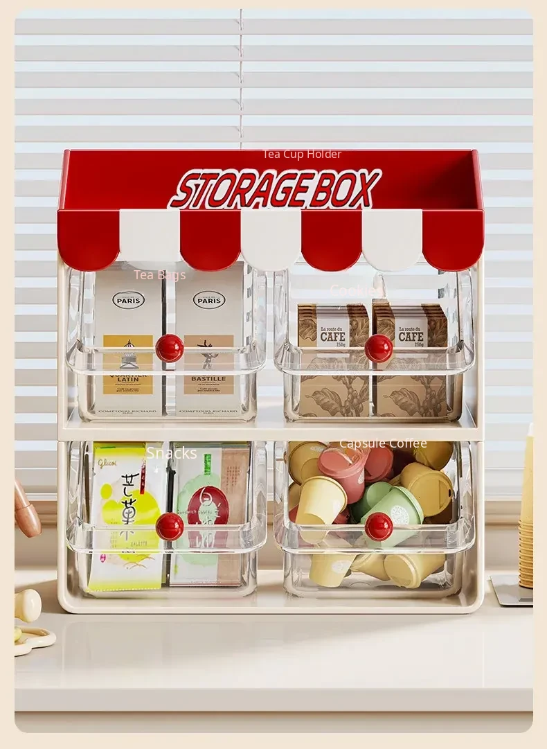 Stylish Tea Bag Storage Box - Desktop Organizer for Milk Tea, Coffee Capsules & Loose Leaves - Drawer Style Tea Holder for Office Break Room