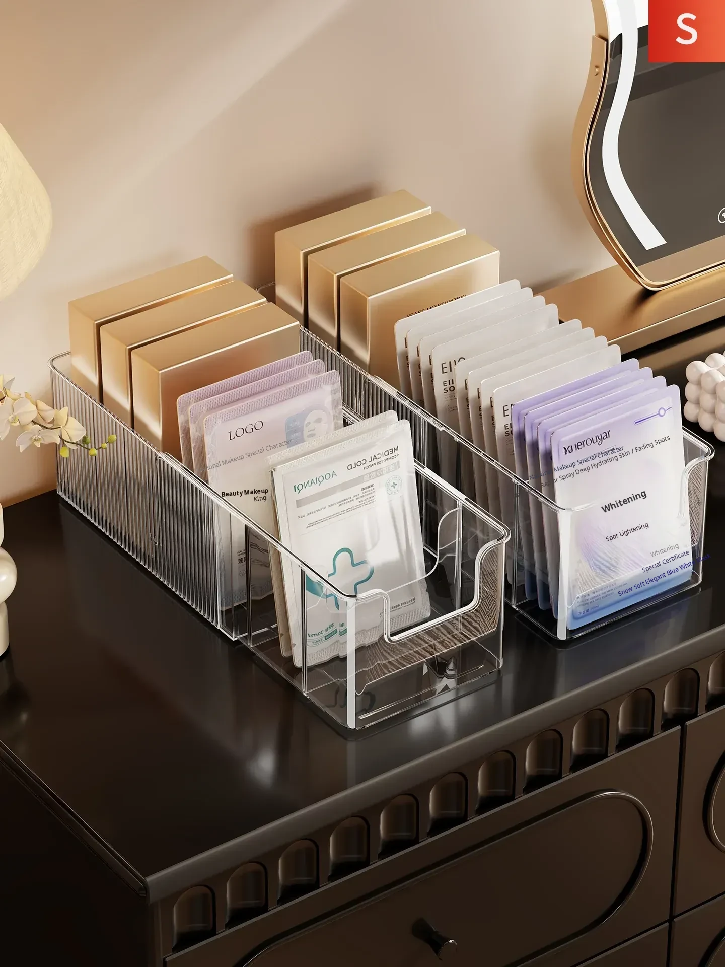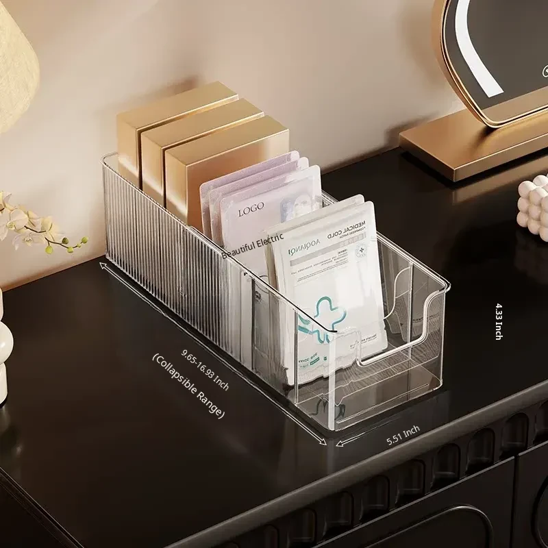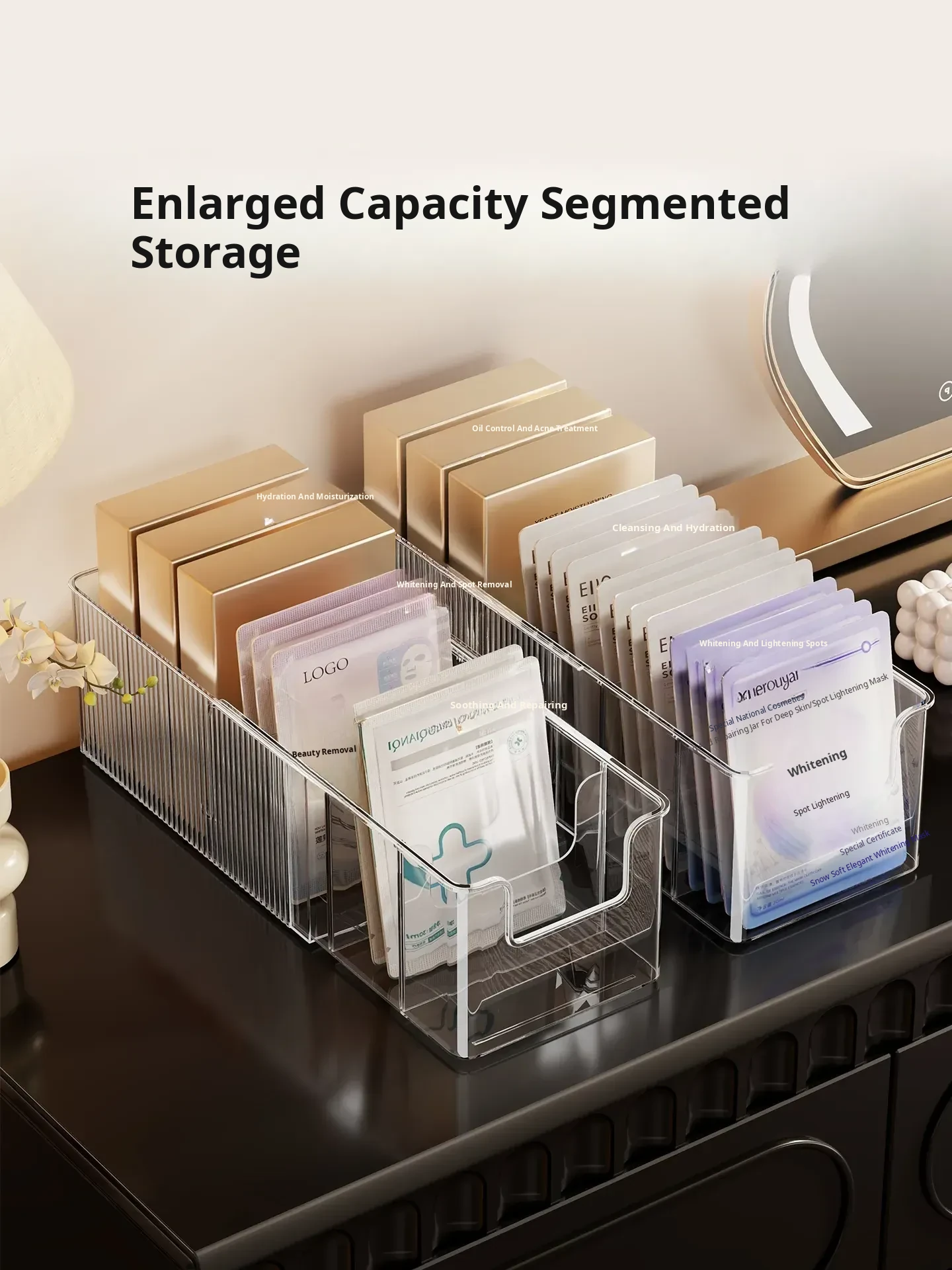 Transparent Acrylic Skincare Organizer - Expandable Makeup Storage Box with Dividers for Face Masks and Cosmetics - The Ultimate Desktop Solution for Neat and Stylish Beauty Collection!