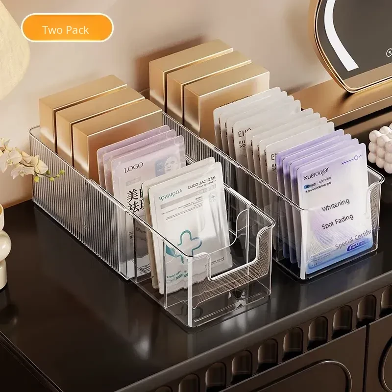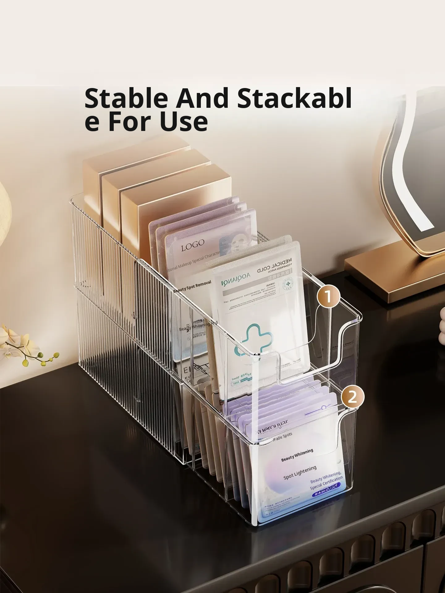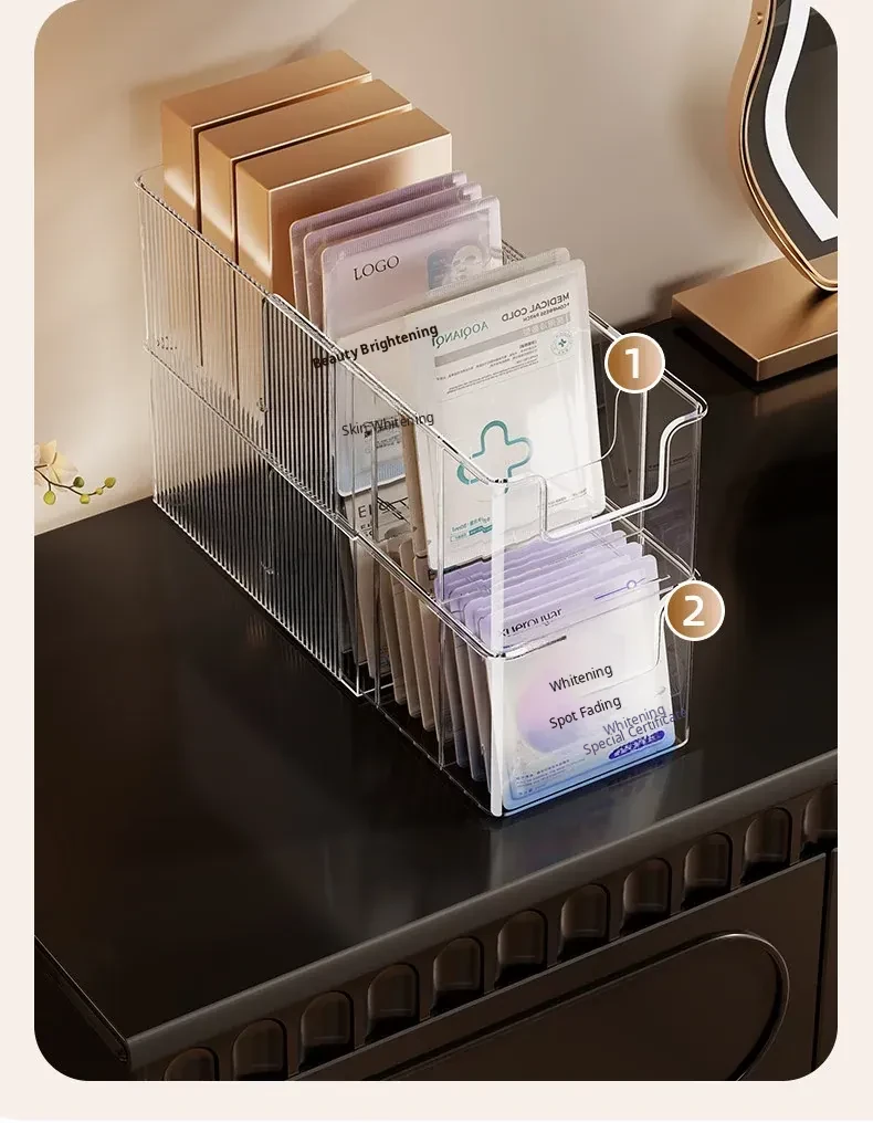 Transparent and Expandable Skincare Organizer Box - Makeup and Lipstick Storage Solution with Dividers for a Tidy Desktop