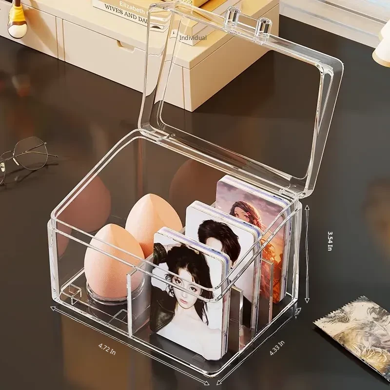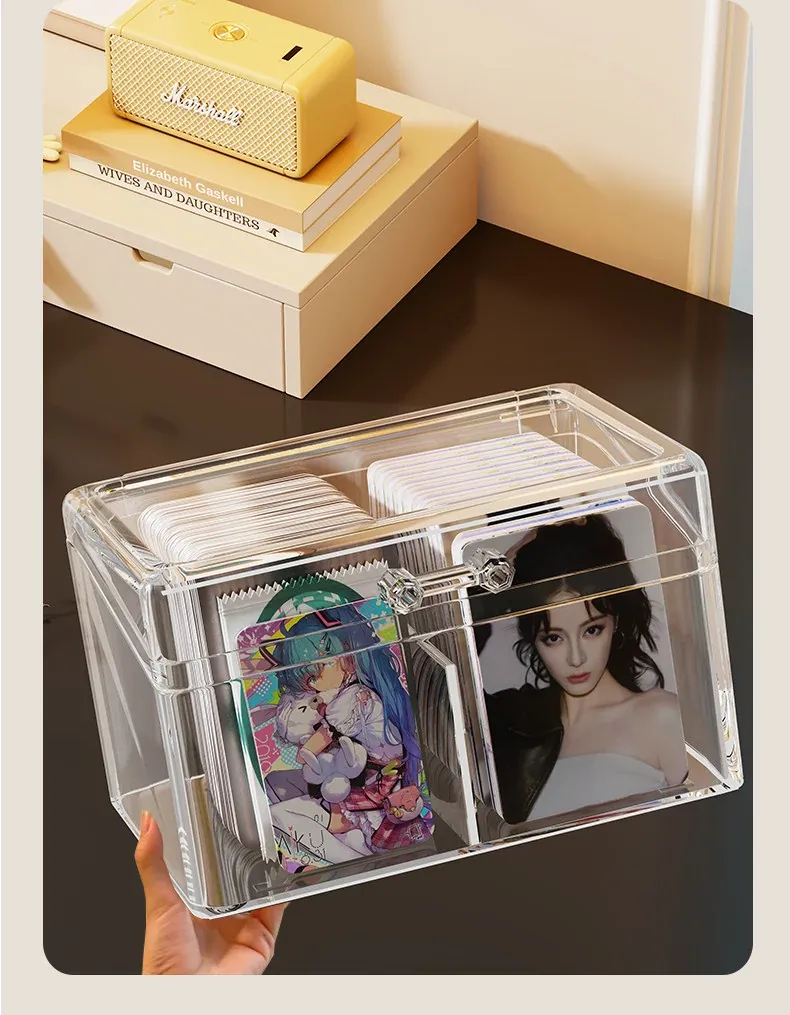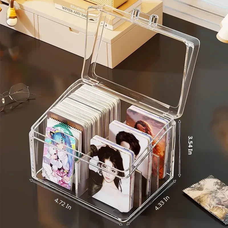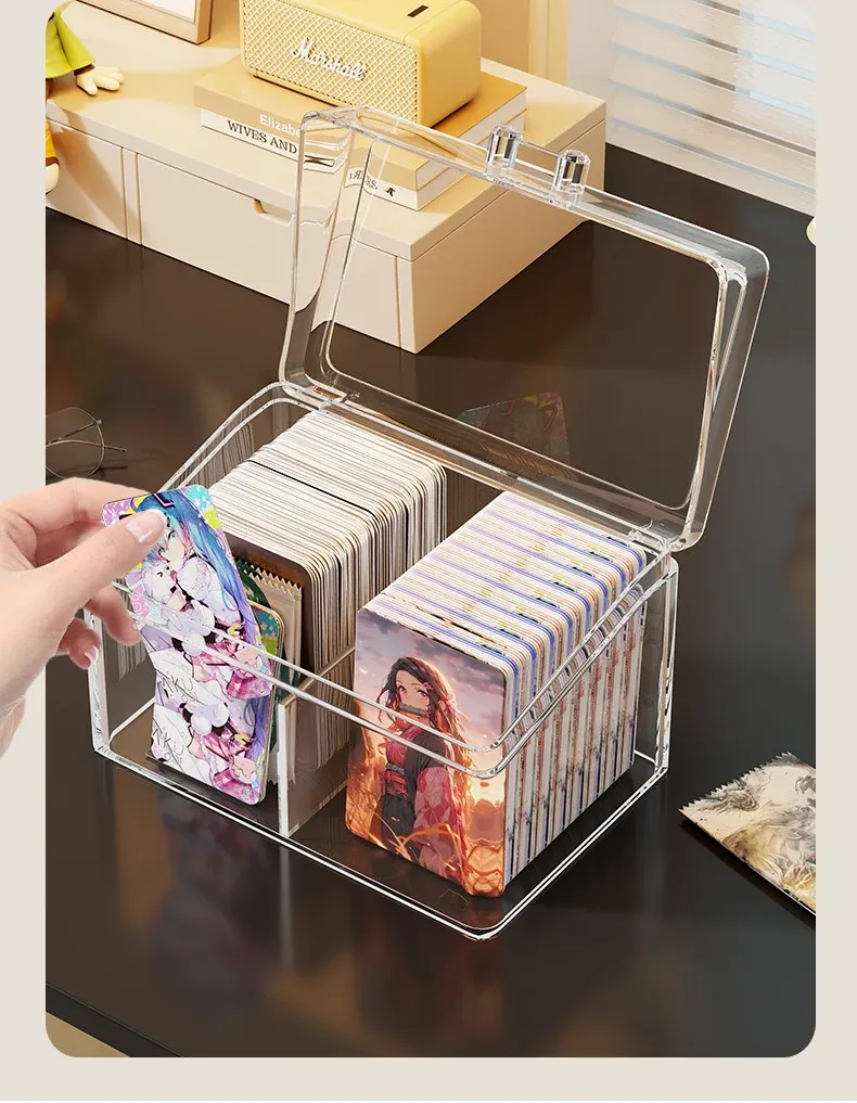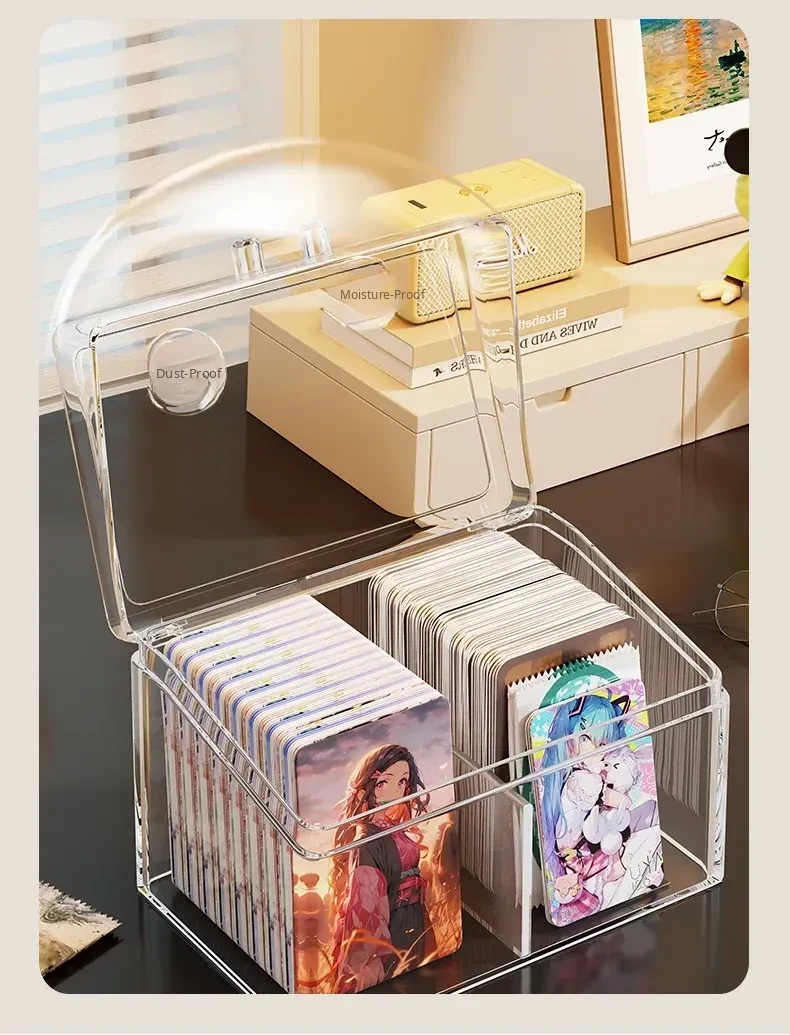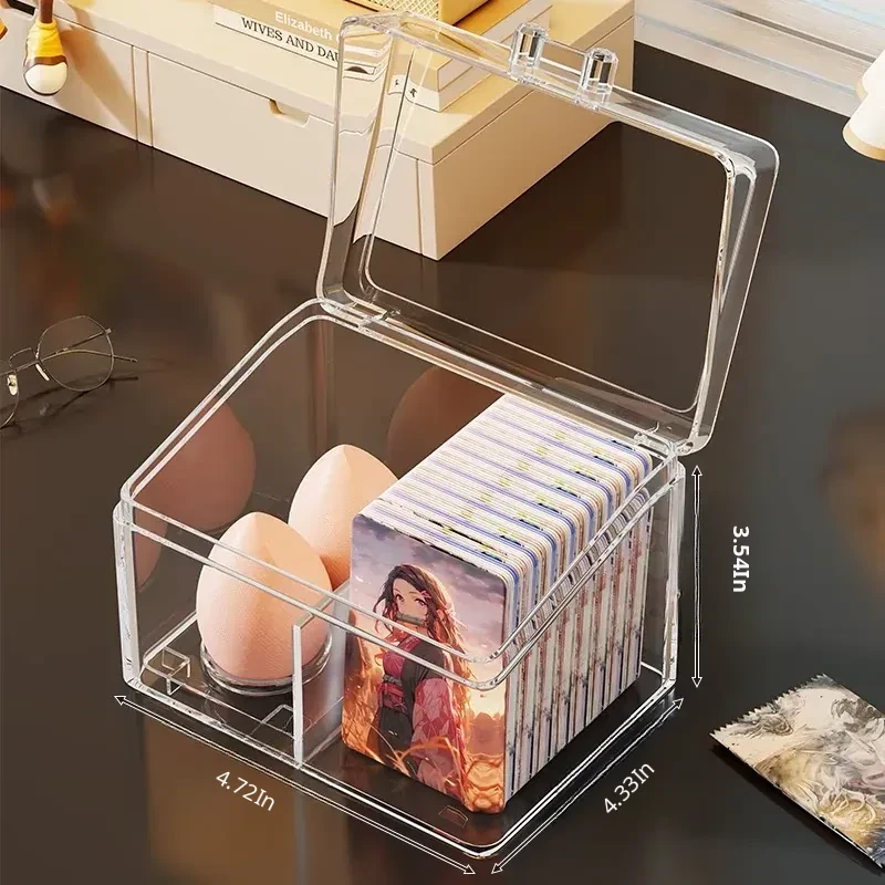 Transparent Desktop Card Storage Box with Lid - Dustproof Display Rack for Small Cards, Divided Organizer for Tidy Storage and Easy Access