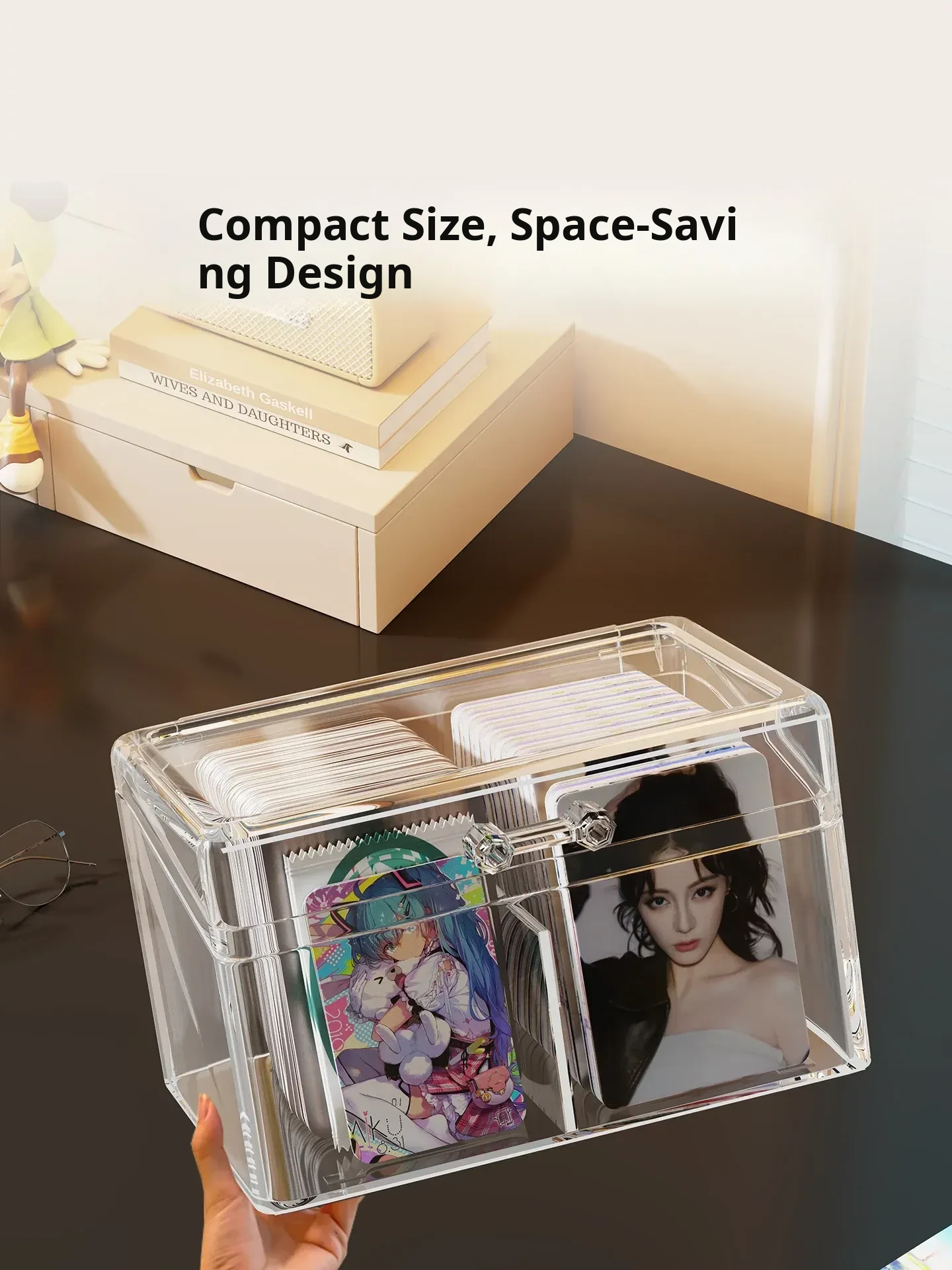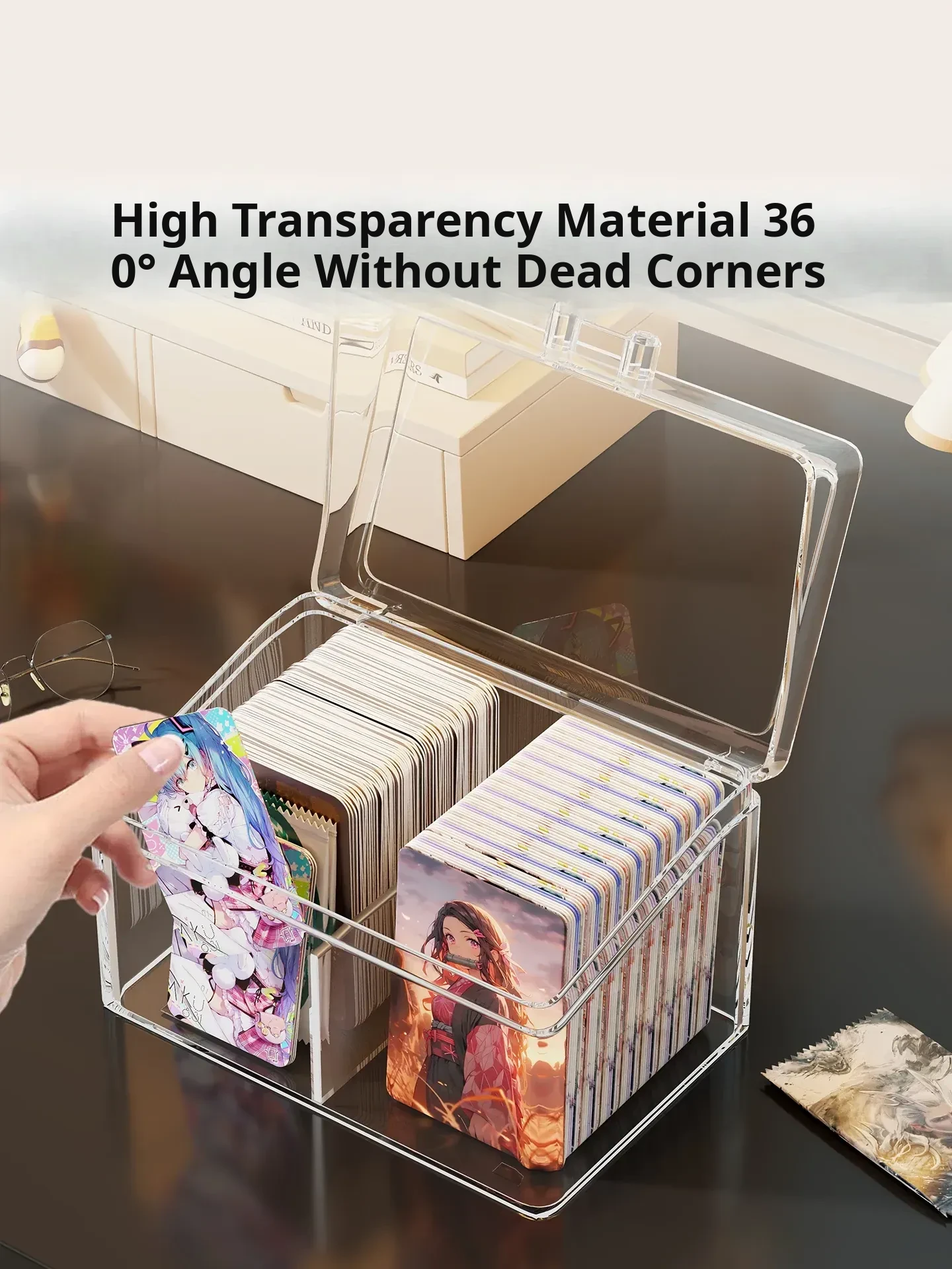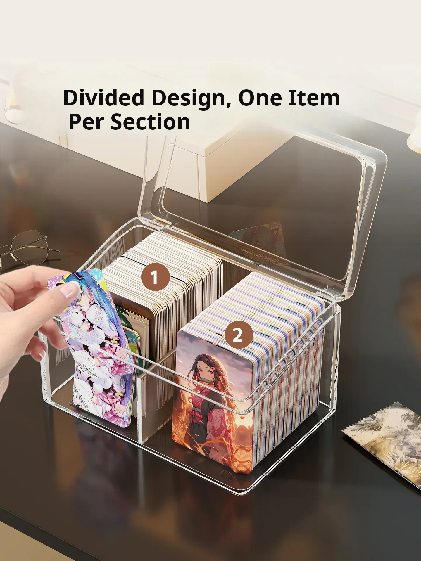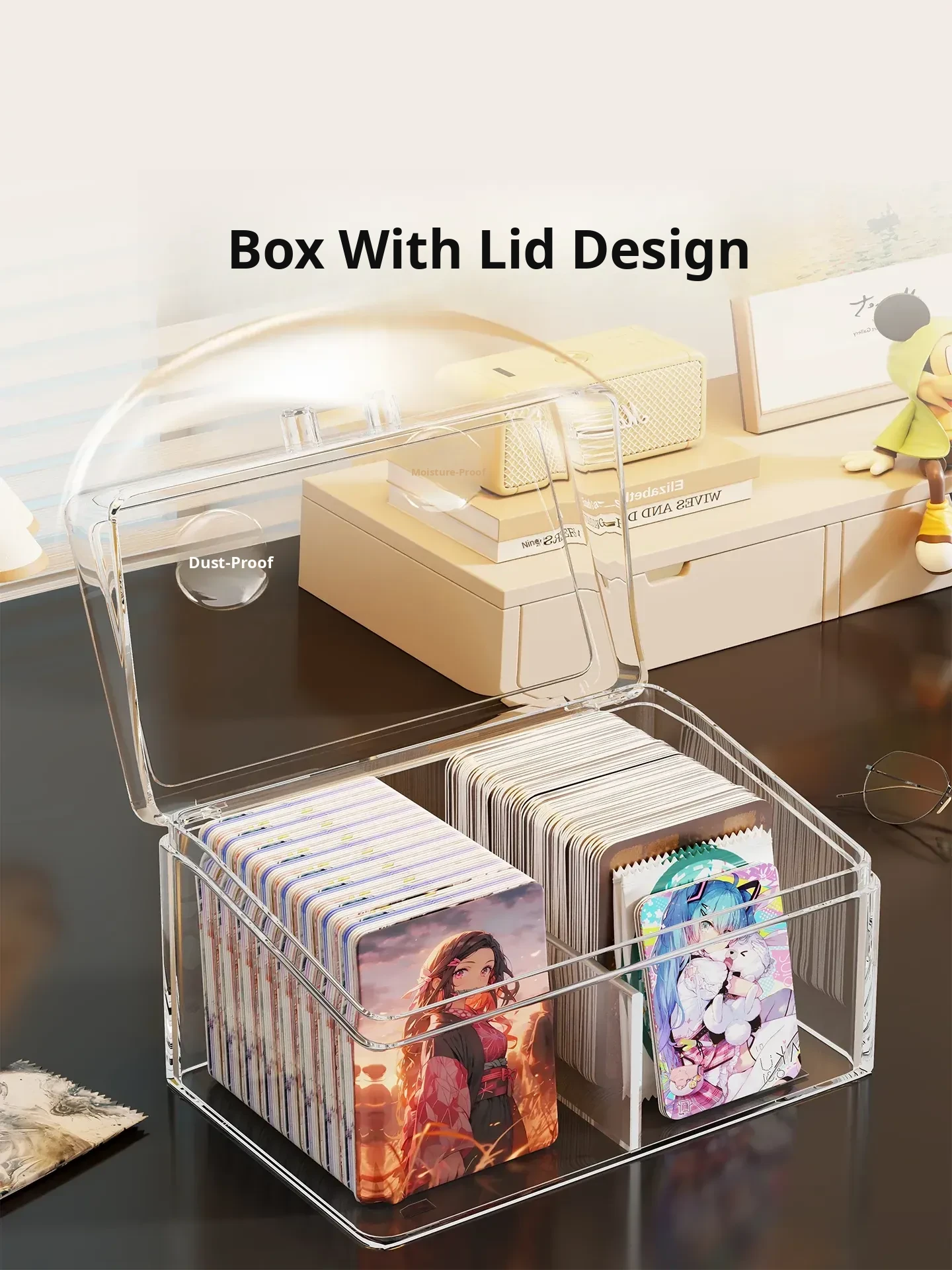 Transparent Desktop Card Storage Box with Lid - Dustproof Display Rack for Small Cards, Divided Organizer for Tidy Storage and Easy Access