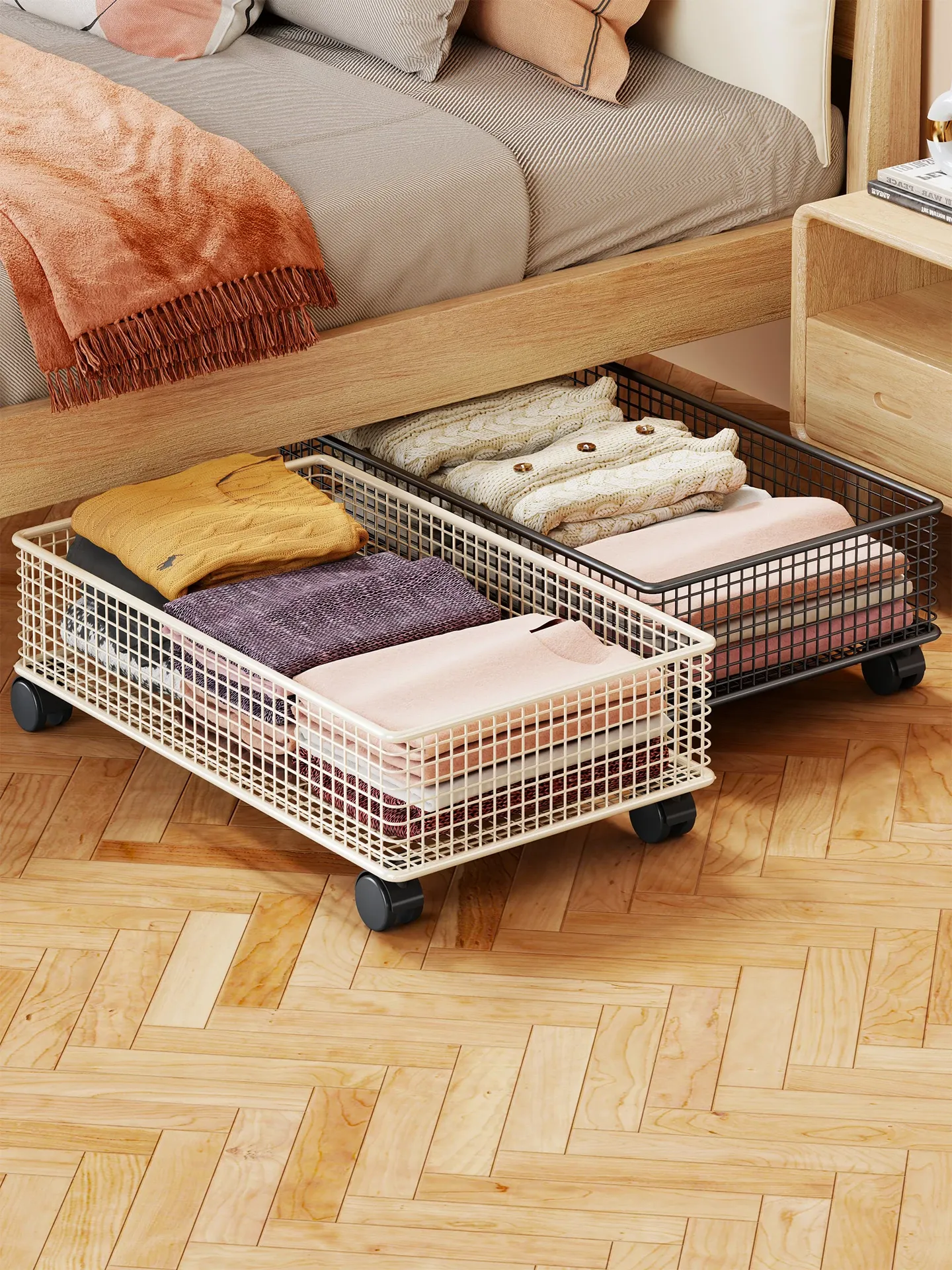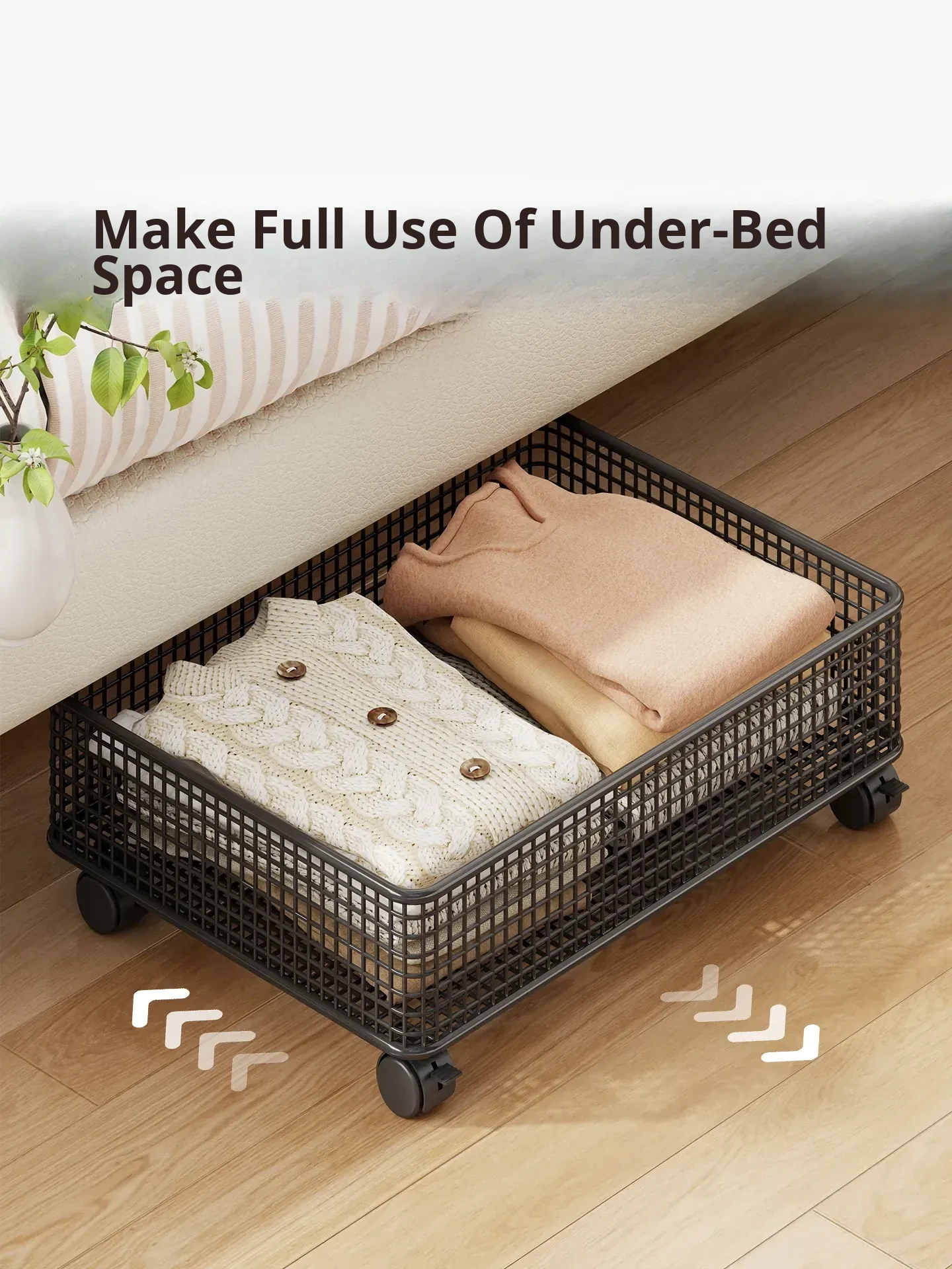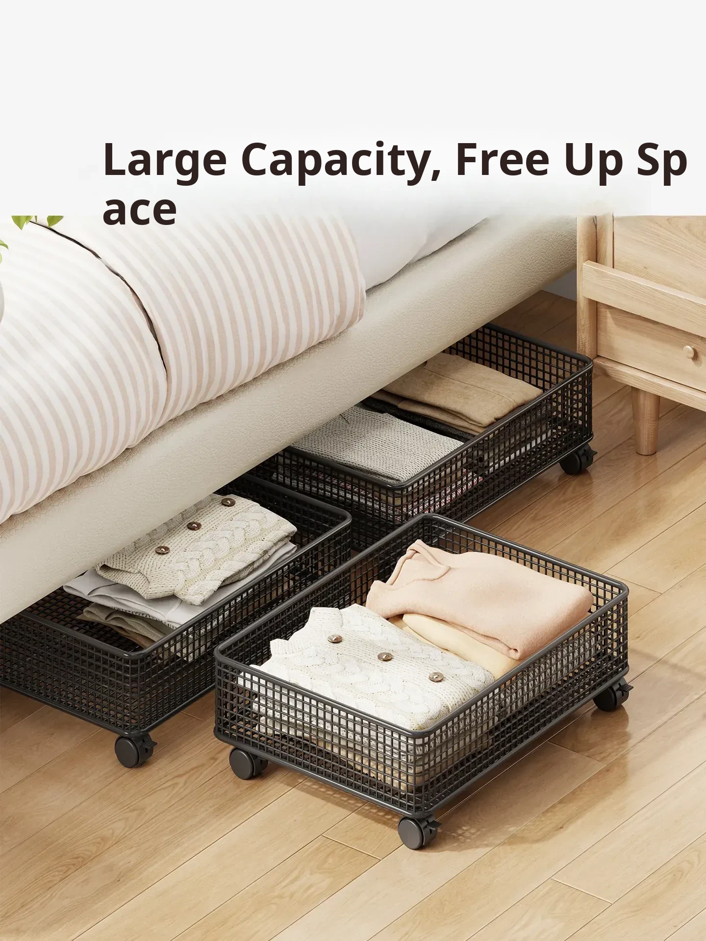 Under-Bed Storage Box with Wheels - Space-Saving Drawers for Clothes and Shoes, Easy-Access Flat Pull-Out Organizer, Perfect for Tidy Living Spaces