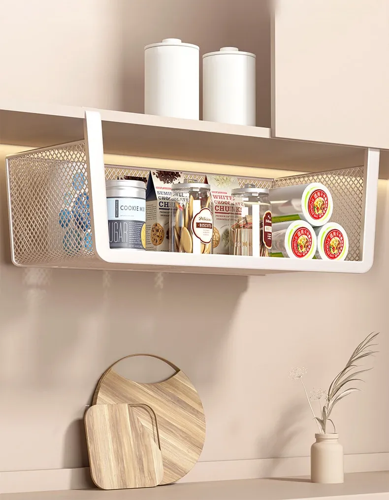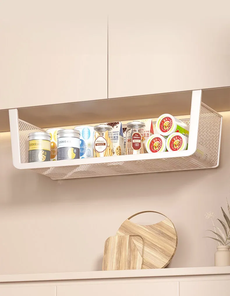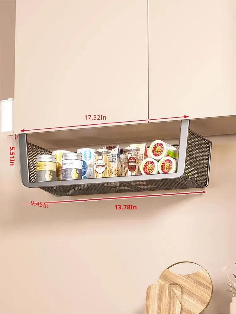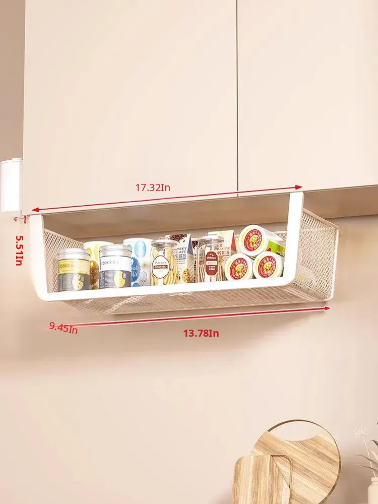 Under-Desk Hanging Storage Rack - Multi-Layer Kitchen Organizer for Dorms, Bedside Basket, Desk Snack and Miscellaneous Storage Solution