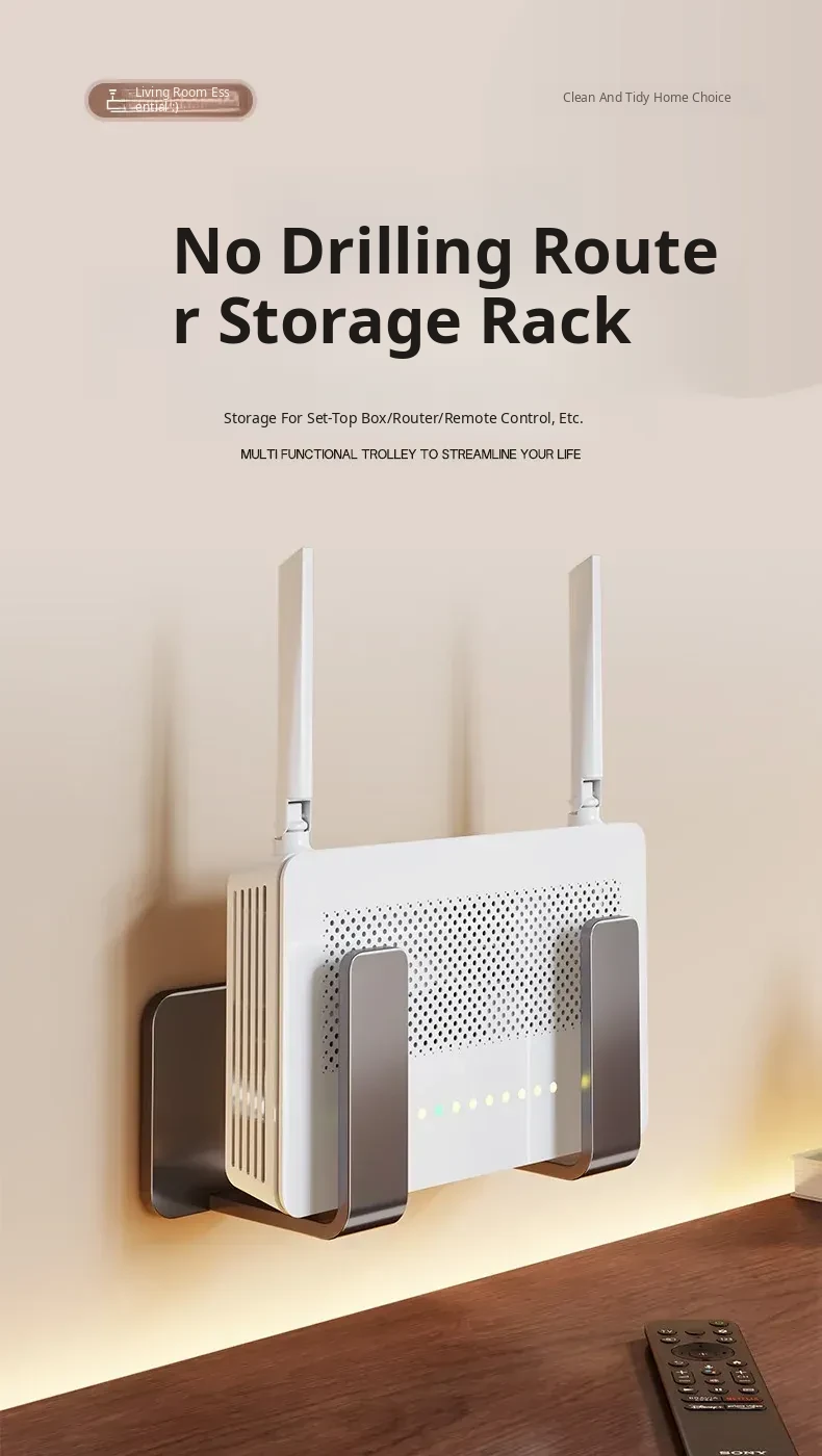 Wall-Mounted Router Shelf: No Drill Cable Organizer for Home WiFi Modem - Secure and Stylish Storage Solution for Your Space