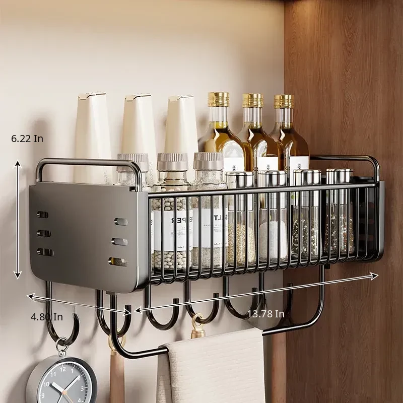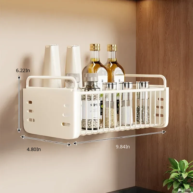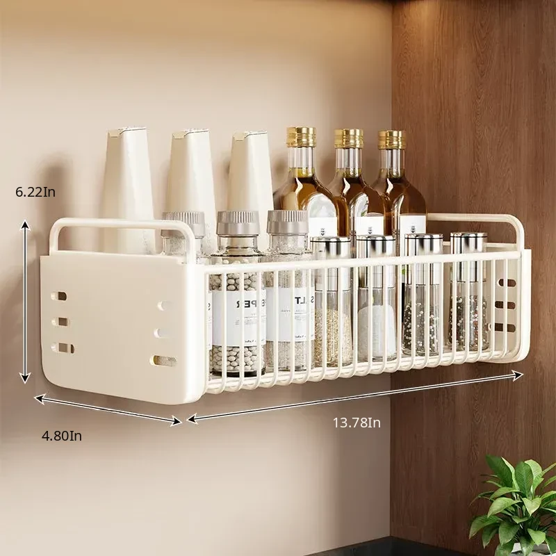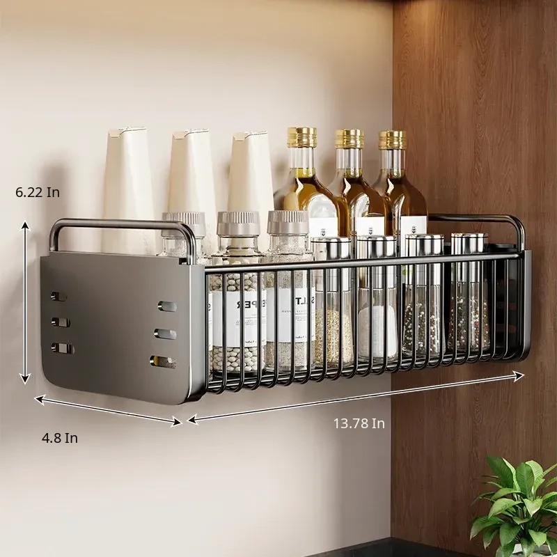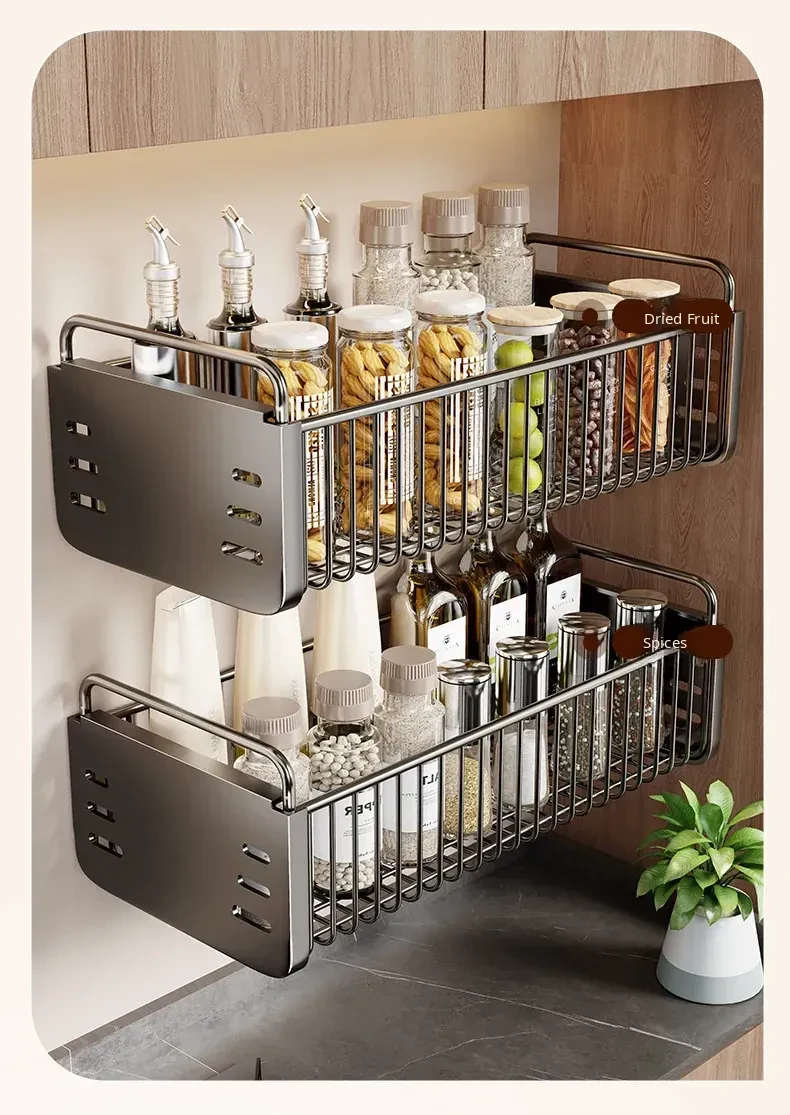 Wall-Mounted Storage Rack for Kitchen - No Drill Spice Organizer for Oil, Salt, Soy Sauce, and Vinegar - Perfect for Home Use, Space-Saving Solution!