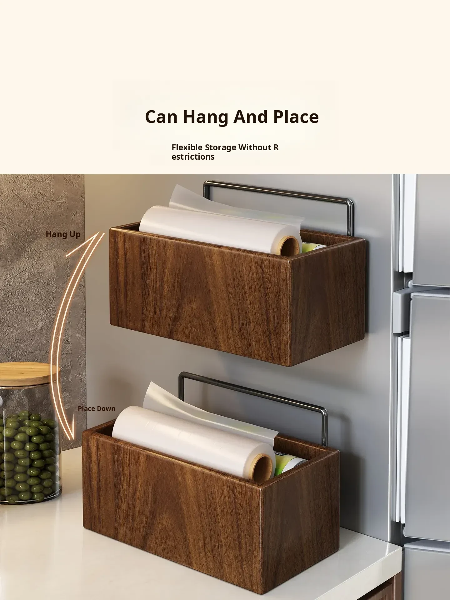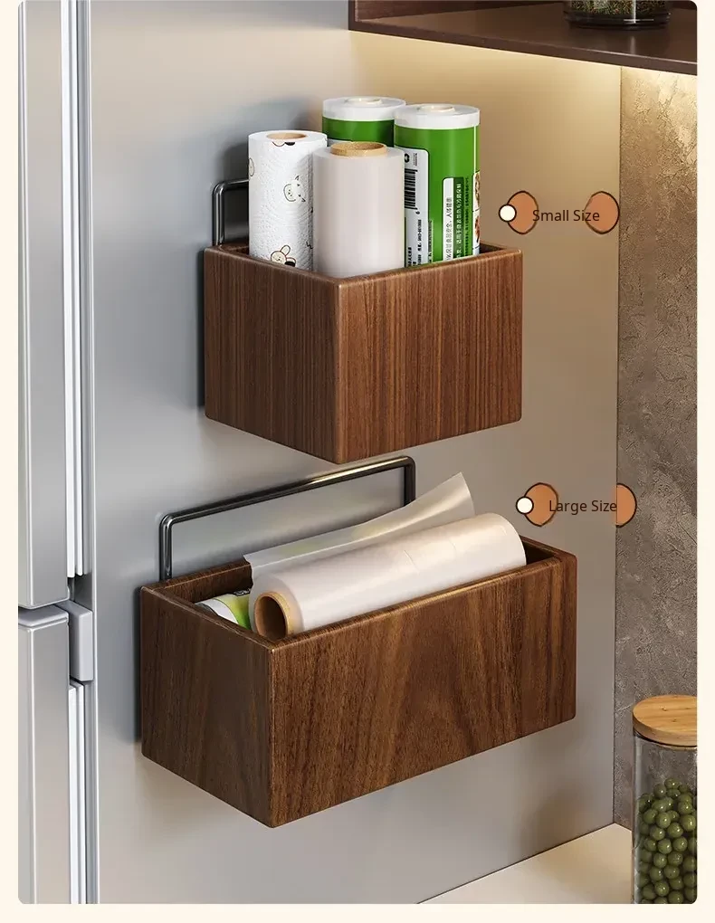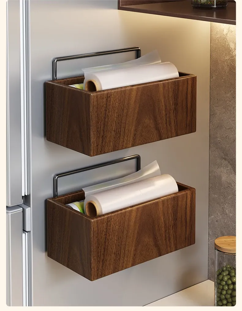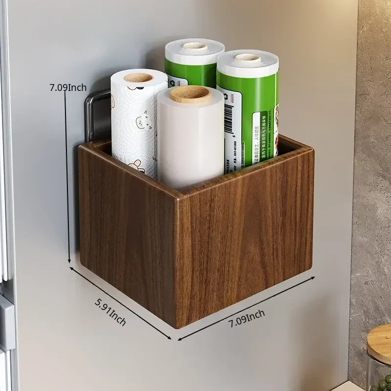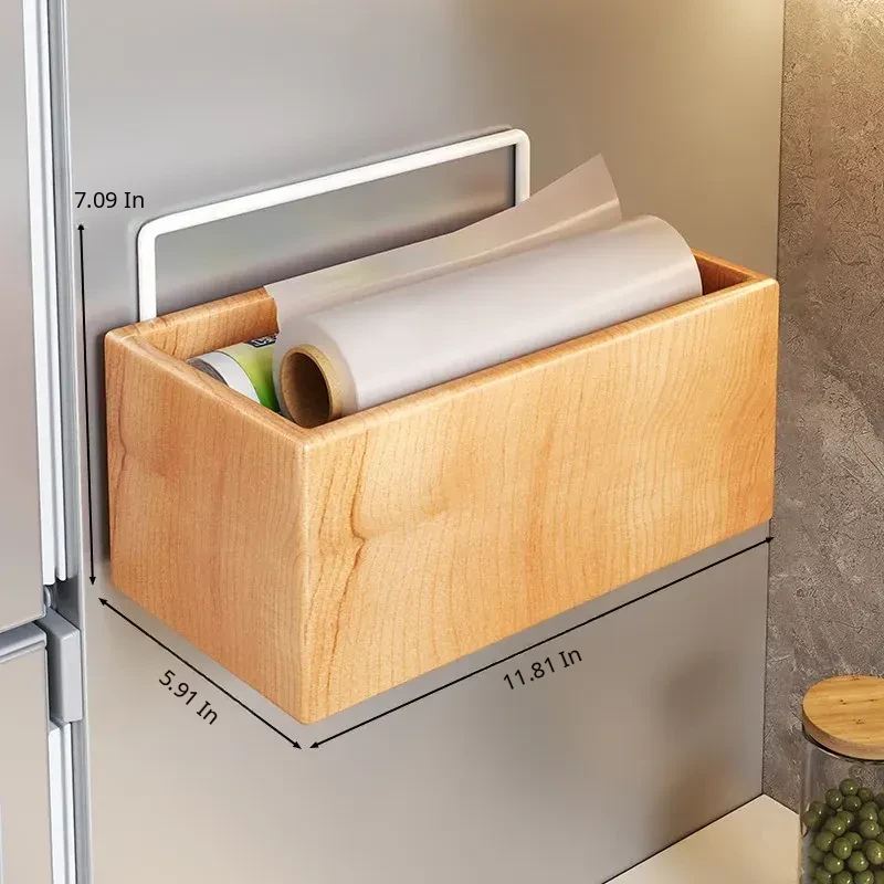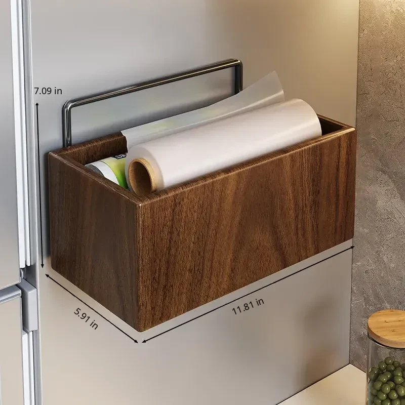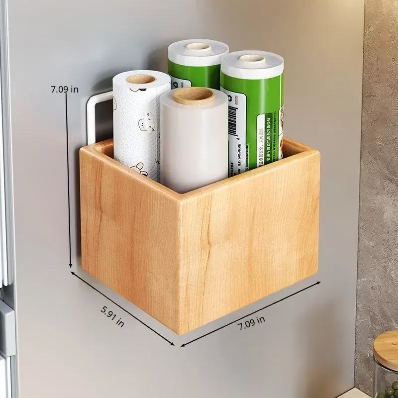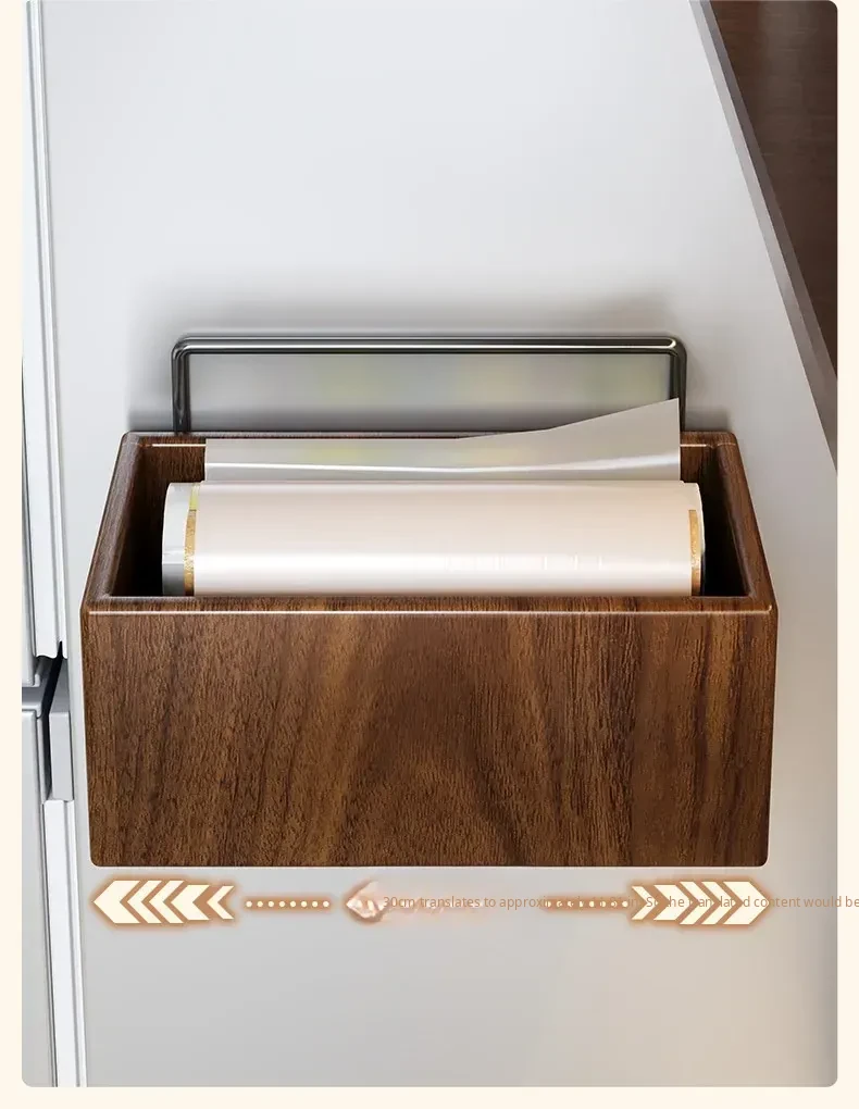 Wooden Kitchen Storage Box - Wall-Mounted Cling Film Holder for Cabinet Doors, No Drilling Required, Perfect for Organizing Your Kitchen and Bathroom Essentials
