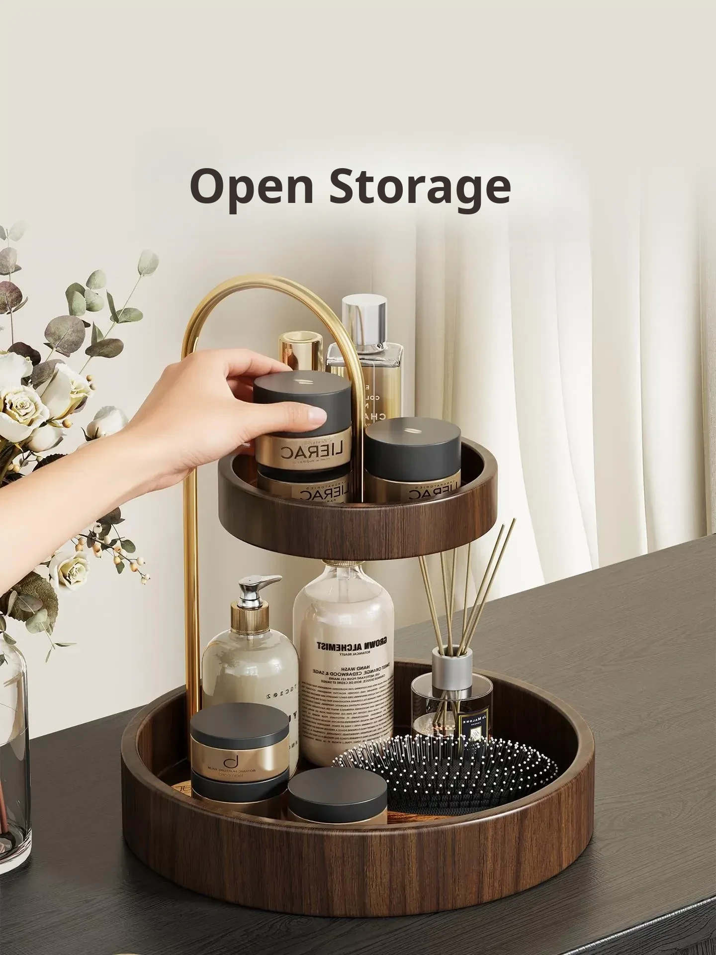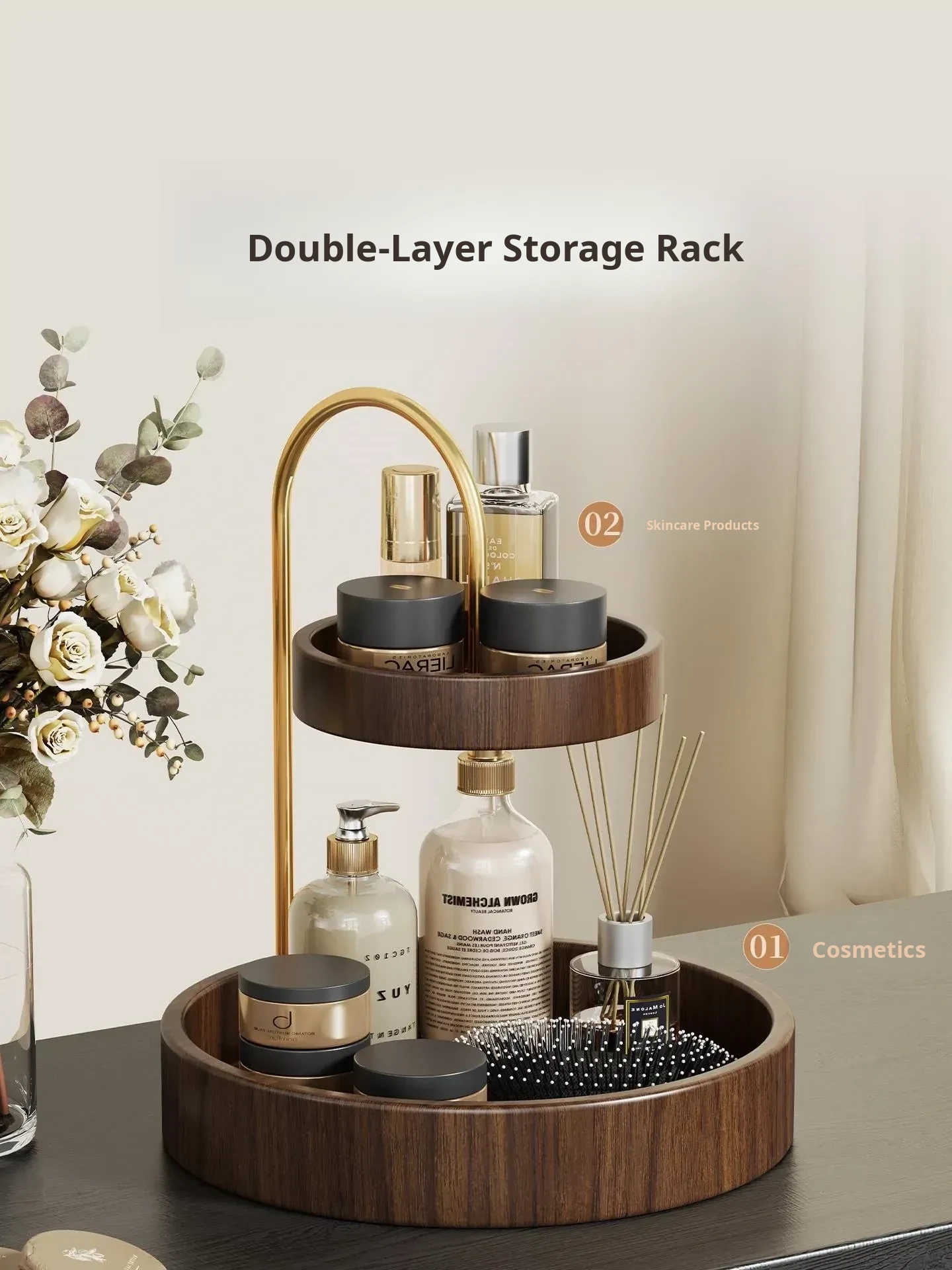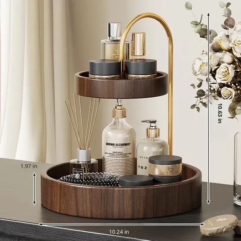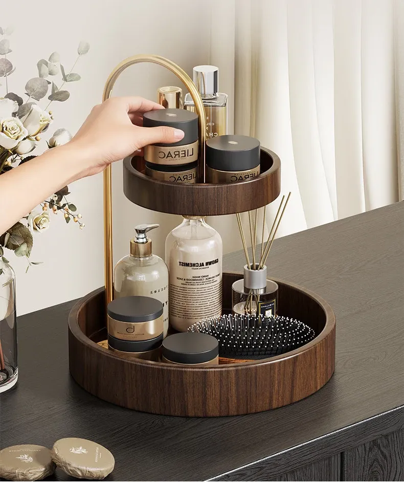 Wooden Makeup Organizer - Stylish Desktop Storage Box for Lipsticks, Snacks, Skincare Products, Face Masks, Miscellaneous Items, and Perfume Rack. Perfect for a Clutter-Free Space!