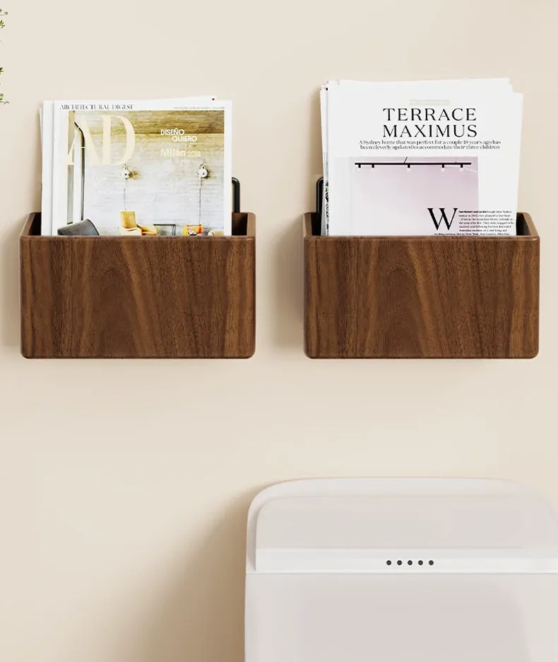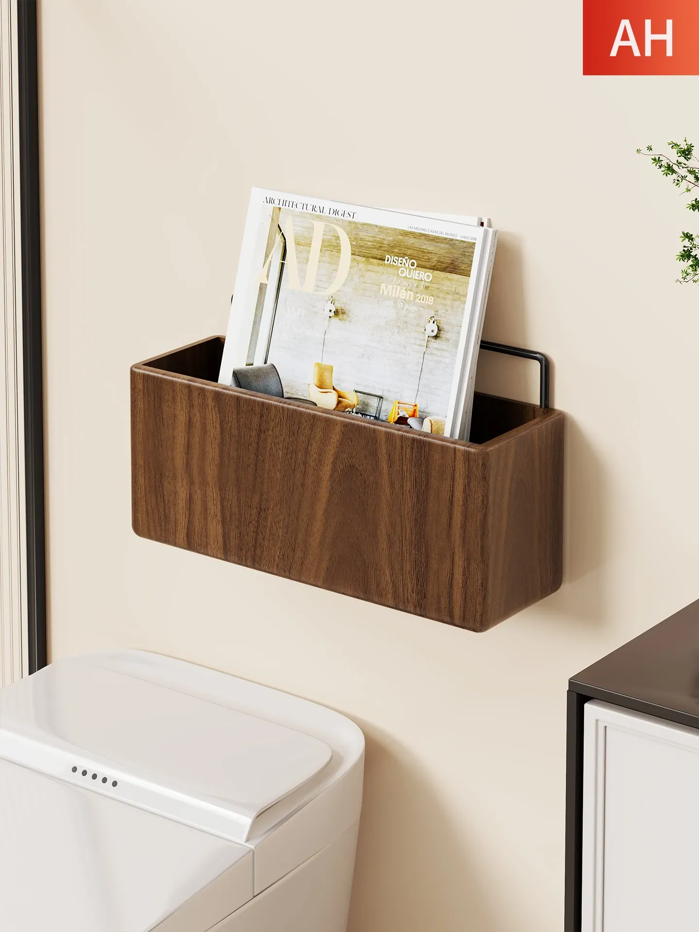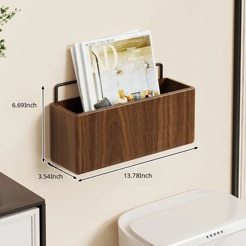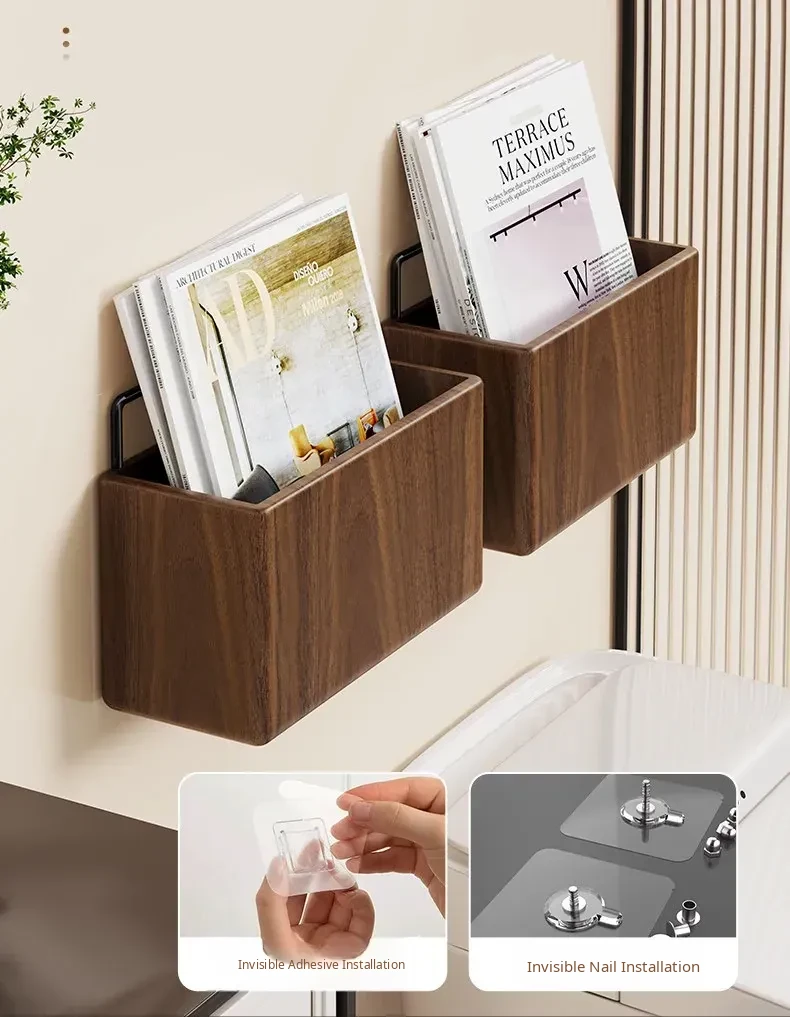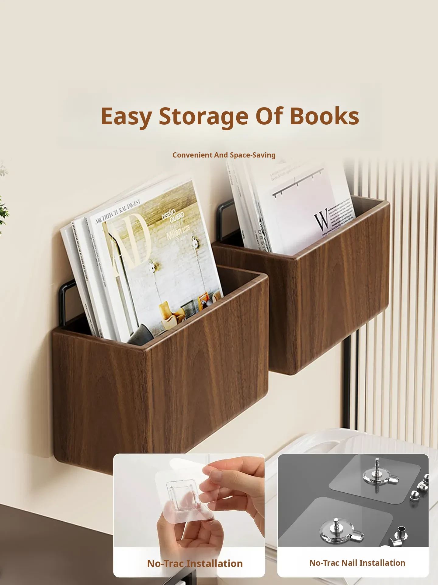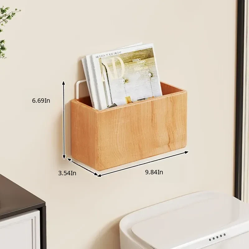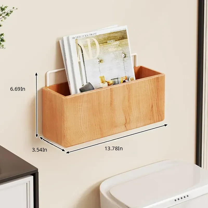 Wooden Wall-Mounted Bathroom Bookshelf - No-Drill Hanging Storage Basket for Easy Organization in Bedroom & Bathroom - Your Ultimate Space-Saving Solution!