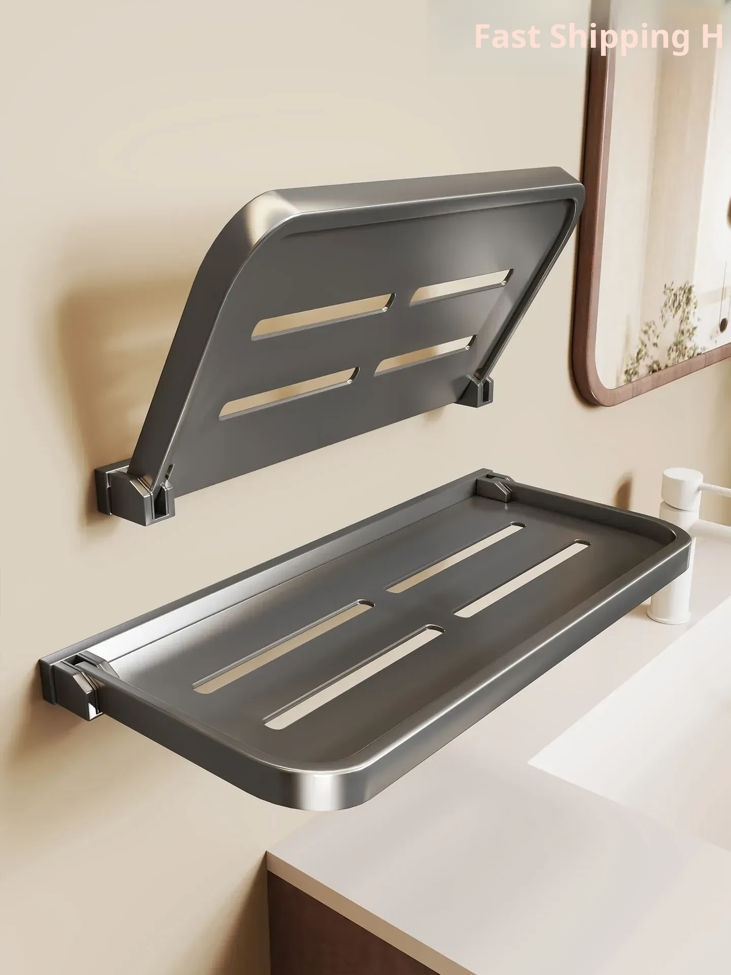 Foldable Bathroom Storage Rack - Wall-Mounted Organizer for Vanity and Mirror Area, Ideal for Efficient Space Management and Stylish Décor in Your Bathroom