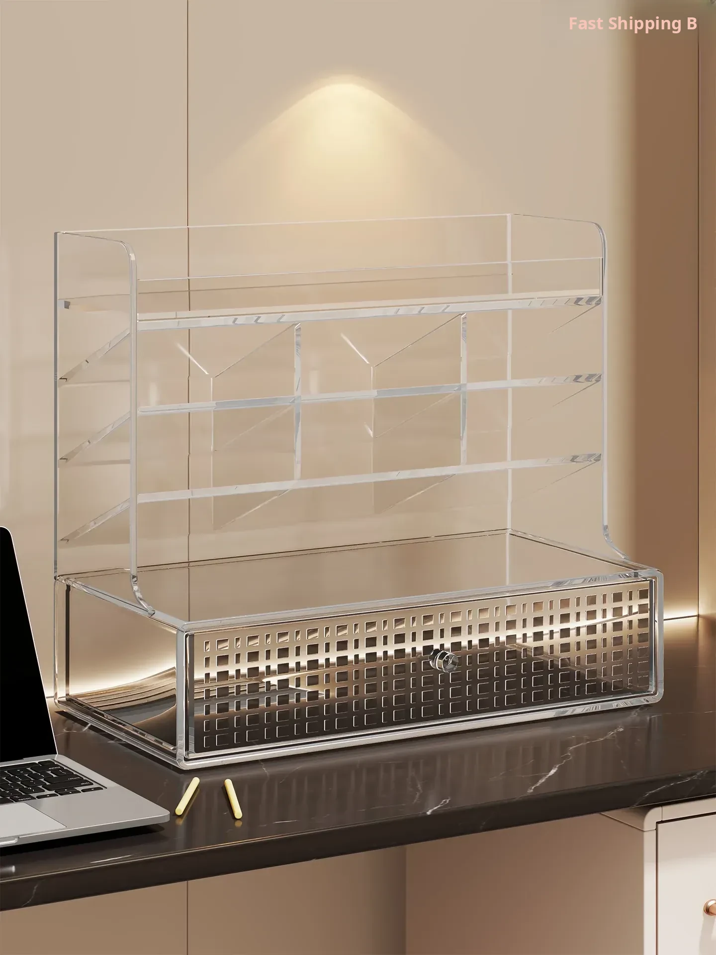Elegant Makeup Organizer - Spacious Cosmetic Storage Box for Skincare and Beauty Essentials, Perfect for Lipsticks, Eyeliners, and Makeup Brushes on Your Vanity Table